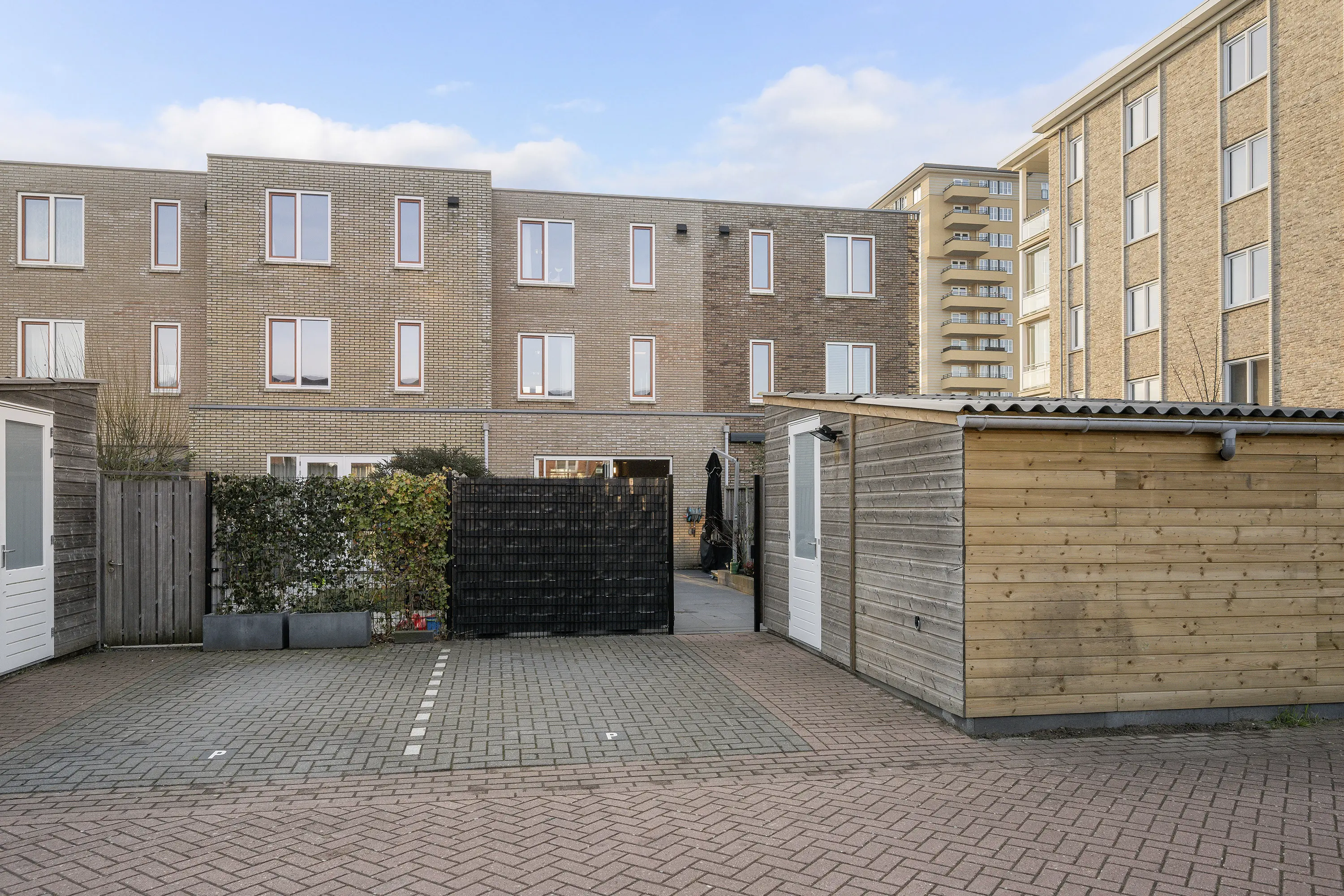 De parkeerplaatsen achter de tuin zijn bestemd voor alle 16 omringende bewoners, hierop koopt u gebruikersrecht.