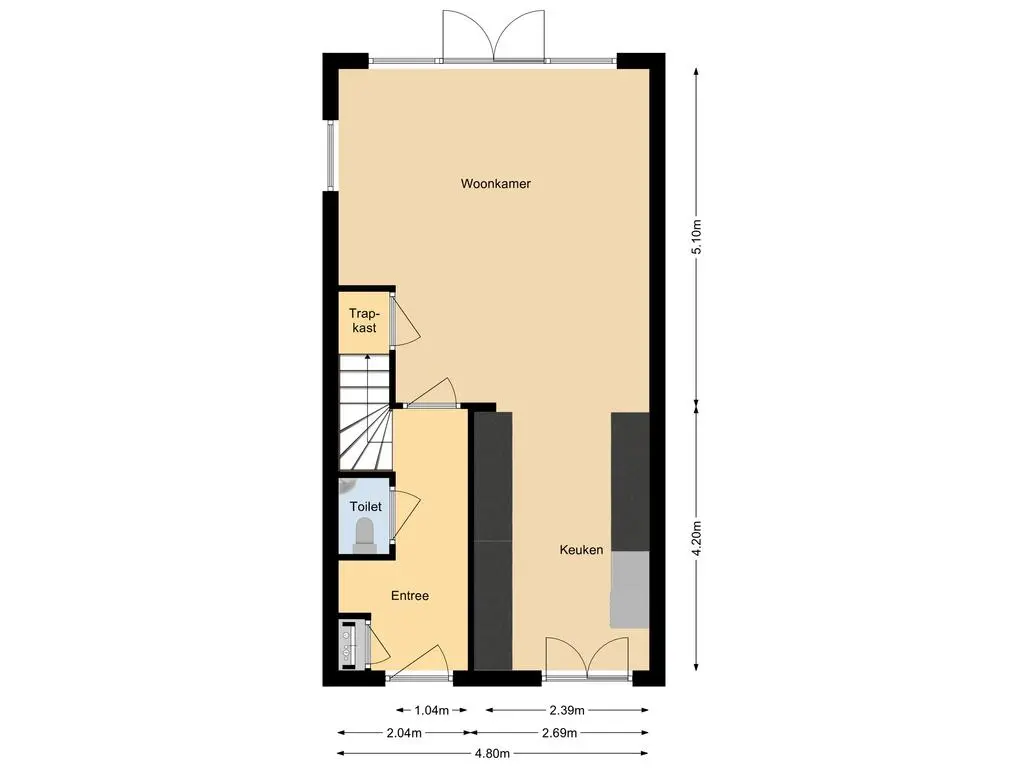 - Begane grond voorzien van openslaande deuren naar de voor- en achtertuin;