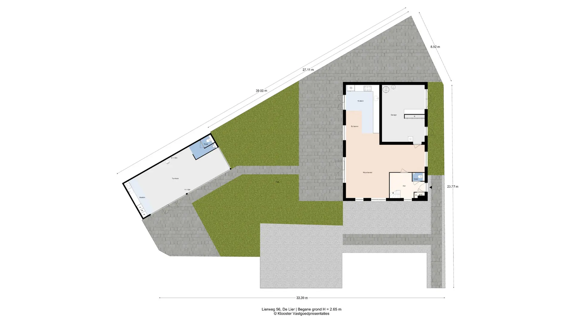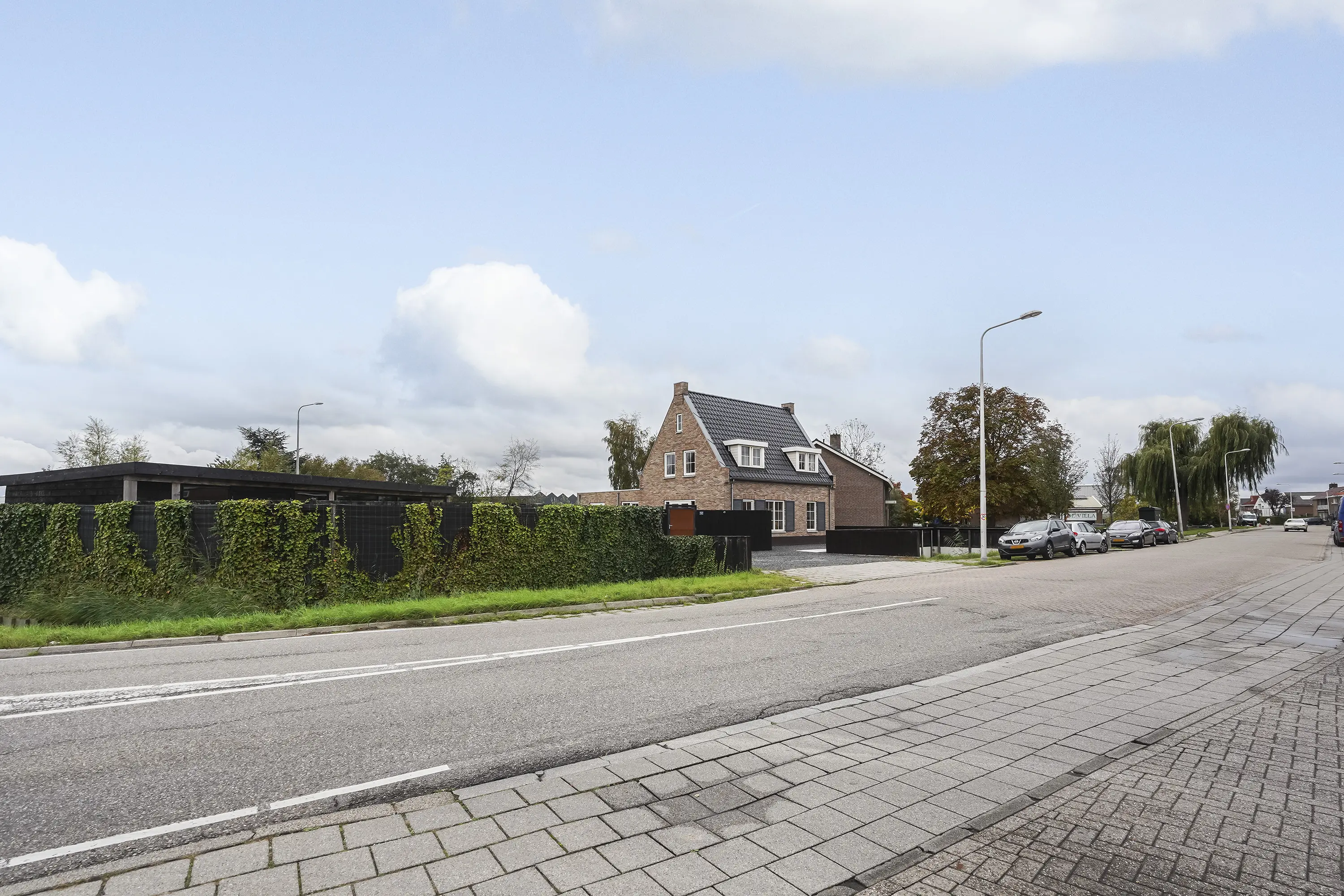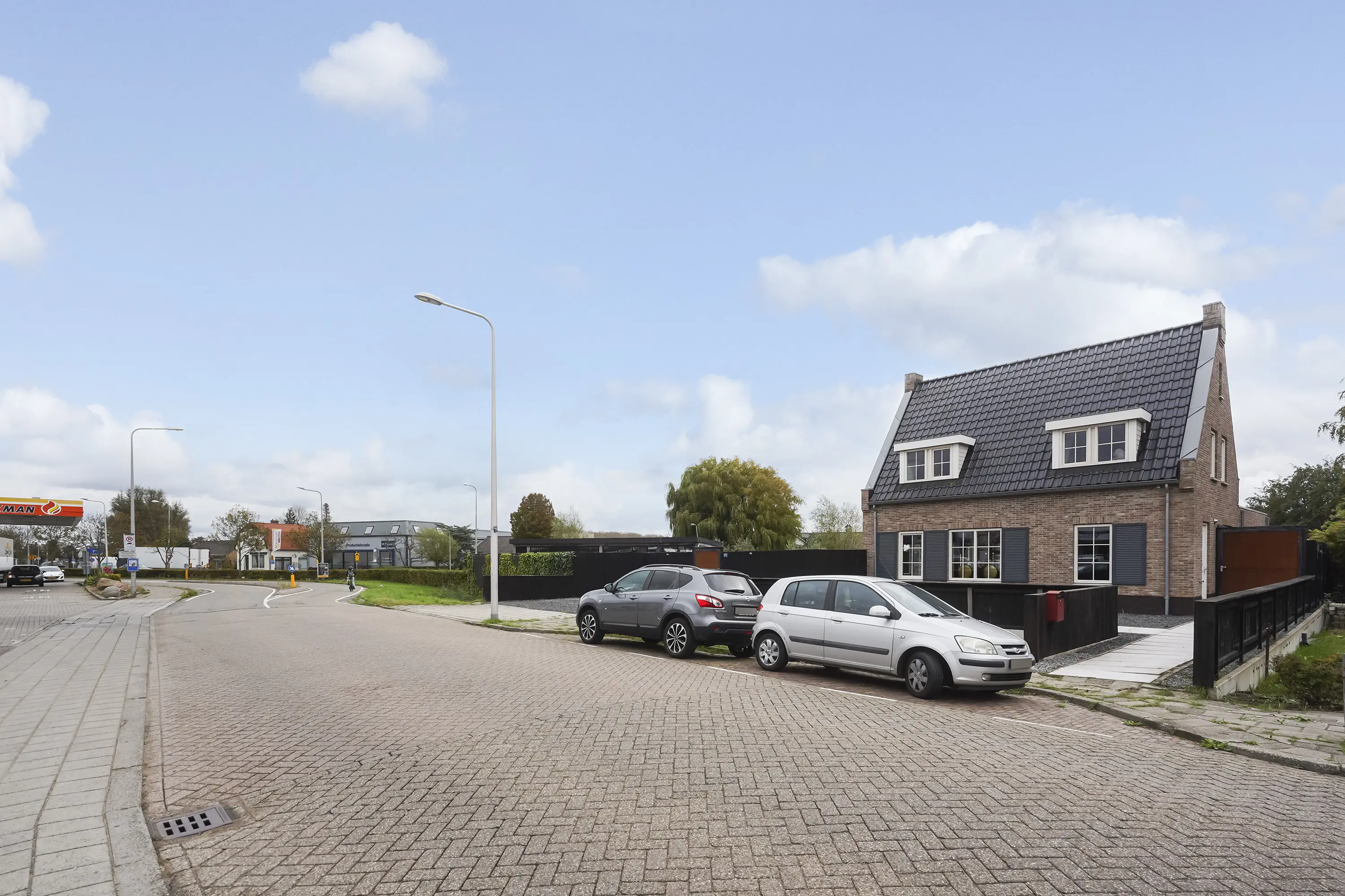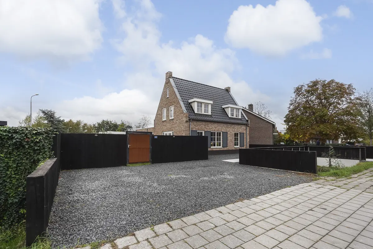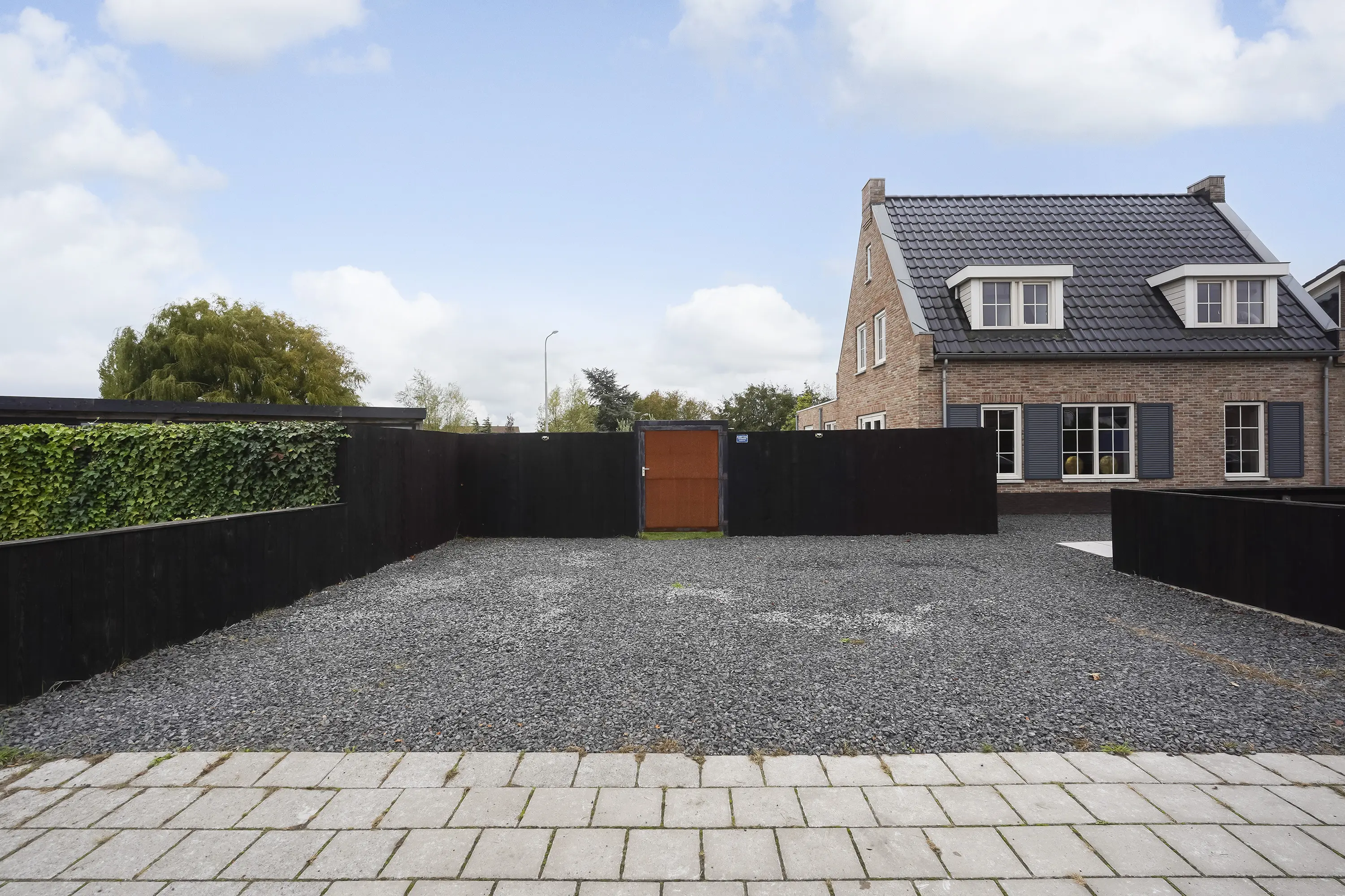 Oprit met parkeermogelijkheid voor meerdere auto's aan de linker voorzijde van de woning.