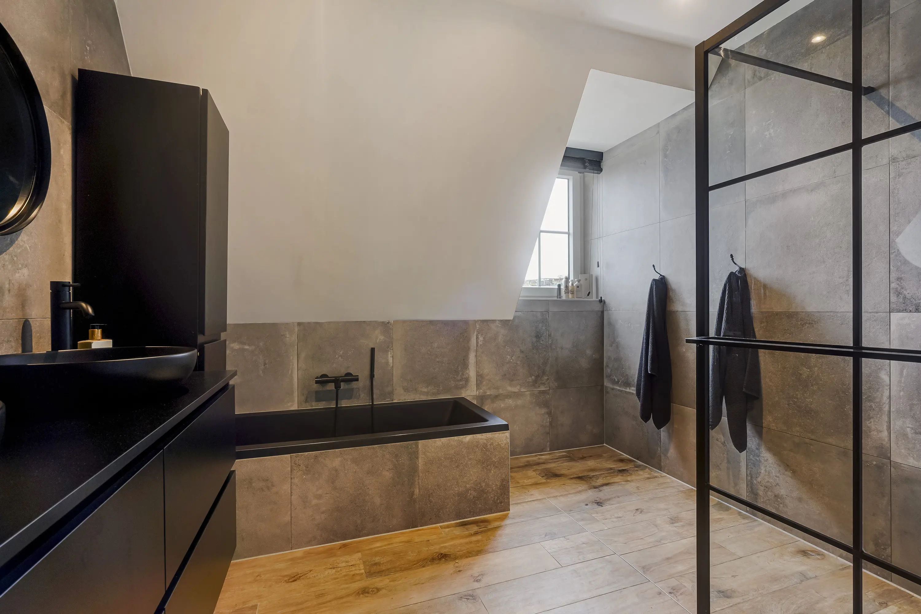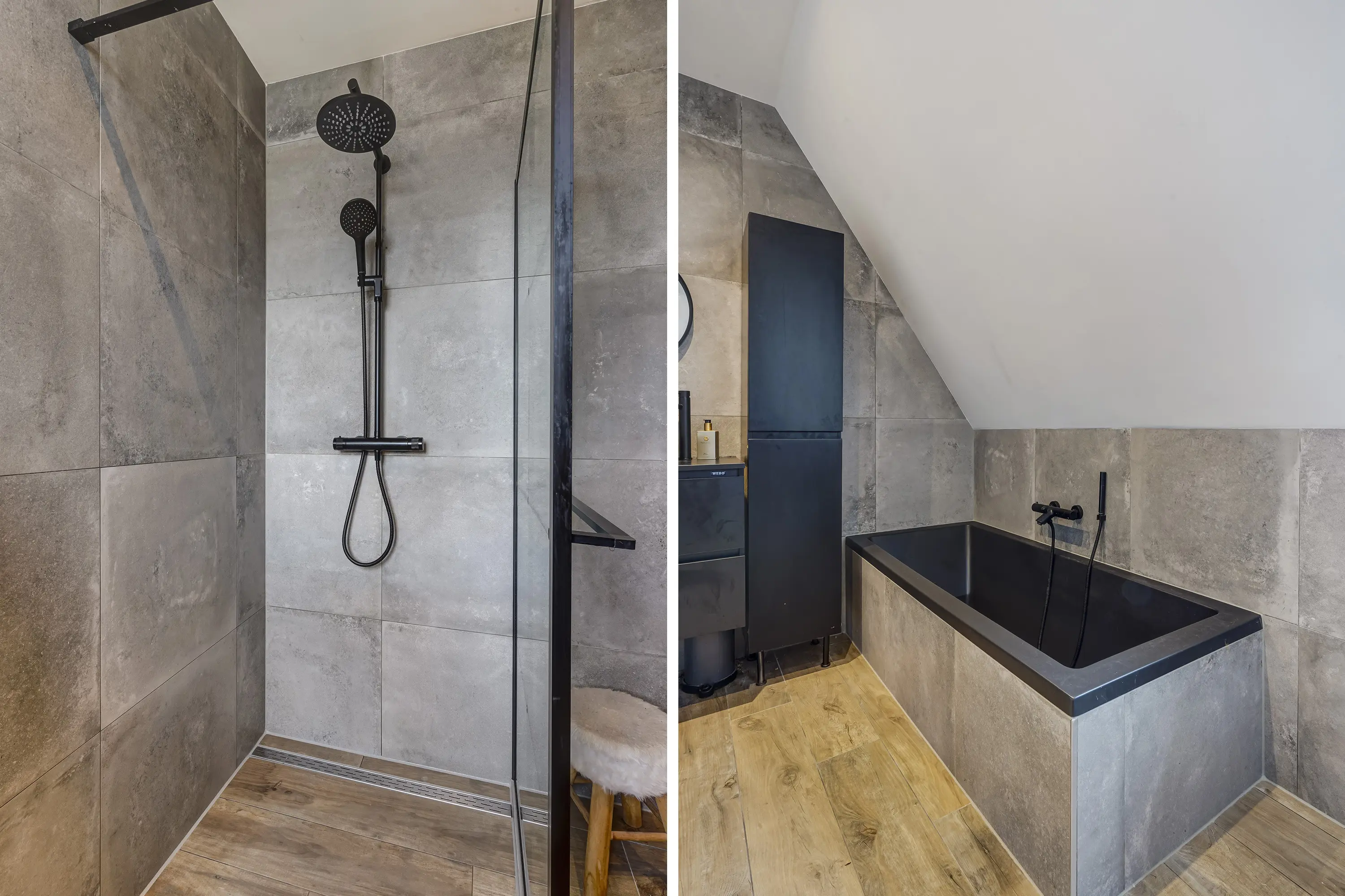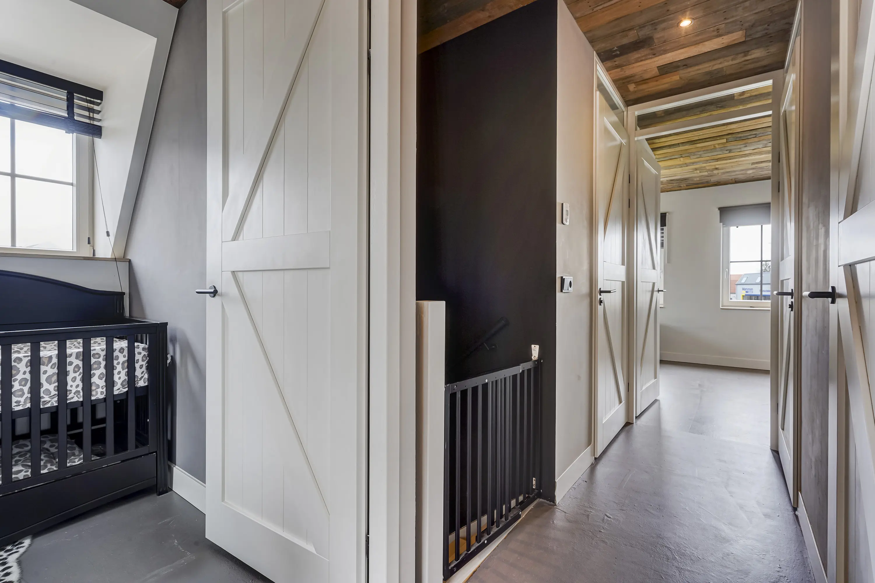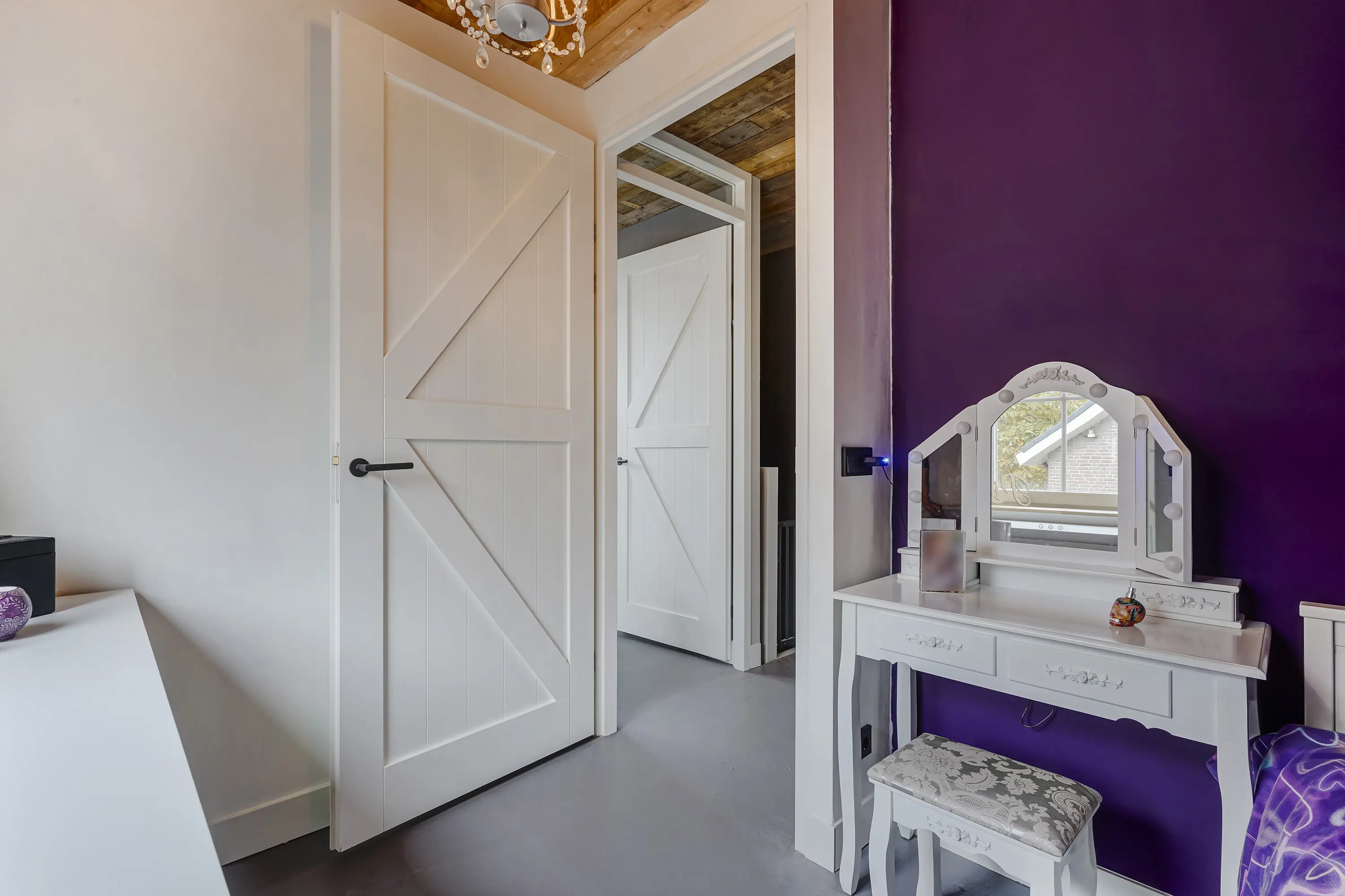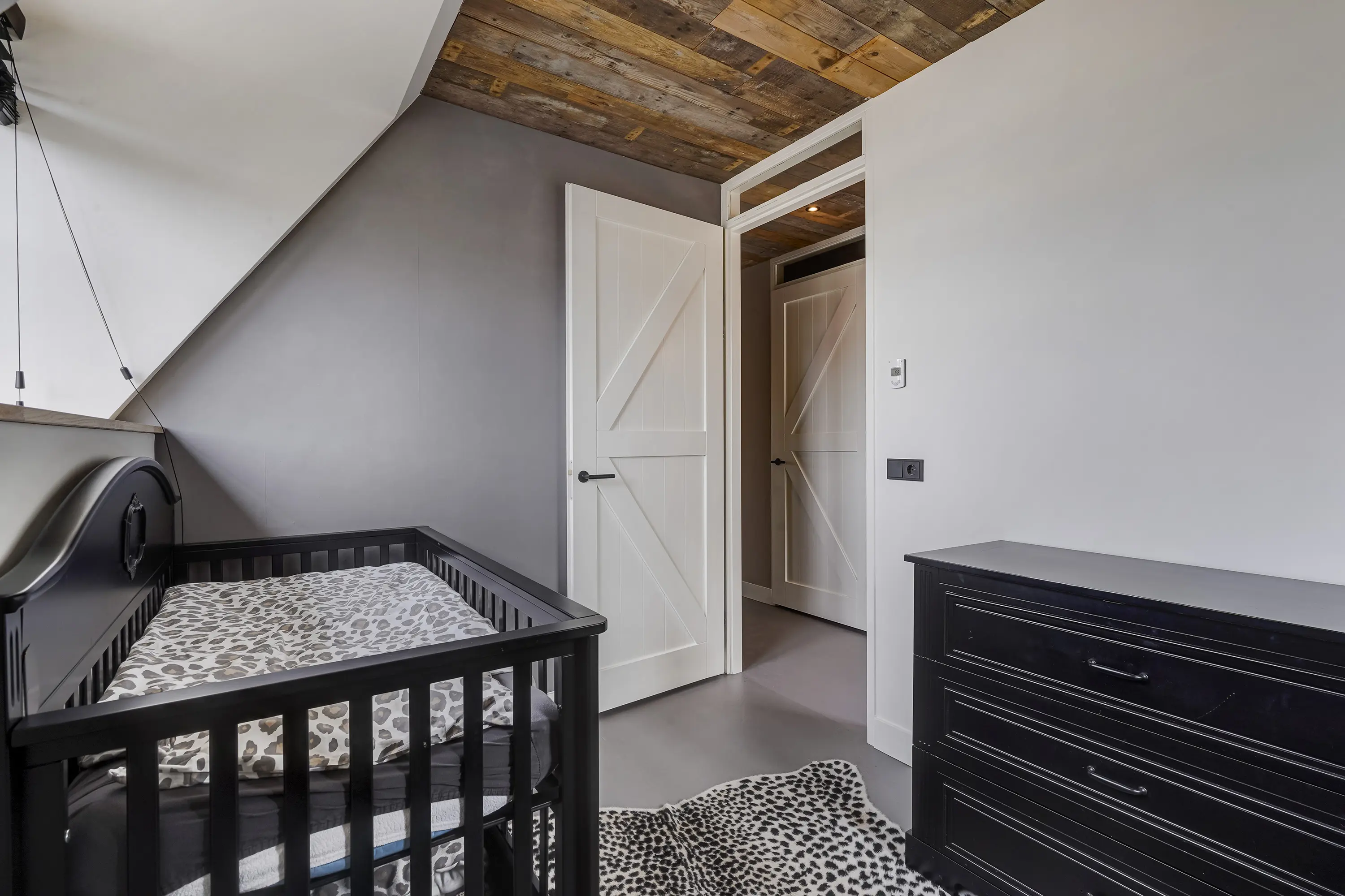 Ook de overige twee slaapkamers zijn uitgerust met te openen draai-/kiepramen, (sloop) houten plafond met lichtspots en epoxy vloer die over de gehele eerste verdieping is gelegd.