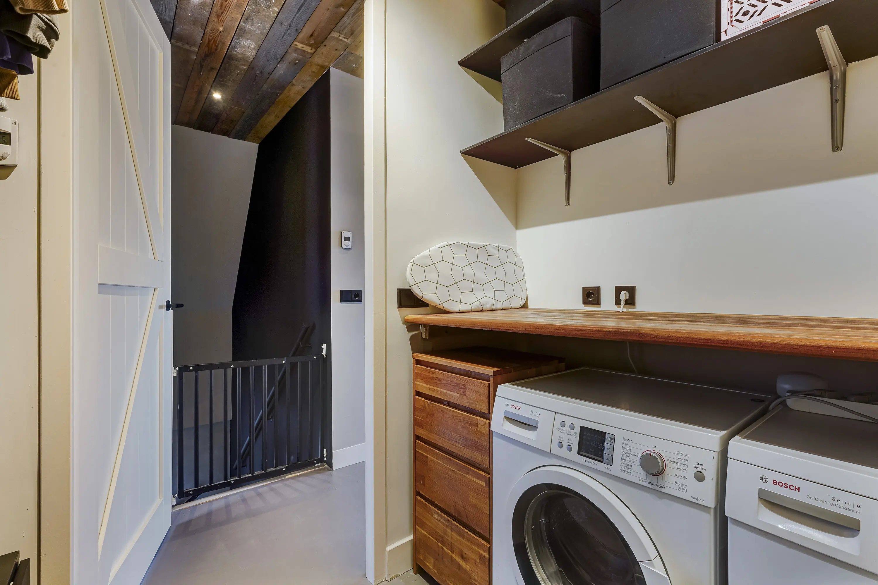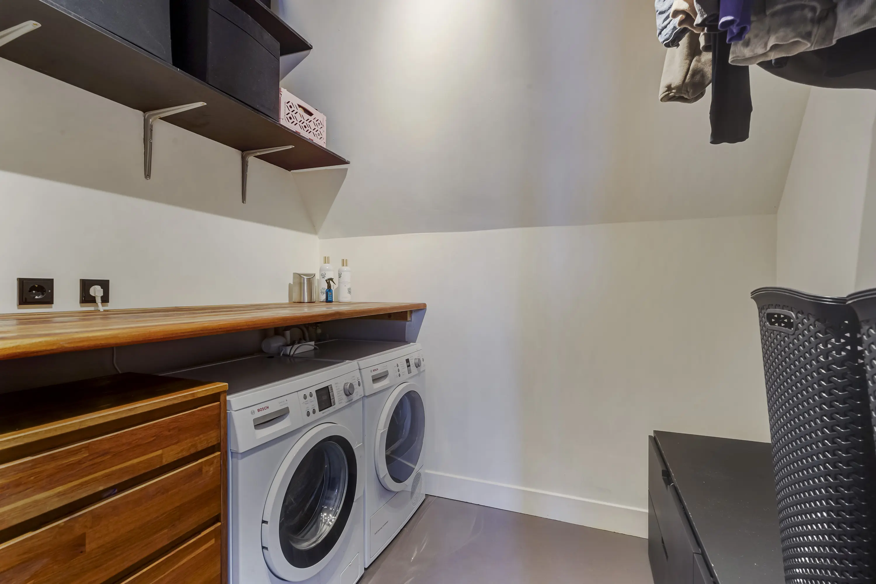 Ideaal is de separate toiletruimte op de verdieping én de aparte wasruimte op deze verdieping, waar de aansluiting voor wasmachine en droger is gevestigd en de mogelijkheid om uw was op te vouwen.