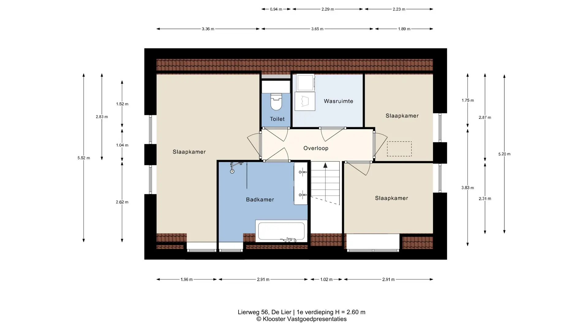 Aan de voorzijde van de woning bevinden zich twee dakkapellen, die zorgen voor meer oppervlakte in twee slaapkamers en de badkamer.