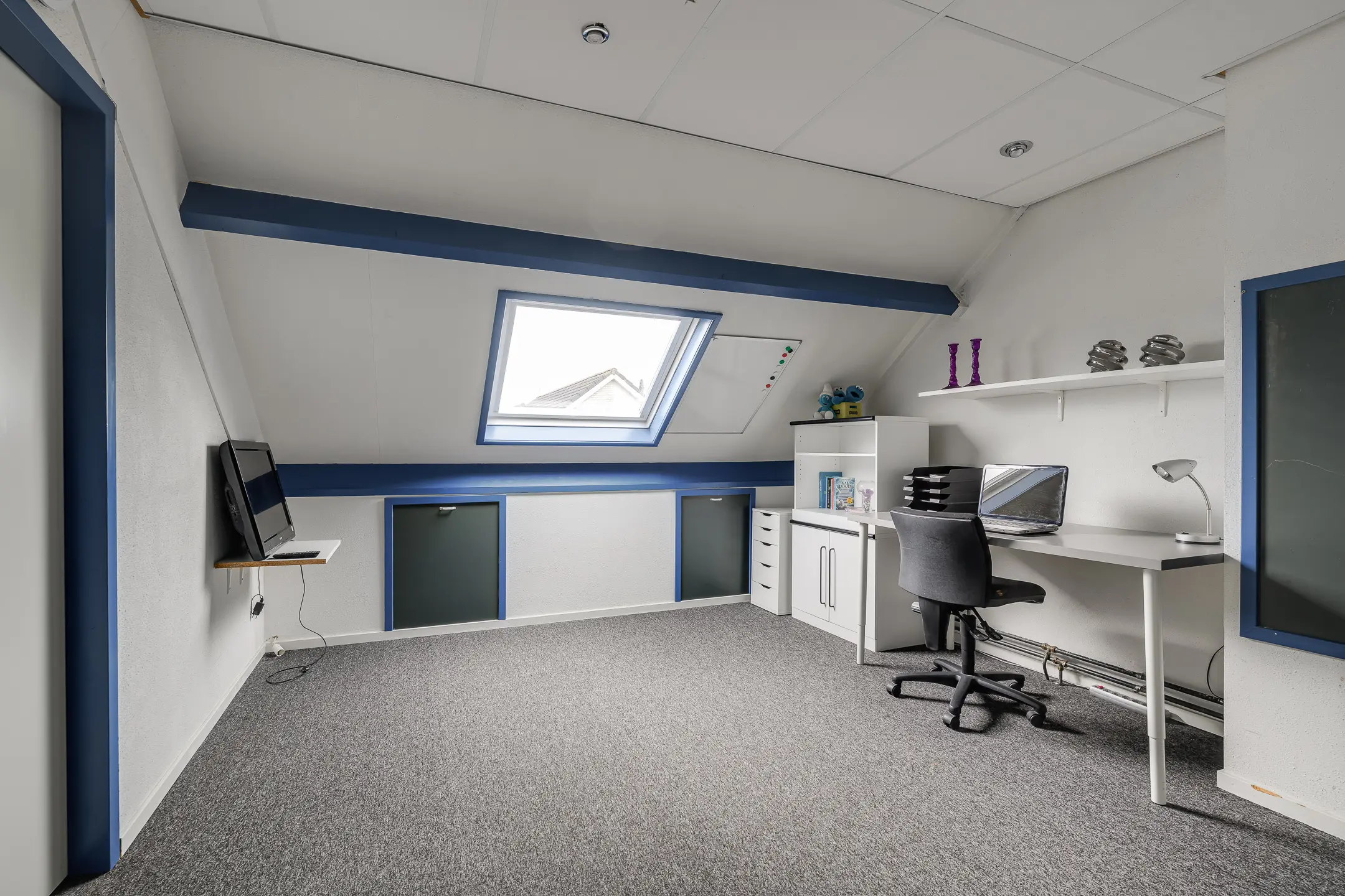 Zowel de overloop als de slaapkamer zijn voorzien van een dakraam, wat zorgt voor voldoende daglicht.