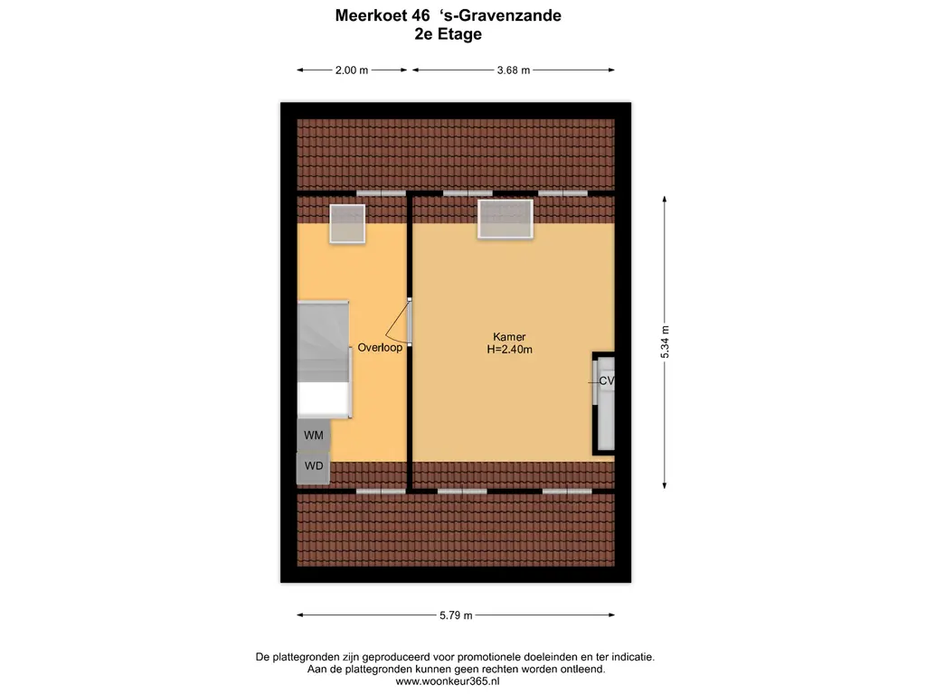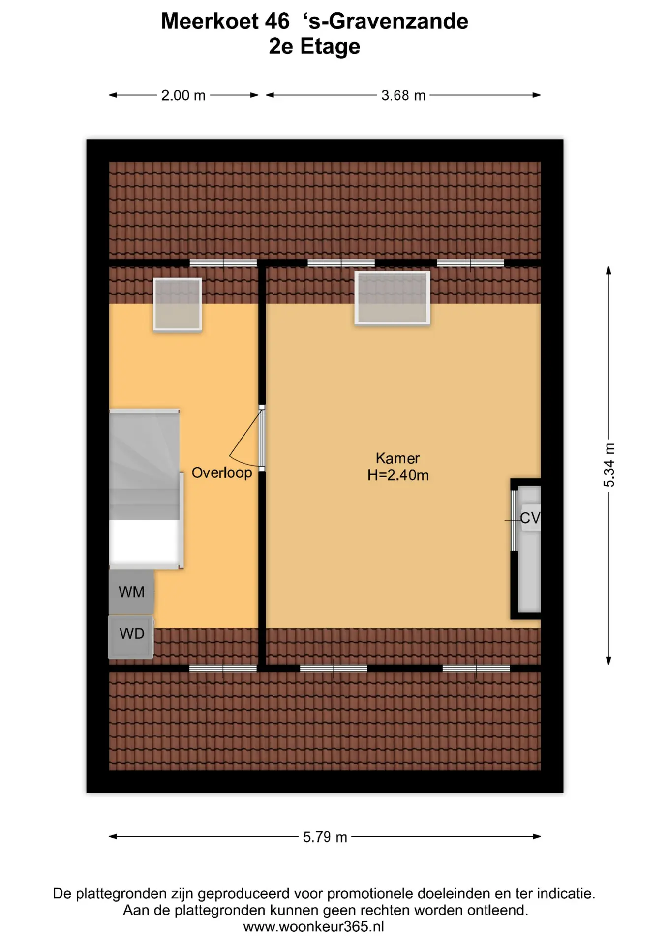 Op de tweede verdieping bevindt zich de zolder, die bereikbaar is via een vaste trap.