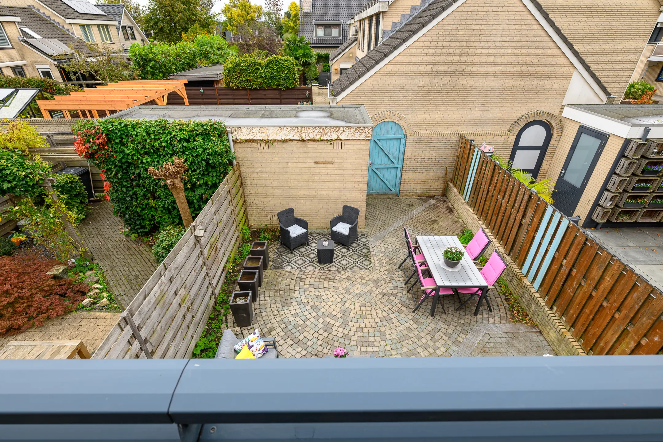 Een extra pluspunt is de zonnige achtertuin, die gunstig is gelegen op het zuiden. Hierdoor kunt u vrijwel de hele dag genieten van de zon!