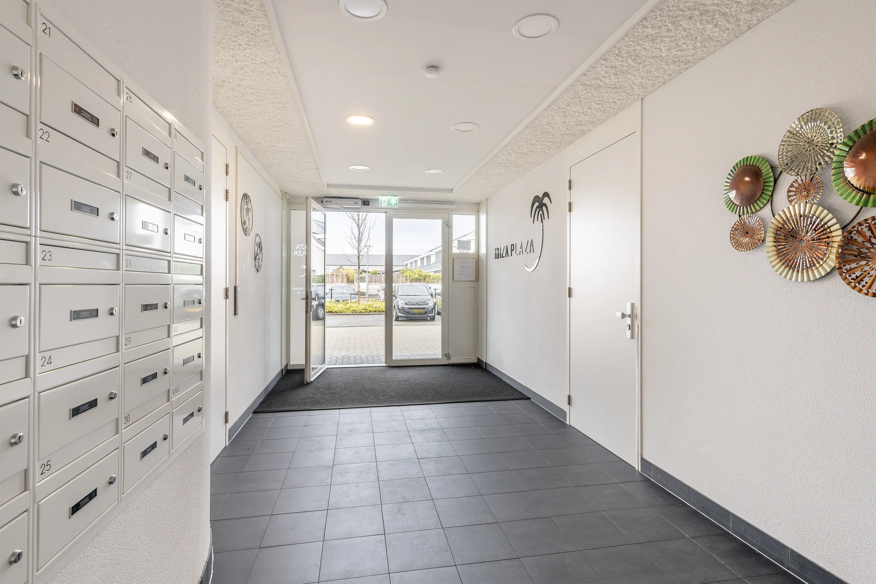 Eigen parkeerplaats op het terrein bij het complex. Voorportaal met videofoon en brievenbussen. Afgesloten centrale hal met lift en trapopgang naar de verdiepingen. Inpandige gemeenschappelijke fietsenberging. De deuren zijn automatisch te openen en de vloer is voorzien van vloerbedekking.
