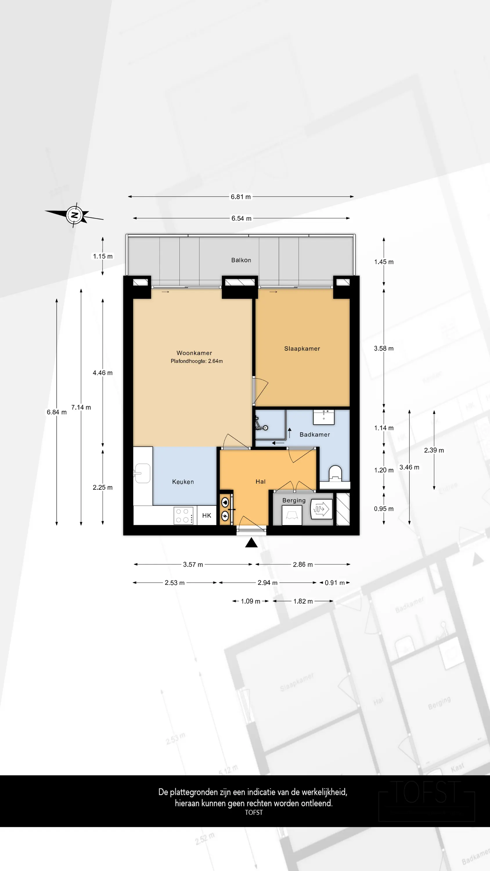 - Balkon bereikbaar via schuifpui vanuit de woonkamer en vanuit de slaapkamer;