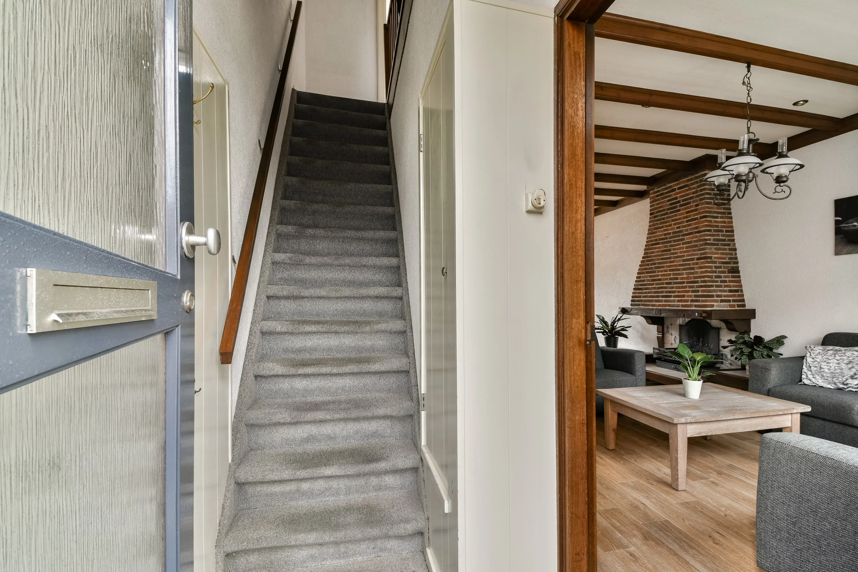 Entree aan stoep in hal met meterkast en toegang tot de doorzon woonkamer.