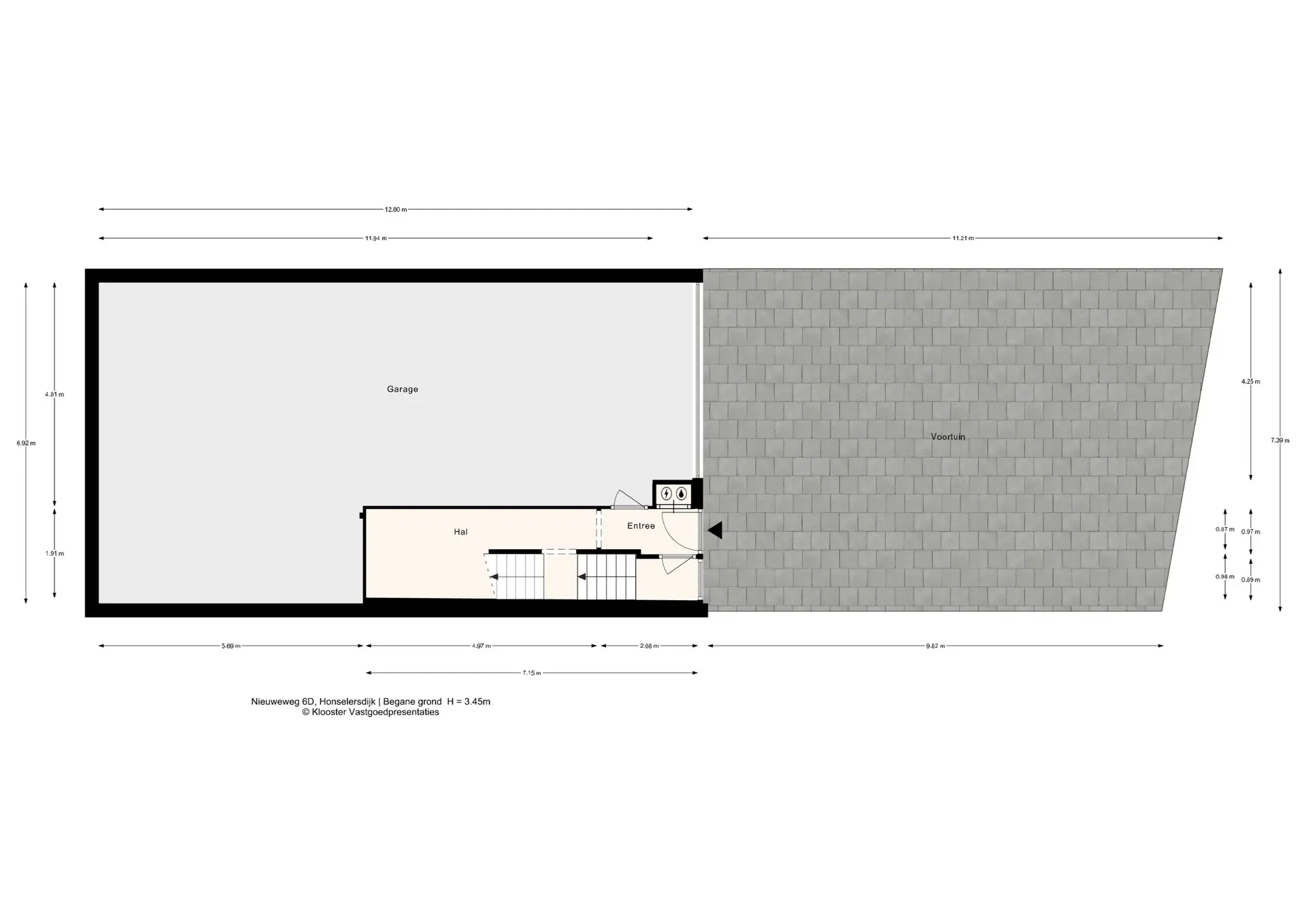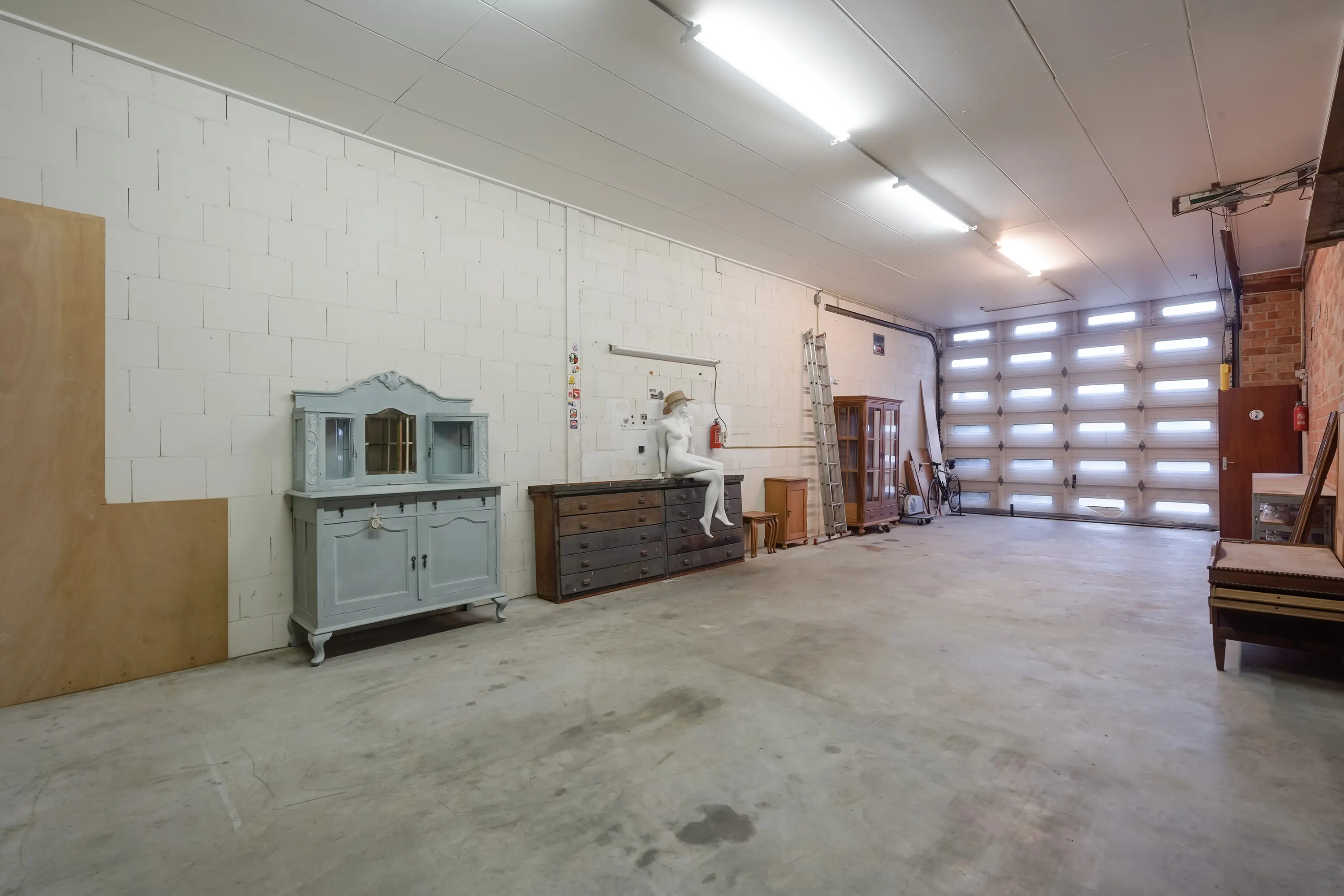 Entree met loopdeur en naastgelegen elektrische overheaddeur, aparte deur met extra gang en toegang tot de bedrijfsruimte met betonvloer v.v. vloerverwarming.