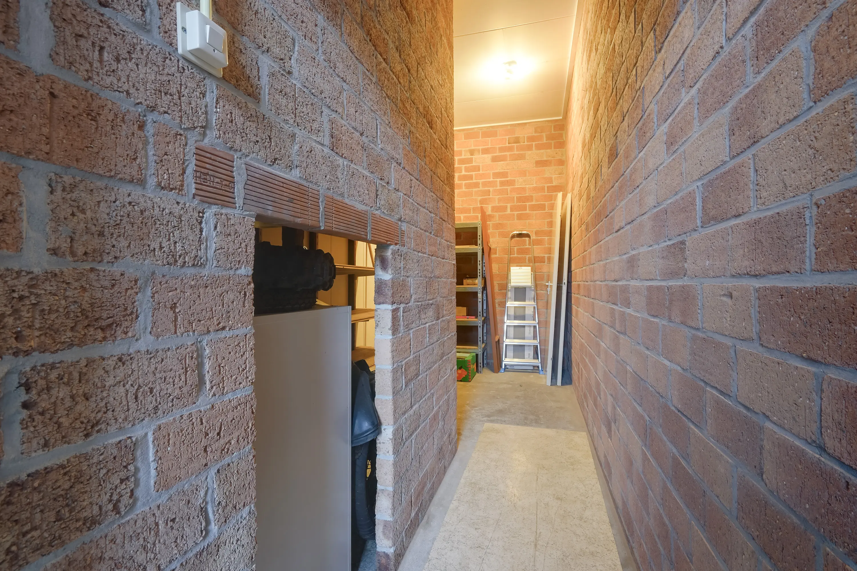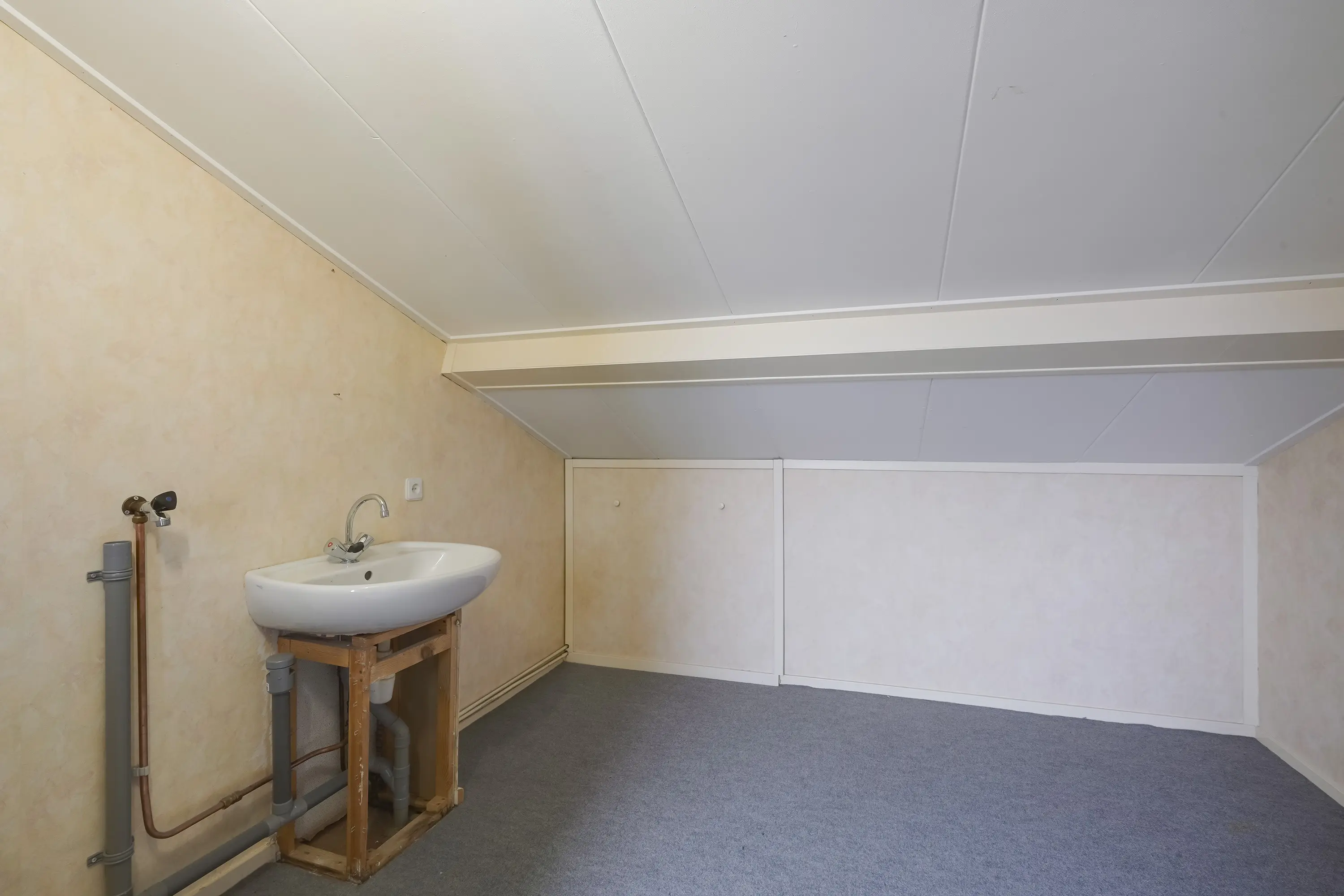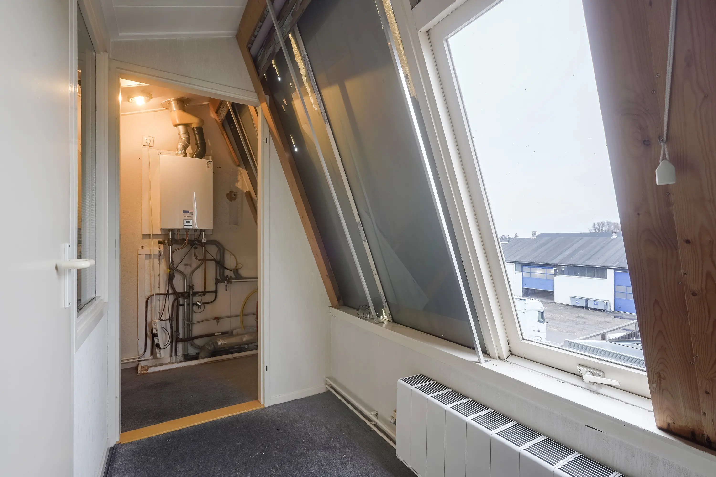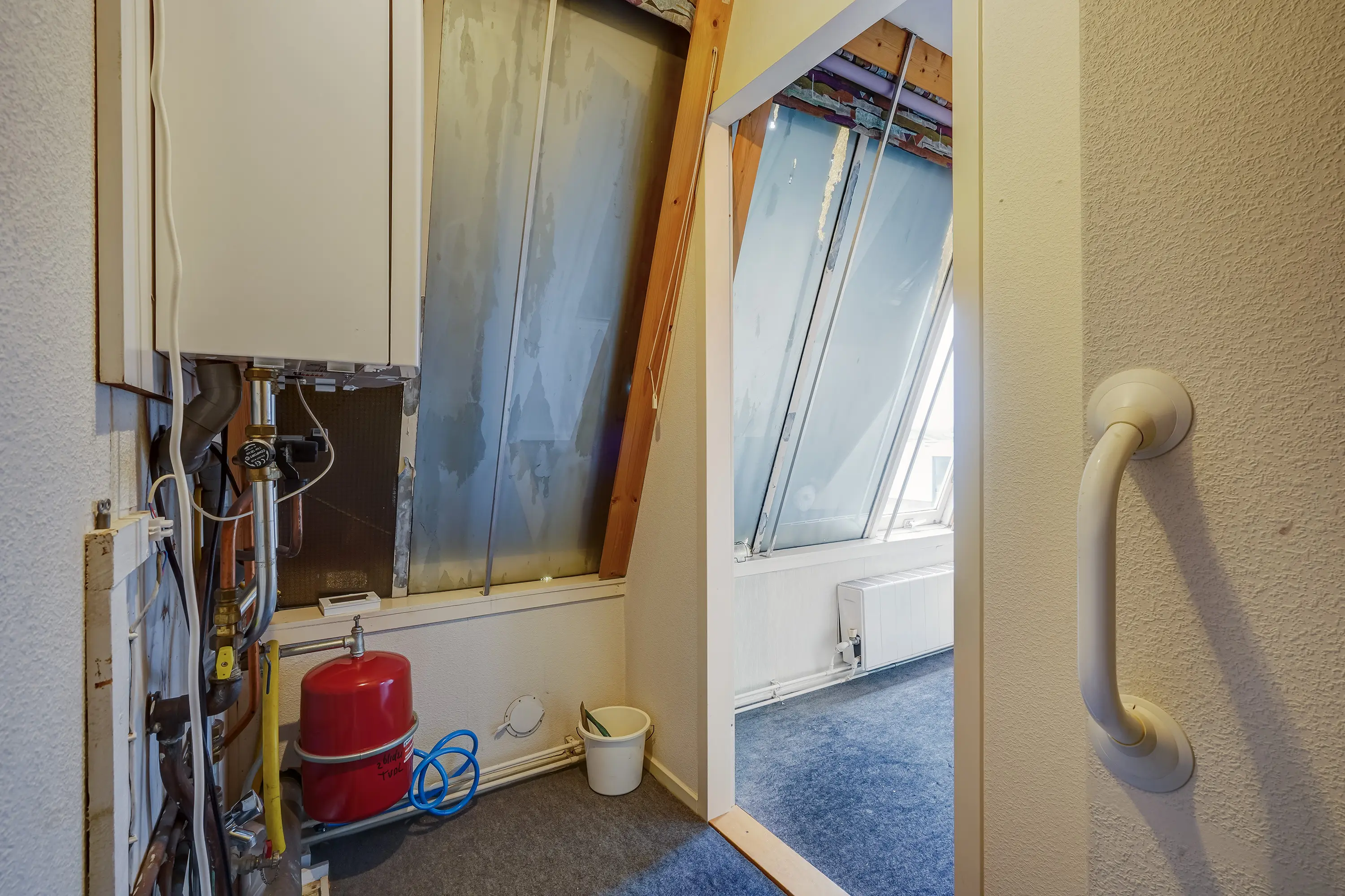 Overloop met opstelplaats cv combiketel (Remeha Avanta), corridor met glas. Twee naast elkaar gelegen slaapkamers met bergruimte.