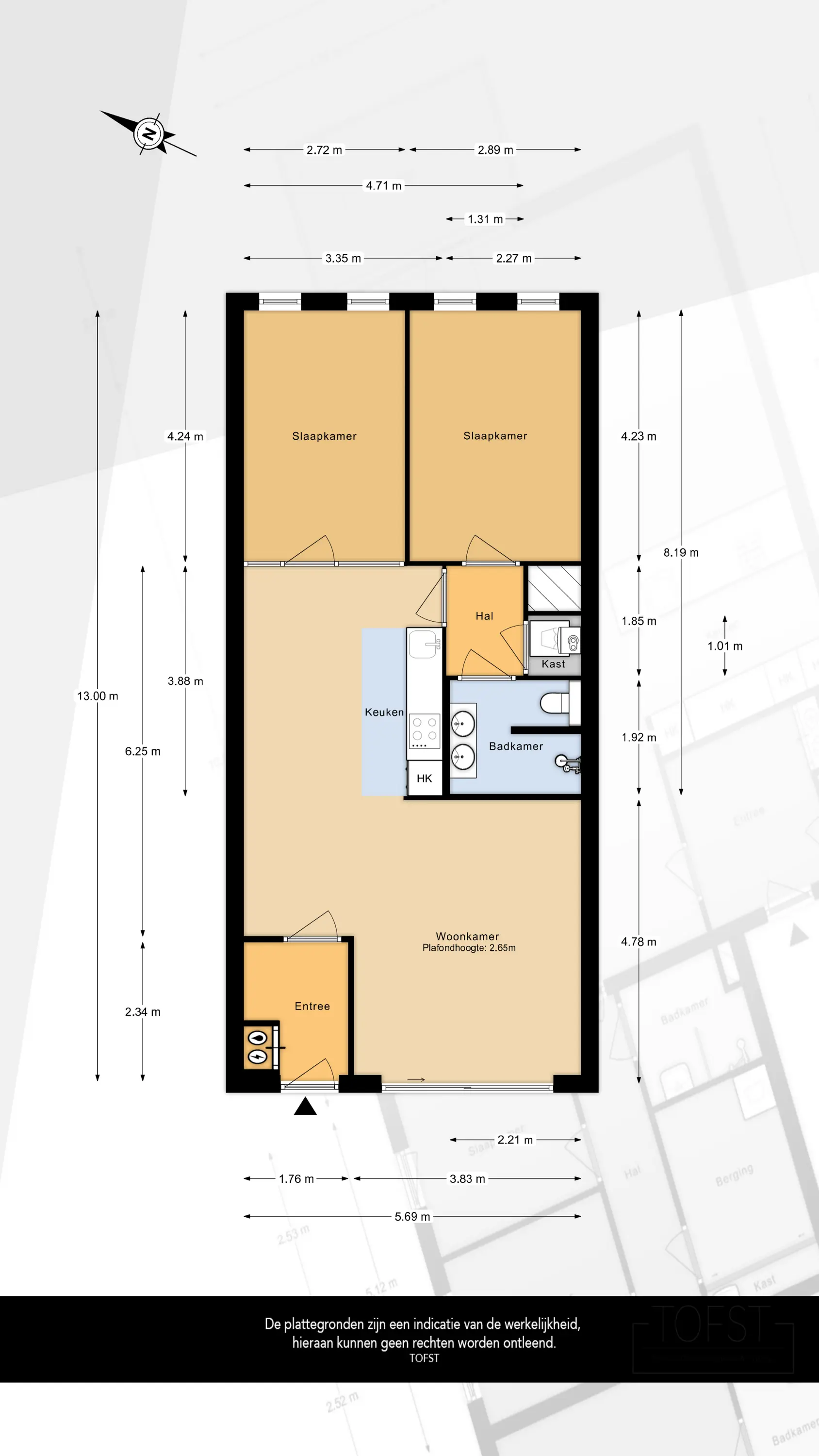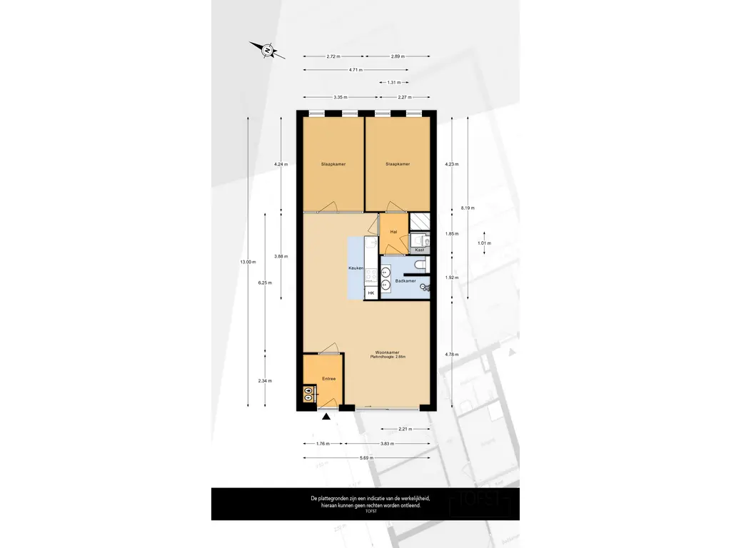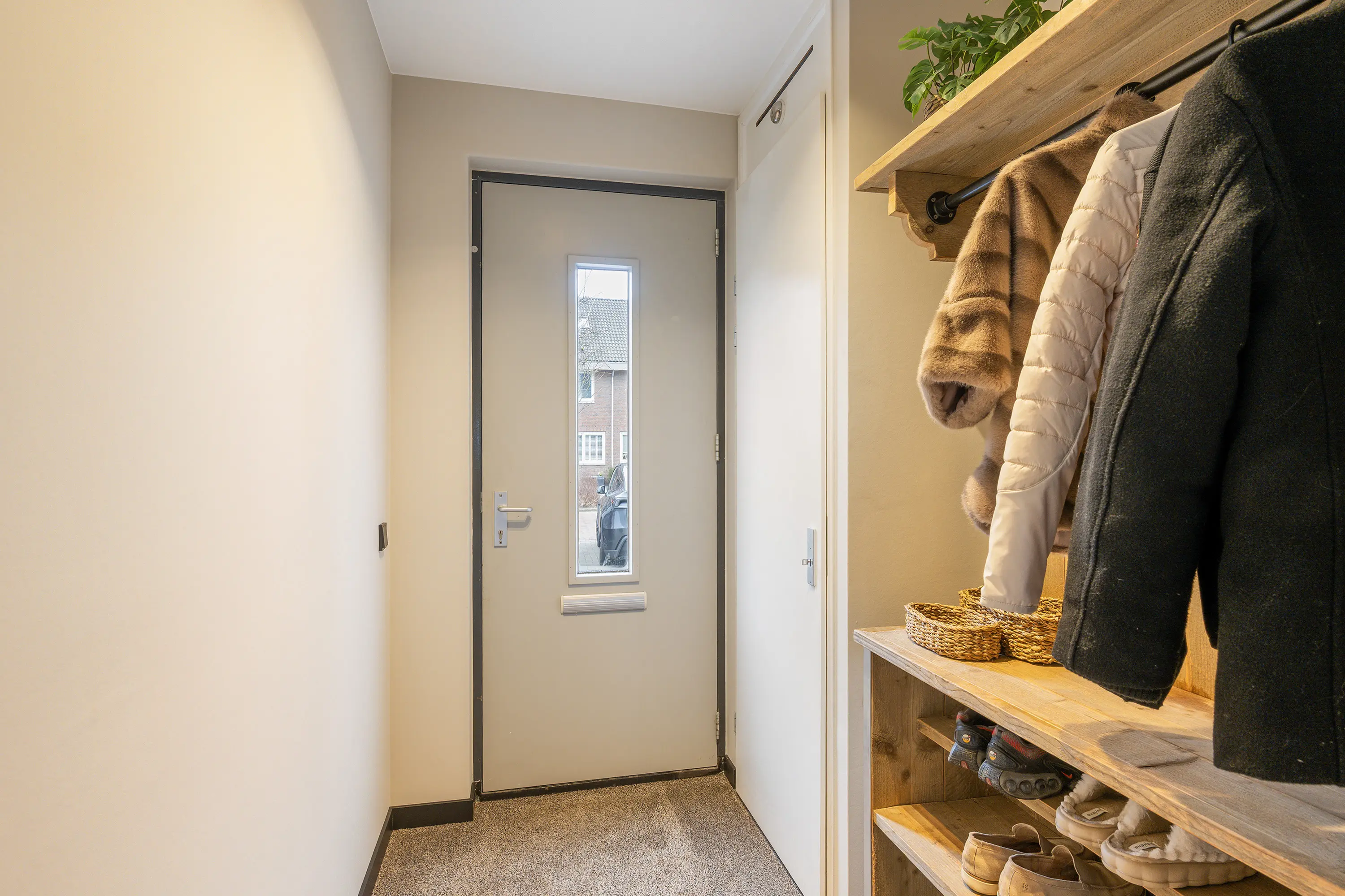 Naast de keuken bevindt zich een deur naar de hal, welke toegang biedt tot de hoofdslaapkamer, badkamer en wasruimte.