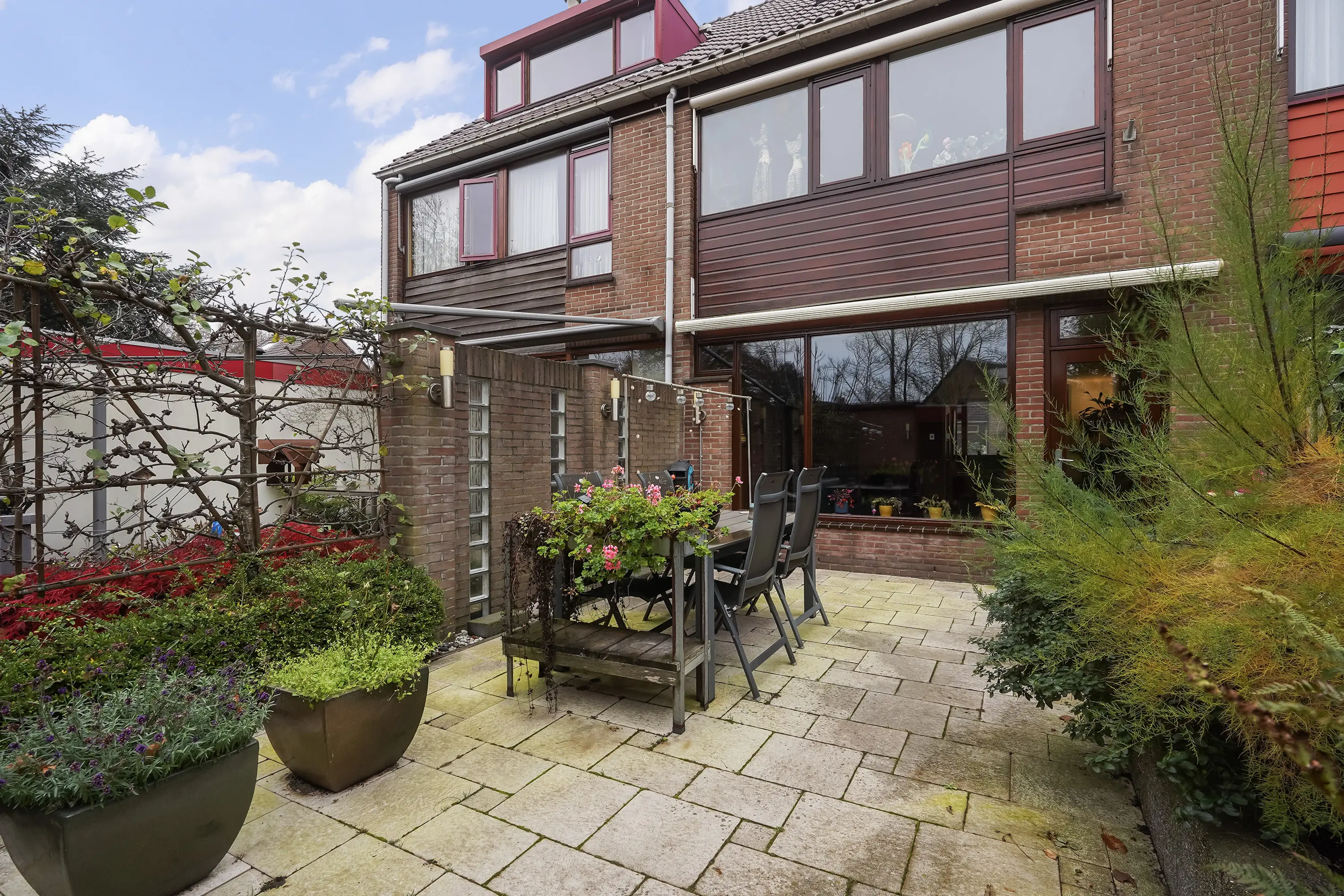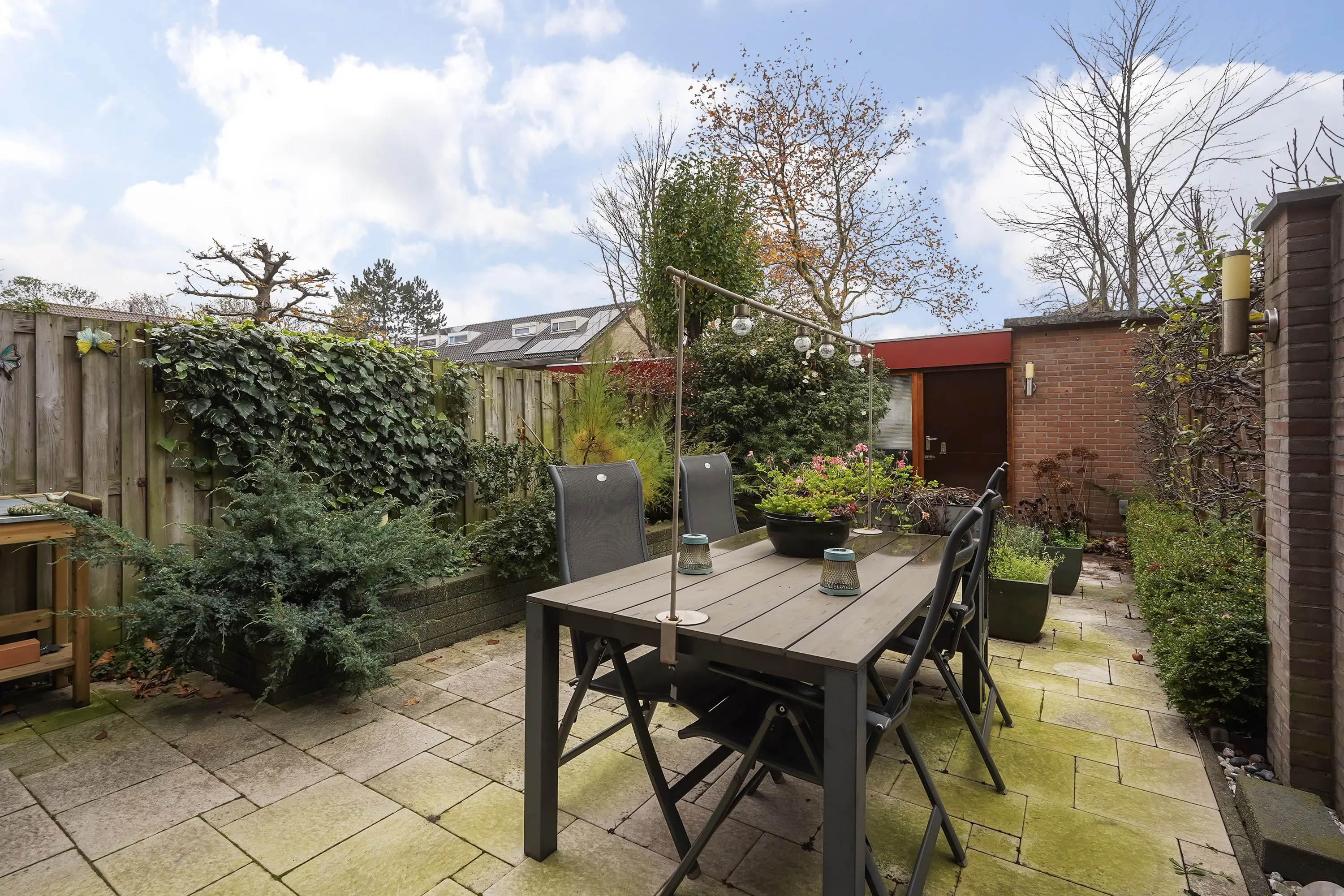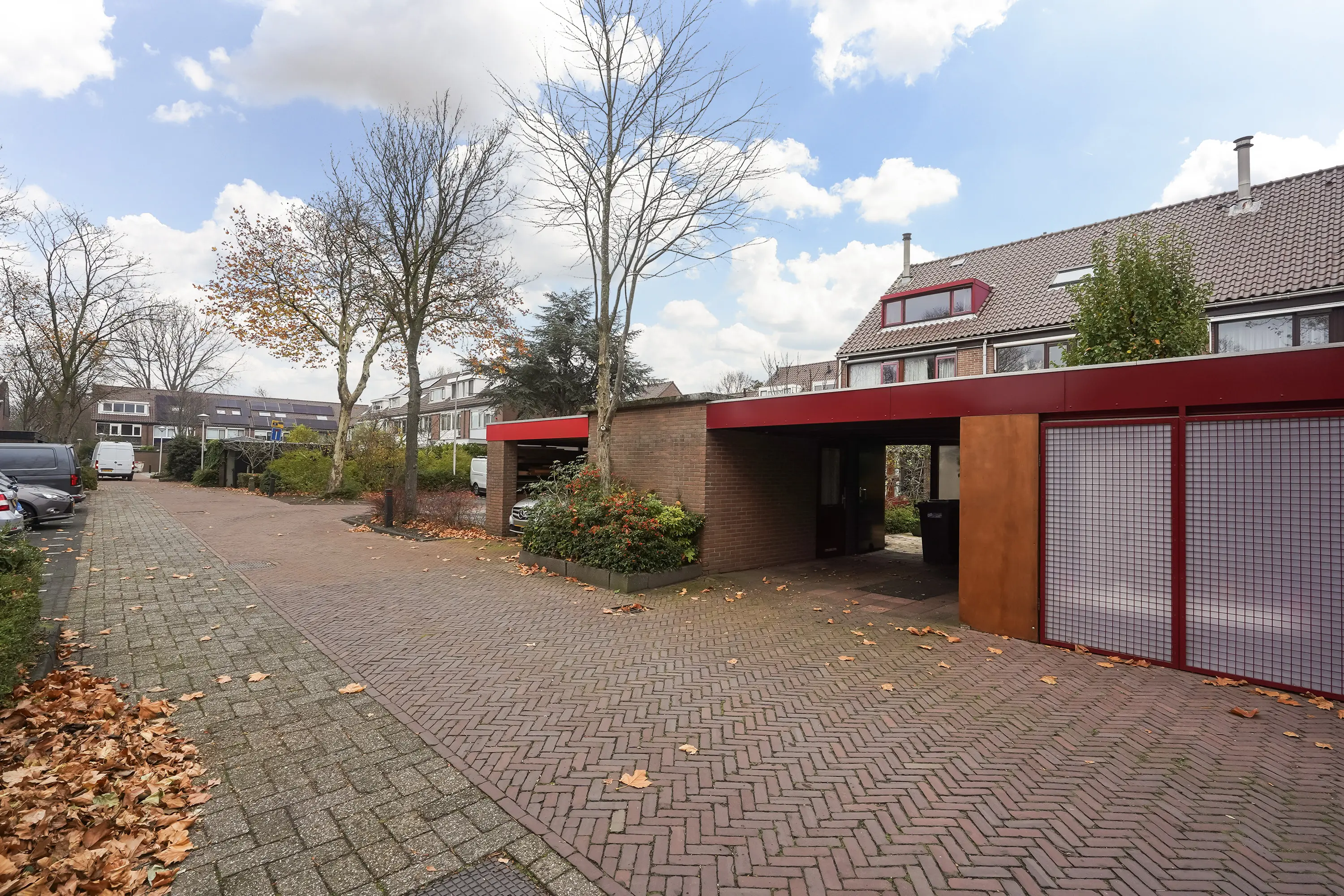 Achter in de woonkamer bevindt zich een grote glazen pui met een deur naar de diepe achtertuin. De tuin biedt voldoende ruimte om meerdere zitplekken te creëren. Achterin de tuin vindt u een doorgang naar de overkapping/carport, waar u uw auto kunt parkeren. Rechts in de carport bevindt zich een deur naar de berging van circa 6 m², ideaal voor opslag.
