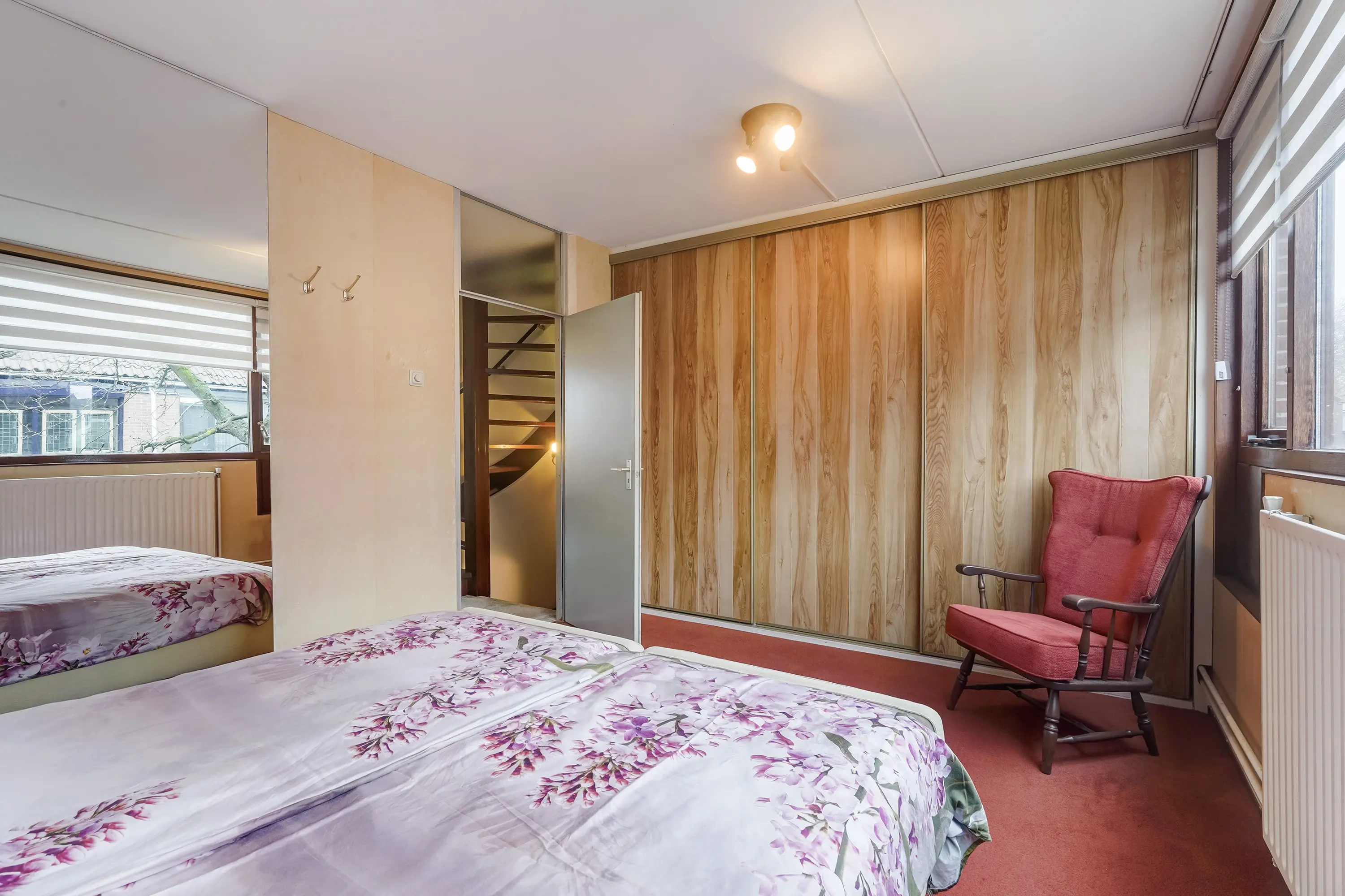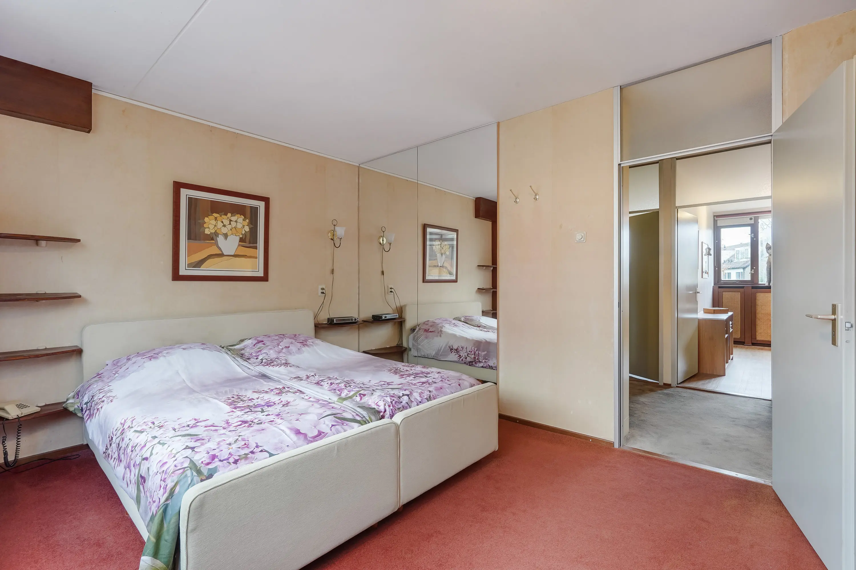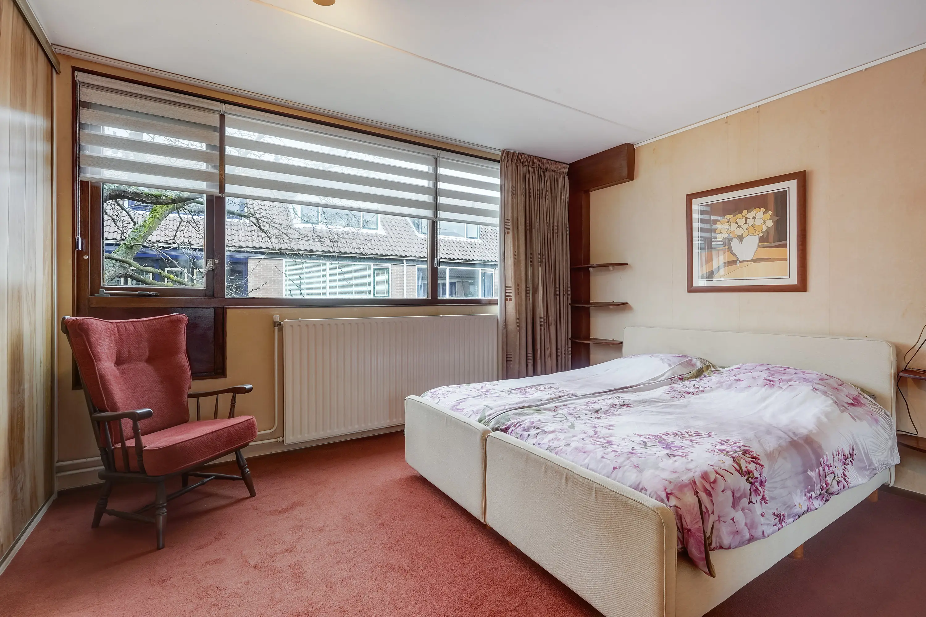 Deze ruime kamer beschikt over een brede raampartij over de volledige breedte van de kamer, wat zorgt voor veel lichtinval. Verder is de hoofdslaapkamer voorzien van een lange ingebouwde kastenwand.