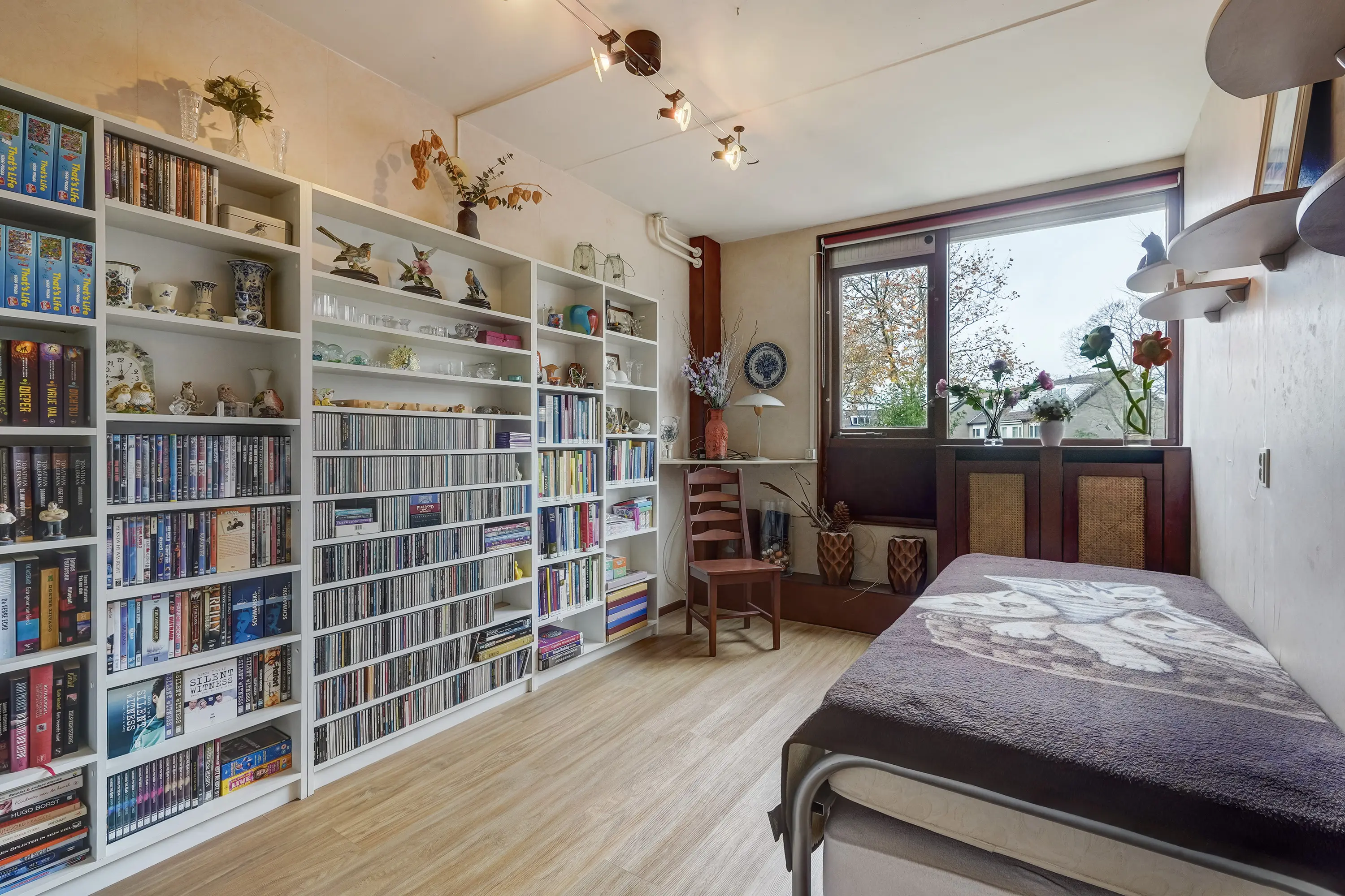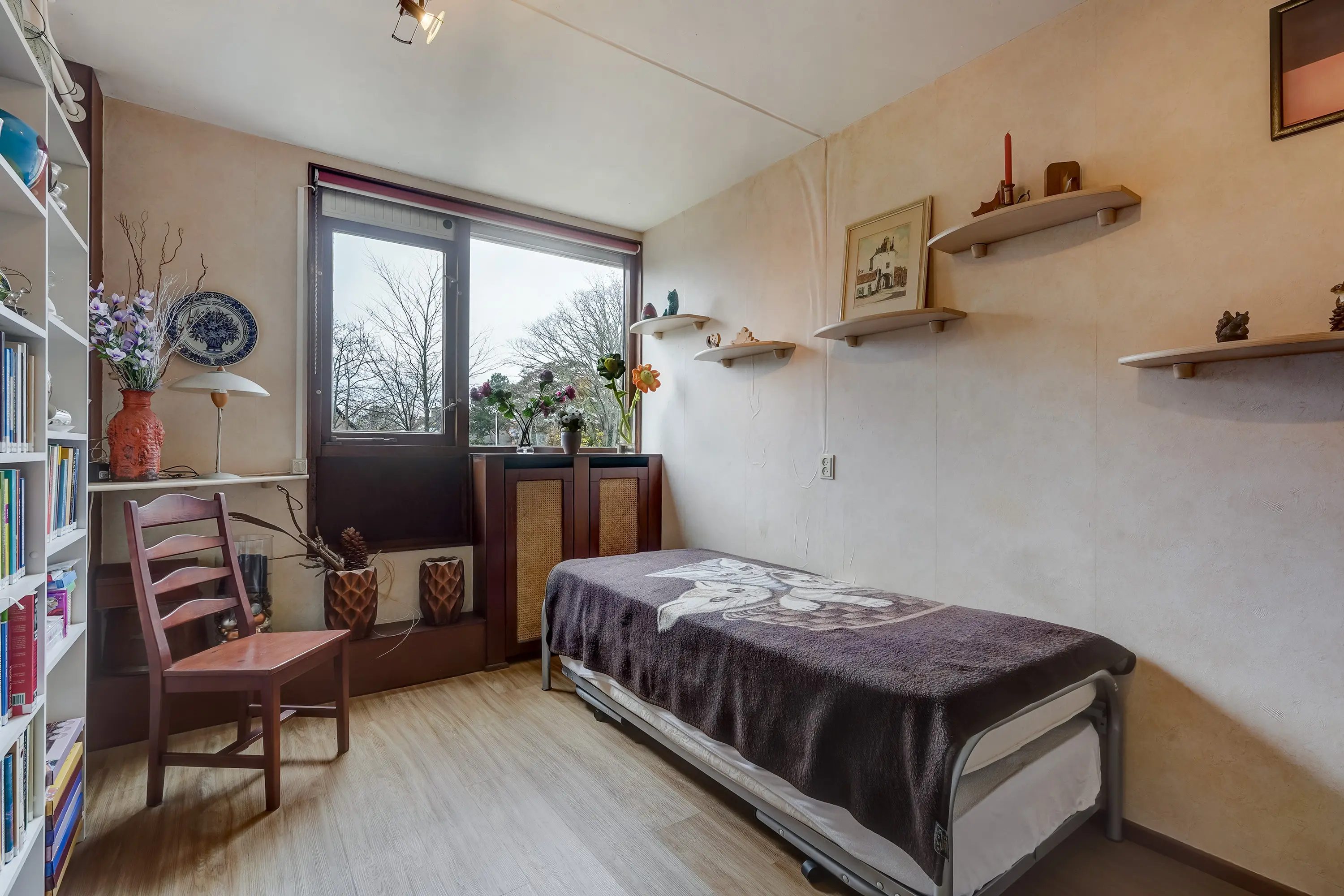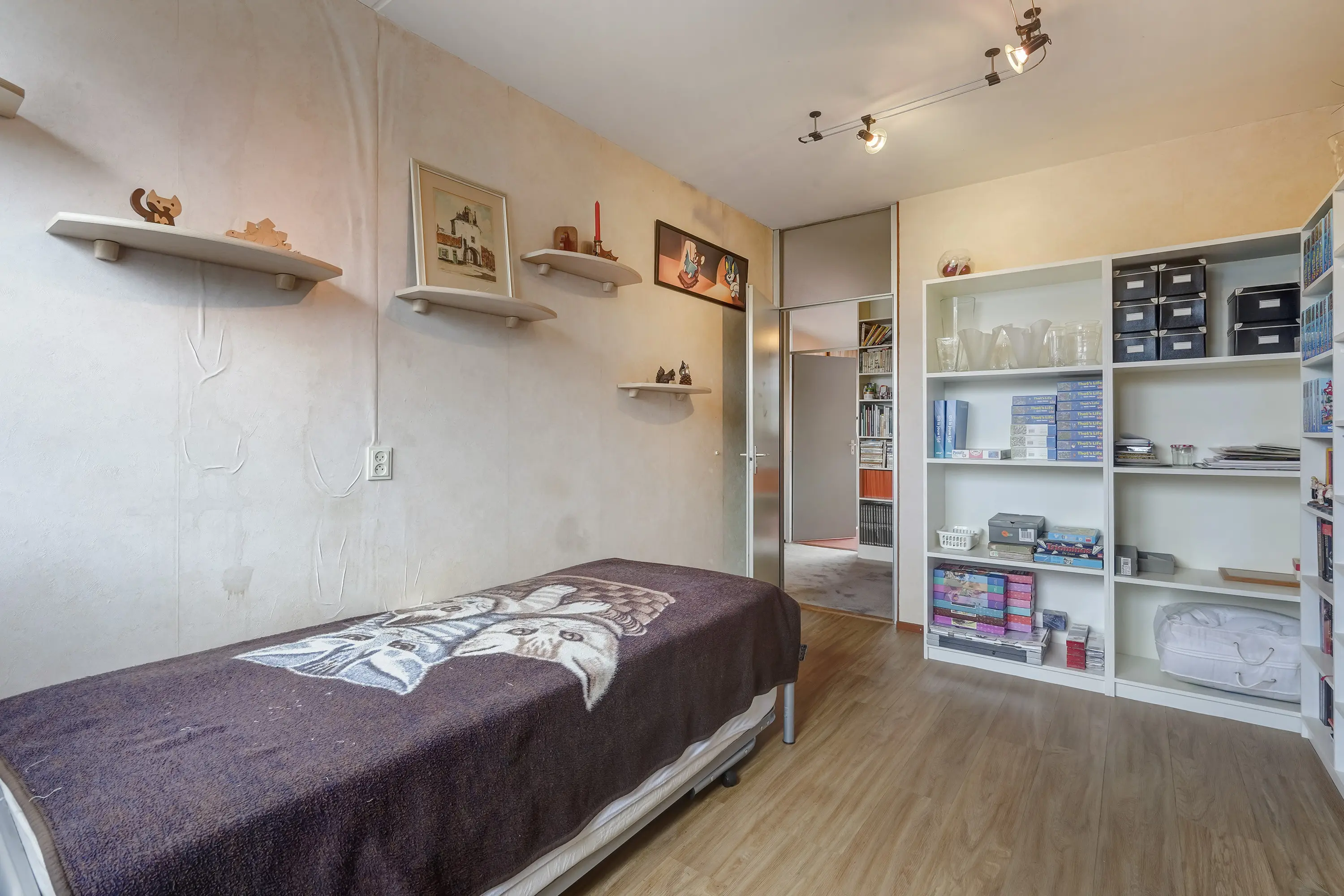 Deze ruime kamer beschikt over een brede raampartij over de volledige breedte van de kamer, wat zorgt voor veel lichtinval. Verder is de hoofdslaapkamer voorzien van een lange ingebouwde kastenwand.