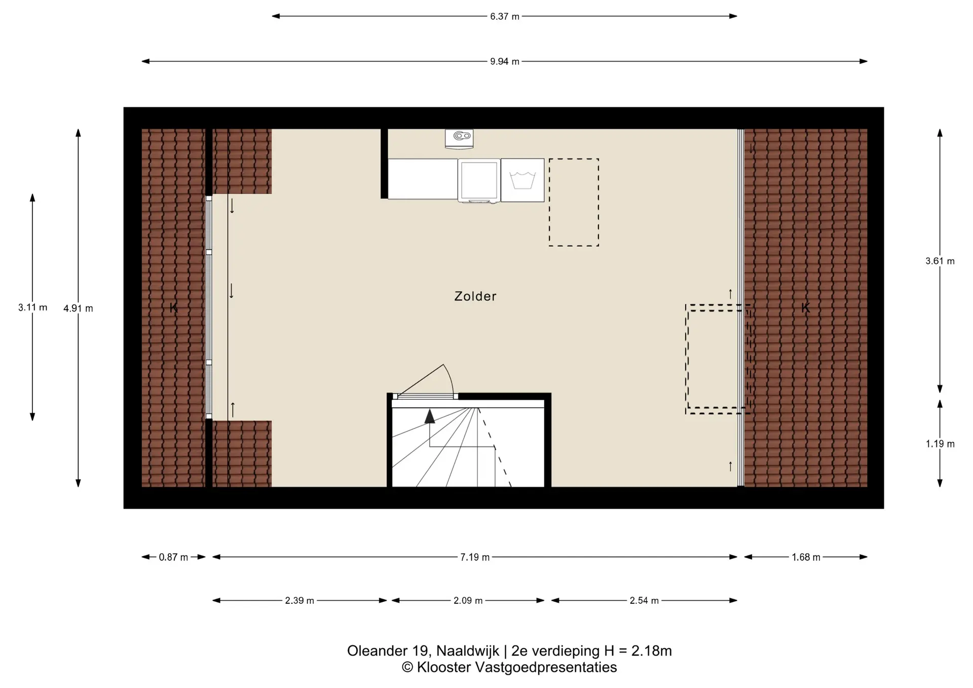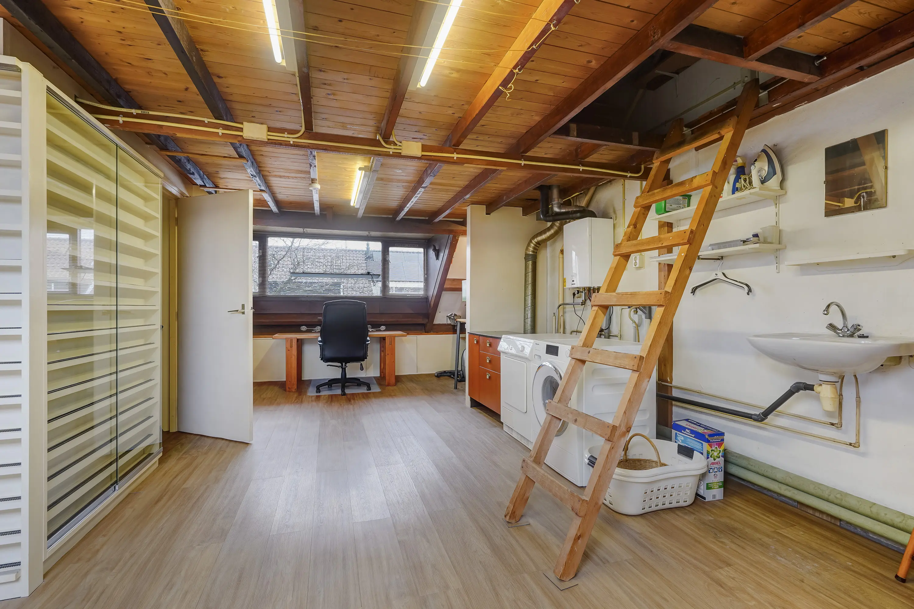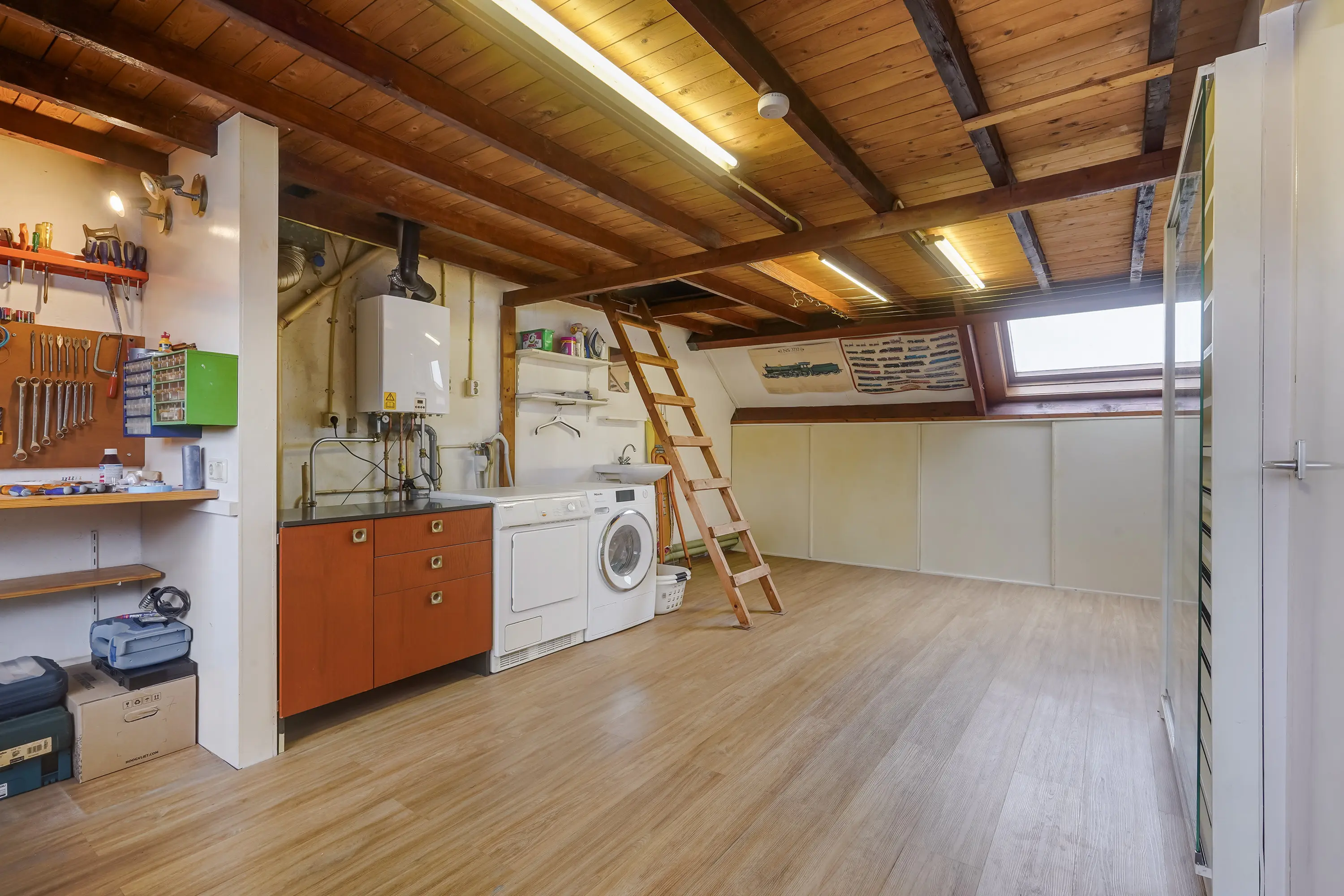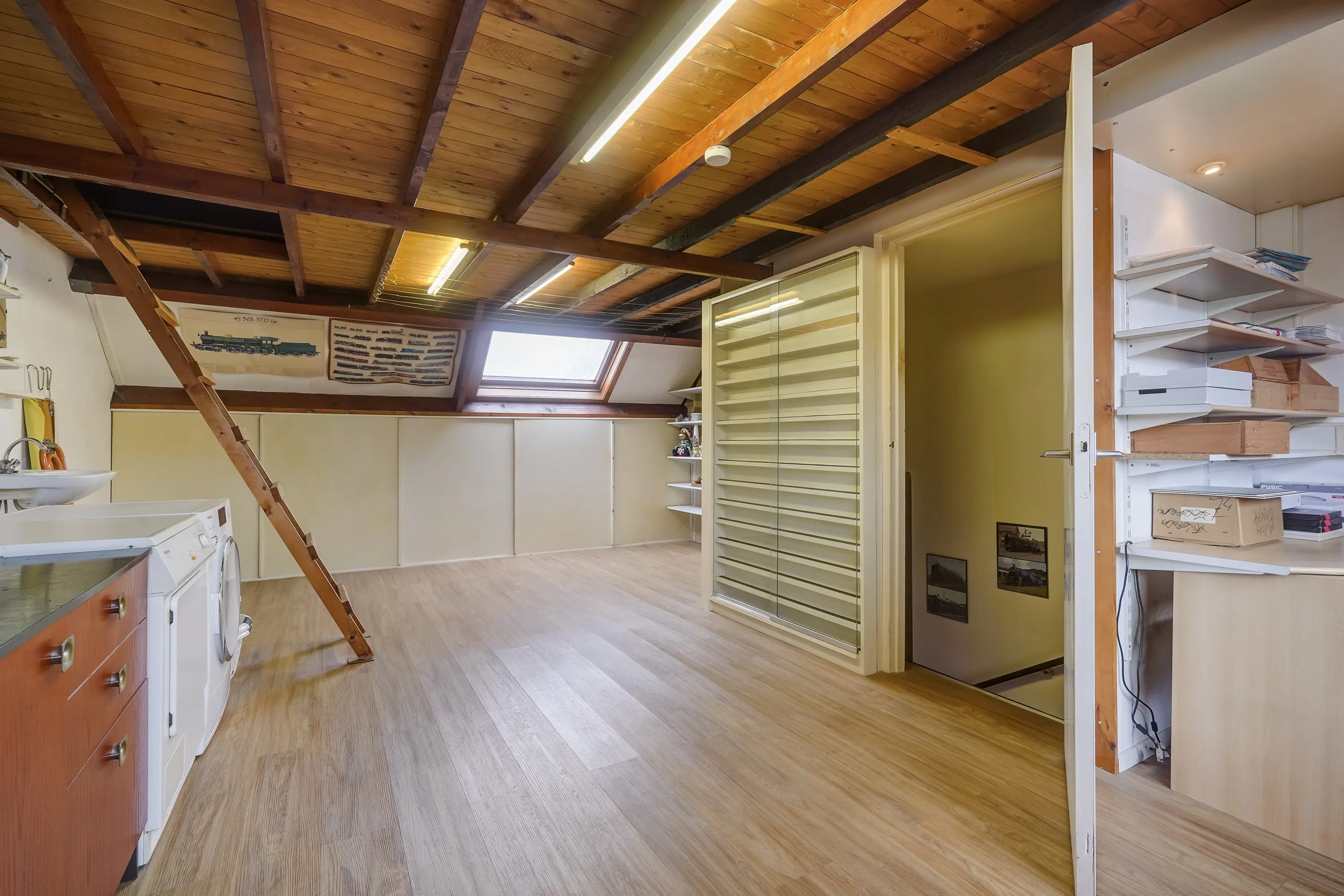 Op de zolder bevinden zich tevens de cv-installatie (2020), wasmachine en droger. Via een houten trap is de vliering bereikbaar. De vliering is zeer ruim en ideaal voor het opbergen van spullen die u niet dagelijks nodig heeft, zoals seizoensgebonden artikelen.