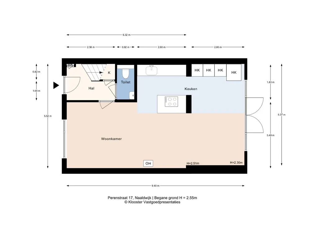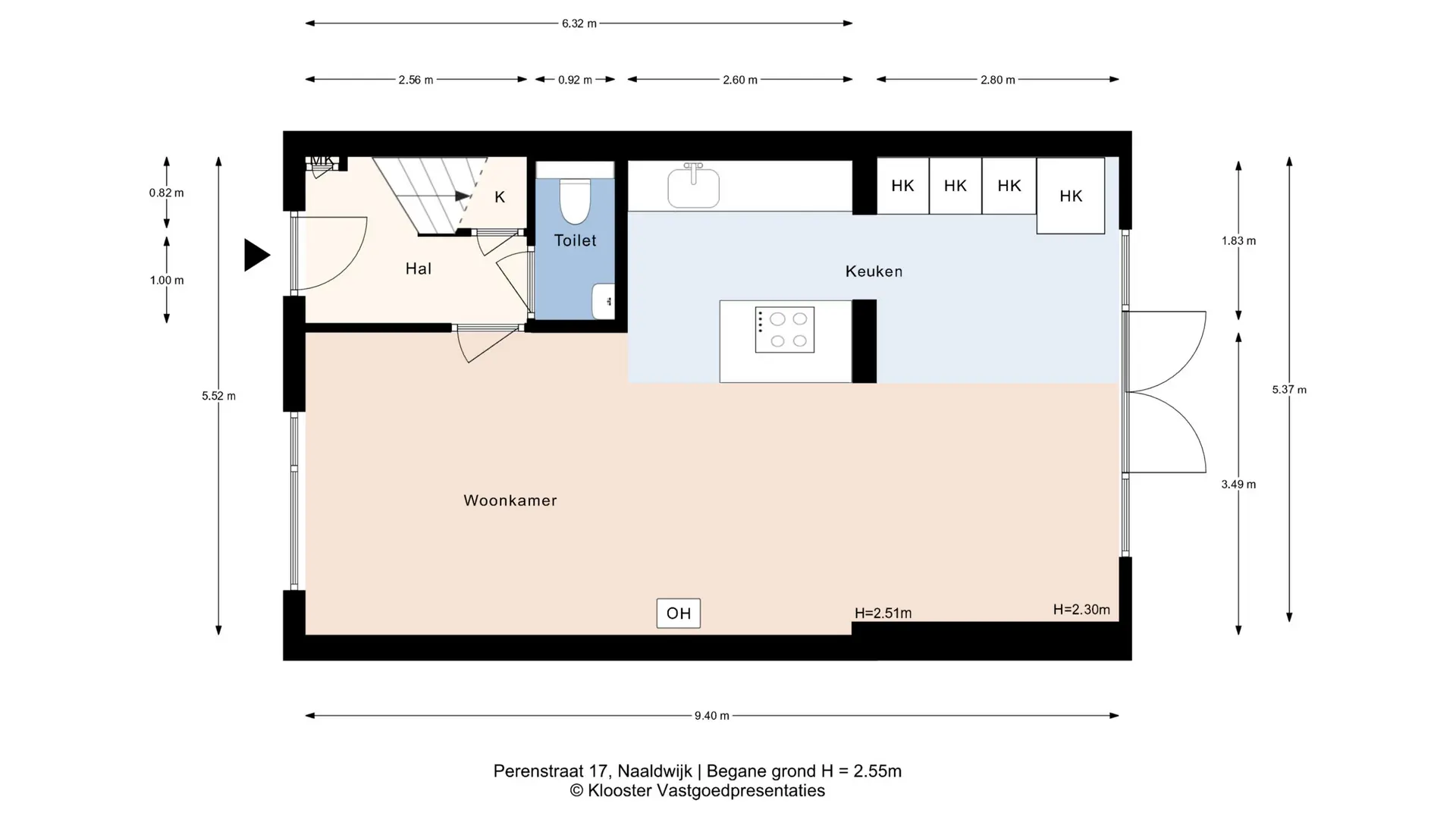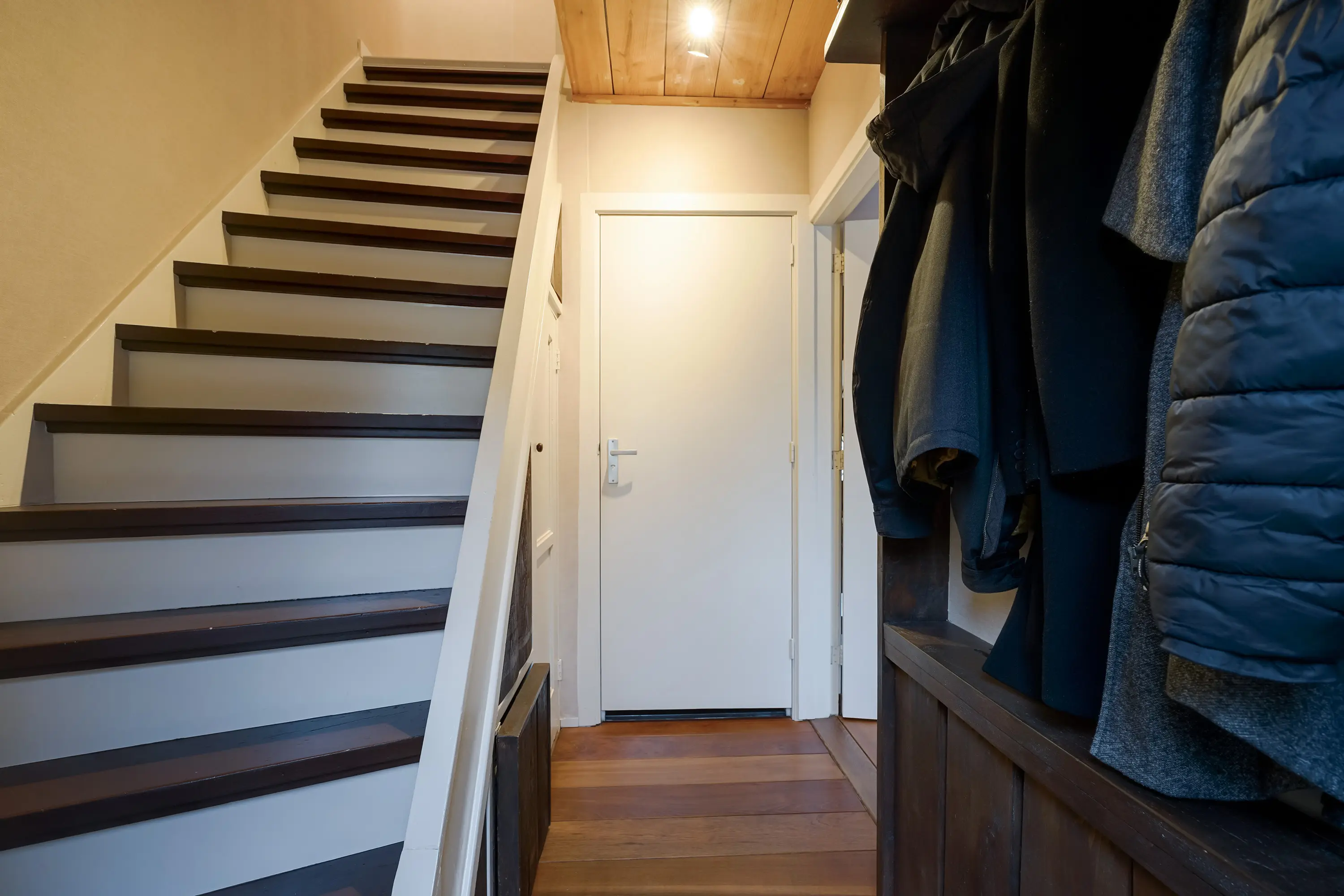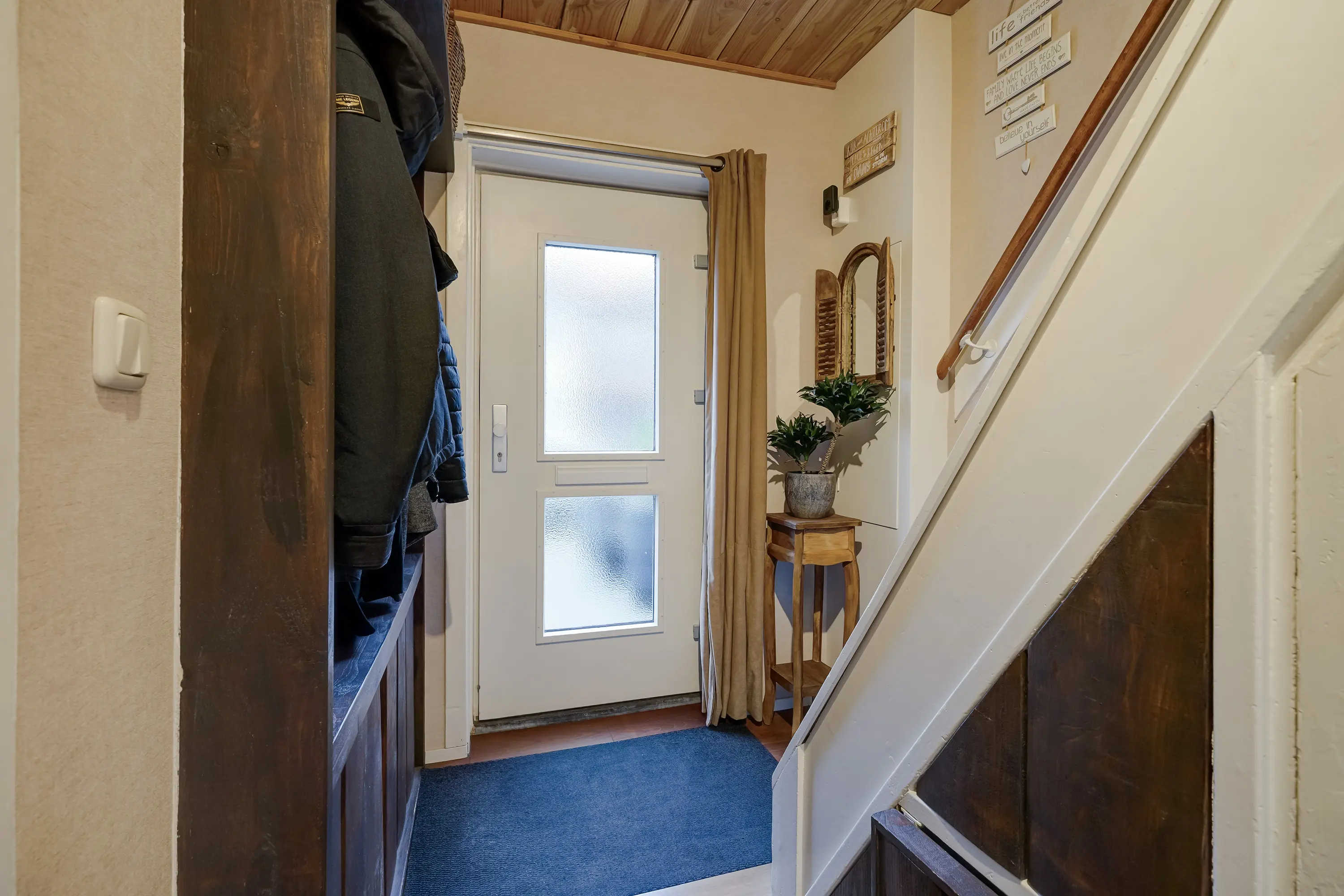 Aan de Perenstraat bevindt zich de voortuin, entree van de woning. Vanuit de hal heeft u toegang tot het toilet, een praktische trapkast, de trap naar de eerste verdieping en de uitgebouwde woonkamer.
