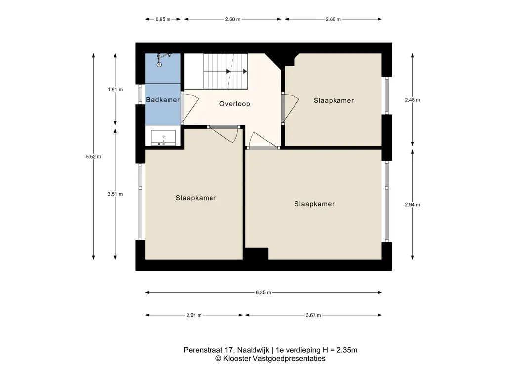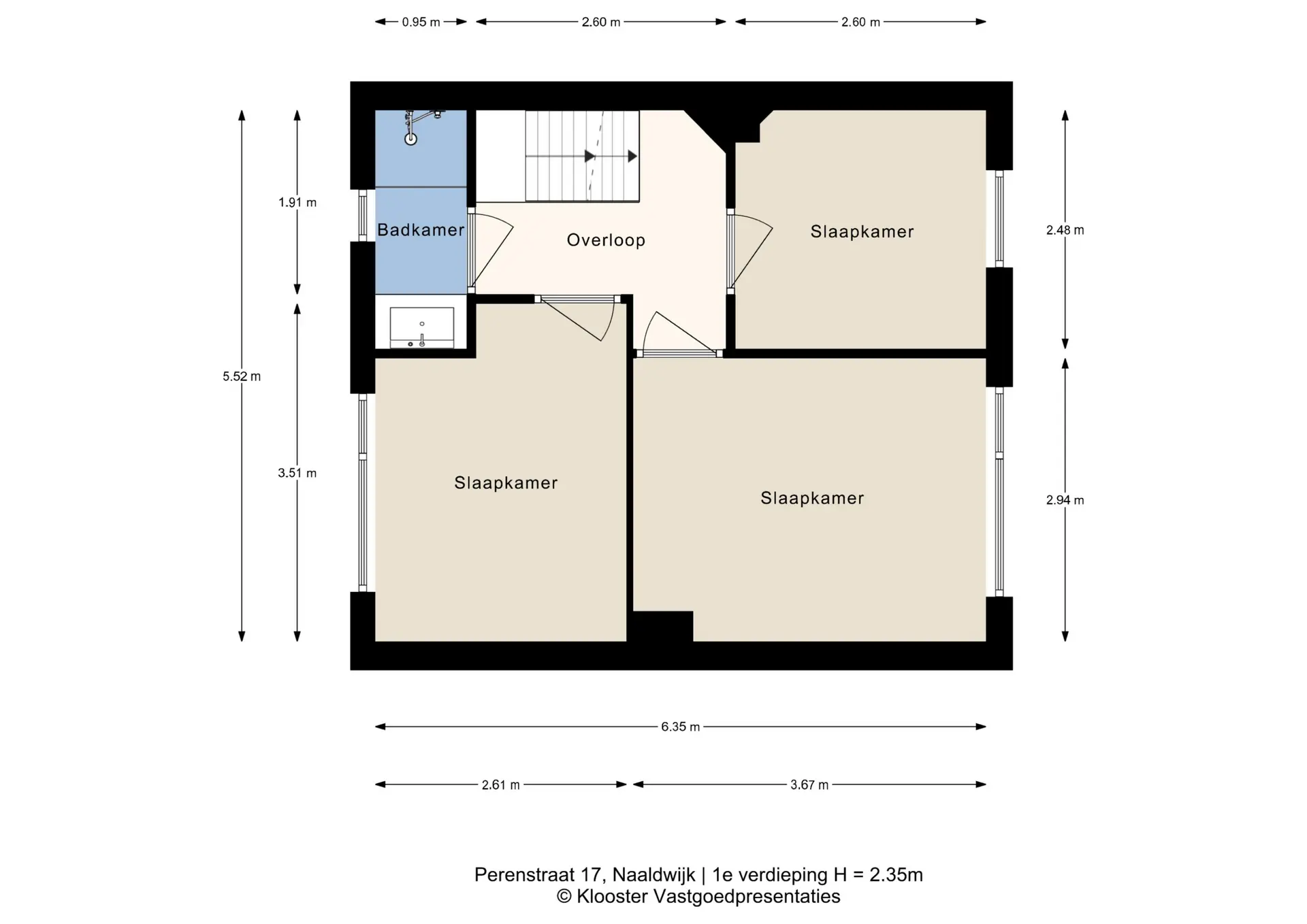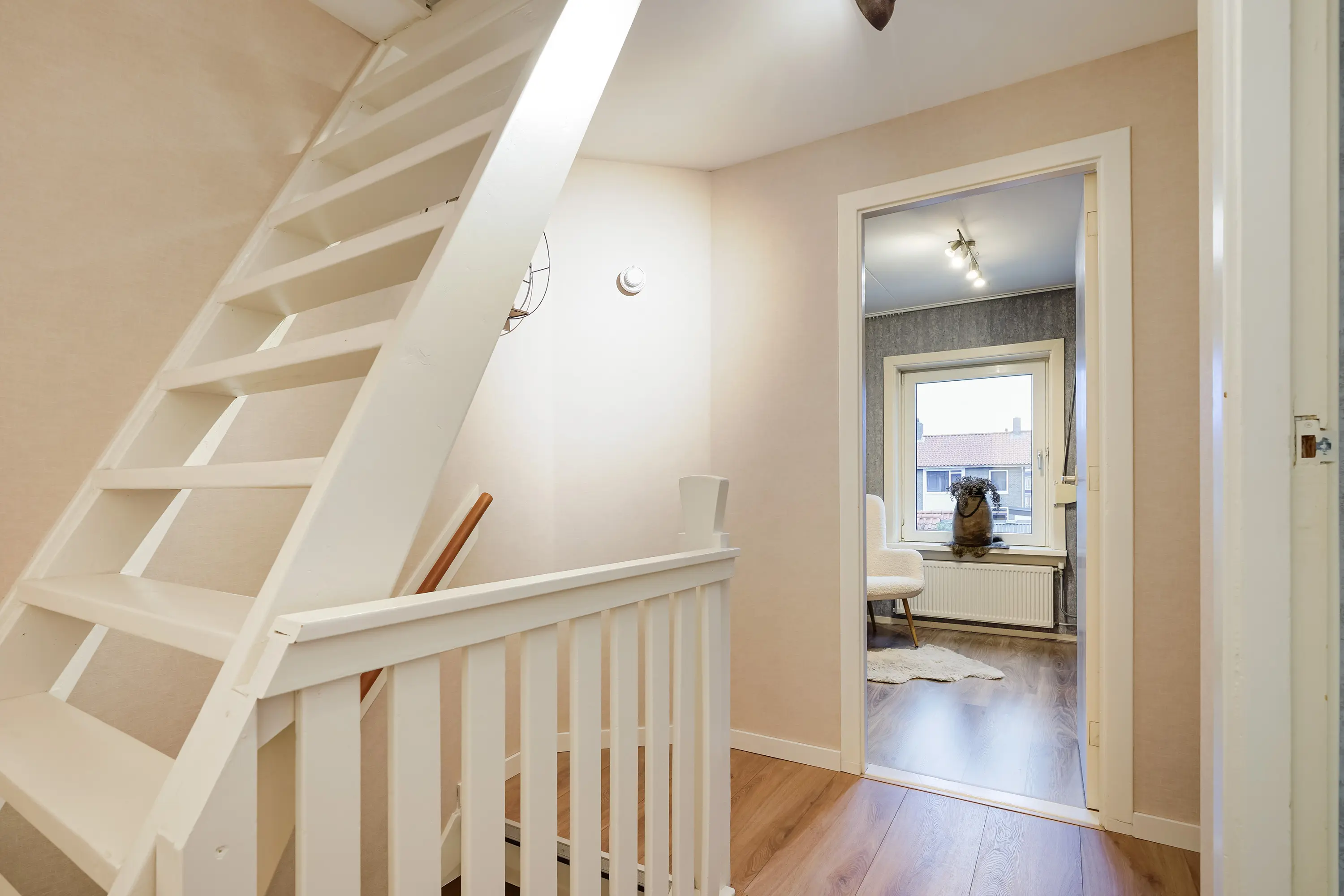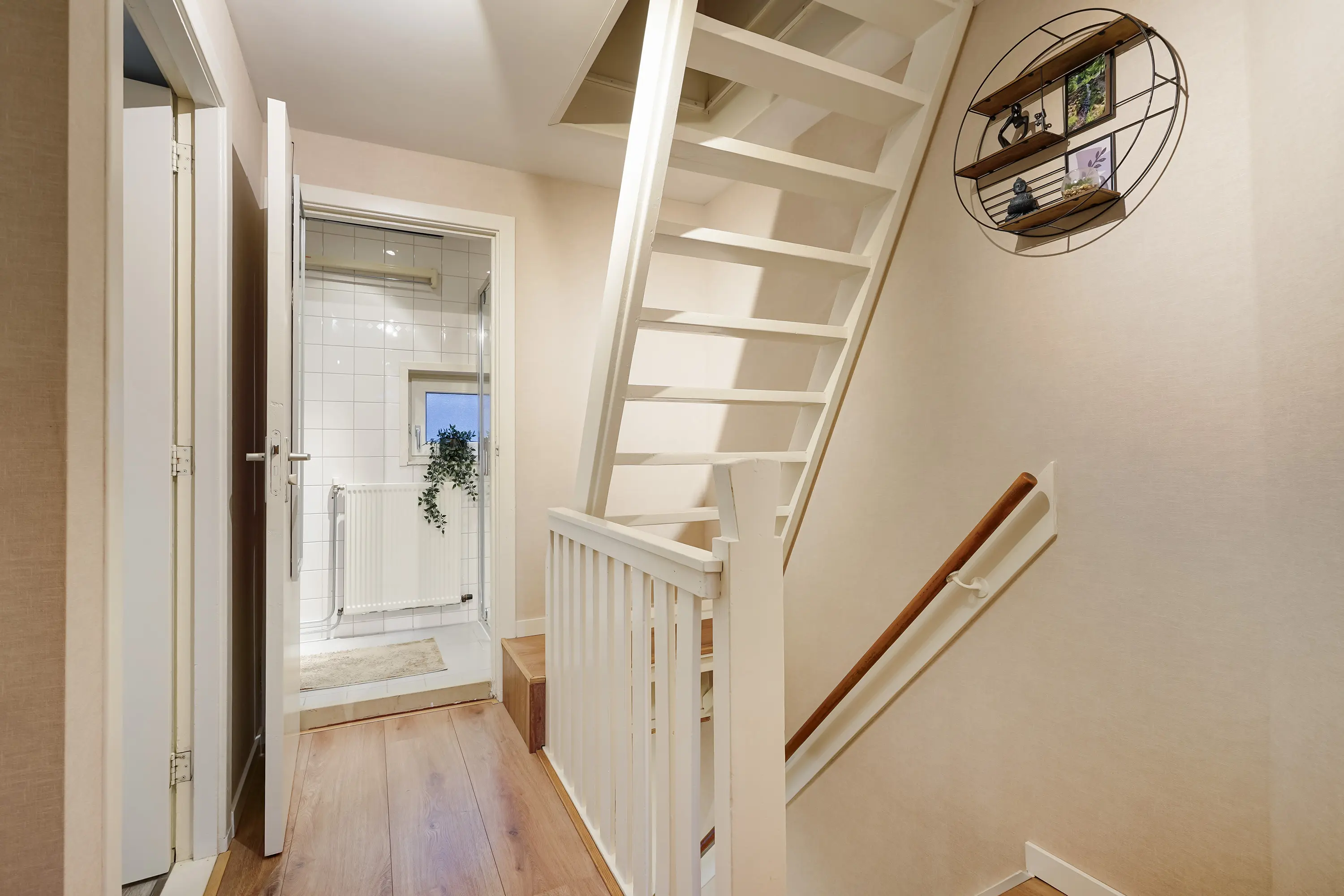 Via de overloop bereikt u de drie slaapkamers en de badkamer. De gehele verdieping is afgewerkt met een laminaat vloer, wat zorgt voor een warme en rustige uitstraling.