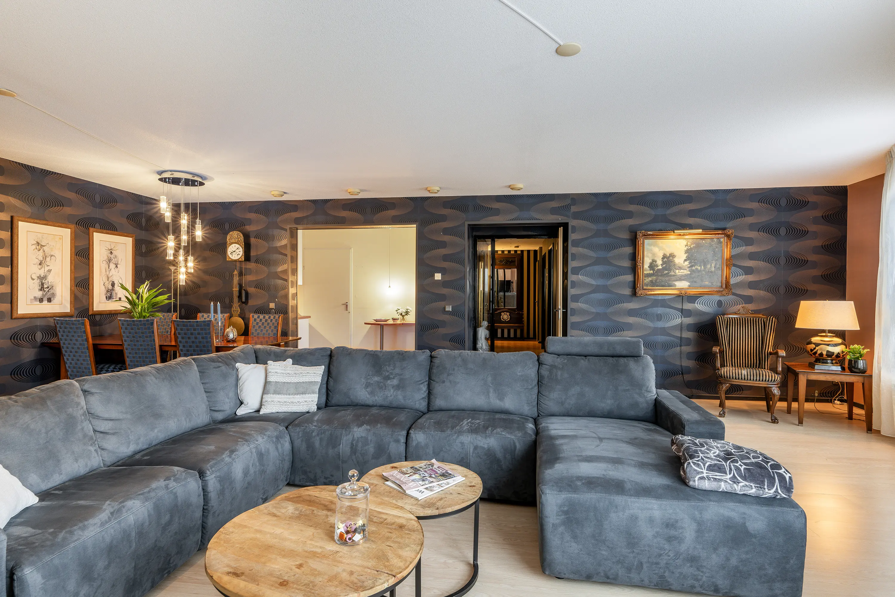De woonkamer vormt het echte hart van deze woning. Hij is royaal opgezet en beschikt over twee grote glazen puien die zorgen voor overvloedig daglicht. Daarnaast is er een verlengd gedeelte richting de loggia, waardoor u nóg meer glas en uitzicht heeft. De loggia biedt een prachtig vergezicht en is daarmee een heerlijke, rustige plek om te zitten en te ontspannen.
