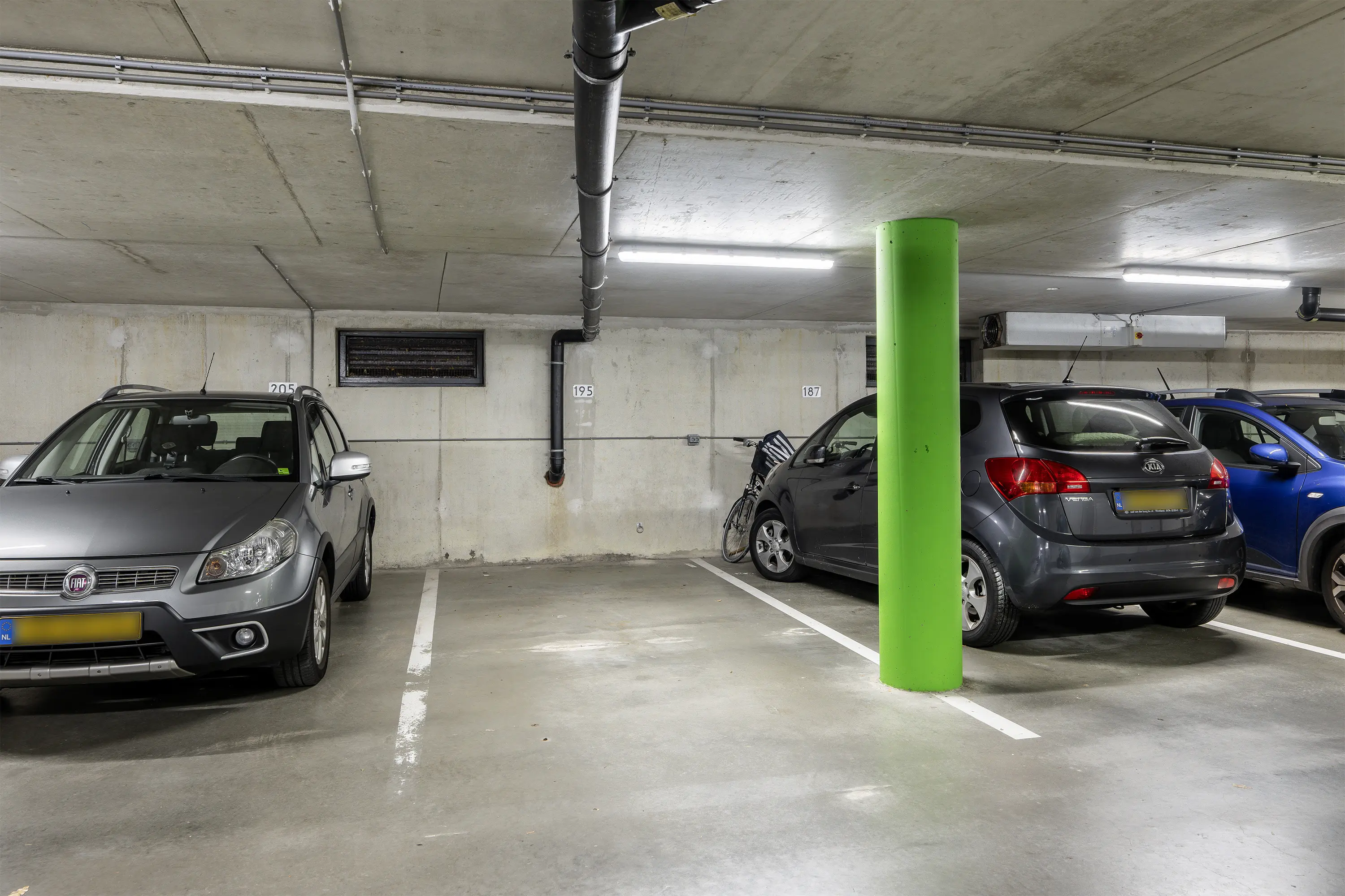 Extra handig is de privé parkeerplaats in de parkeergarage onder het gebouw. In de onderbouw bevindt zich eveneens de eigen (fietsen)berging.