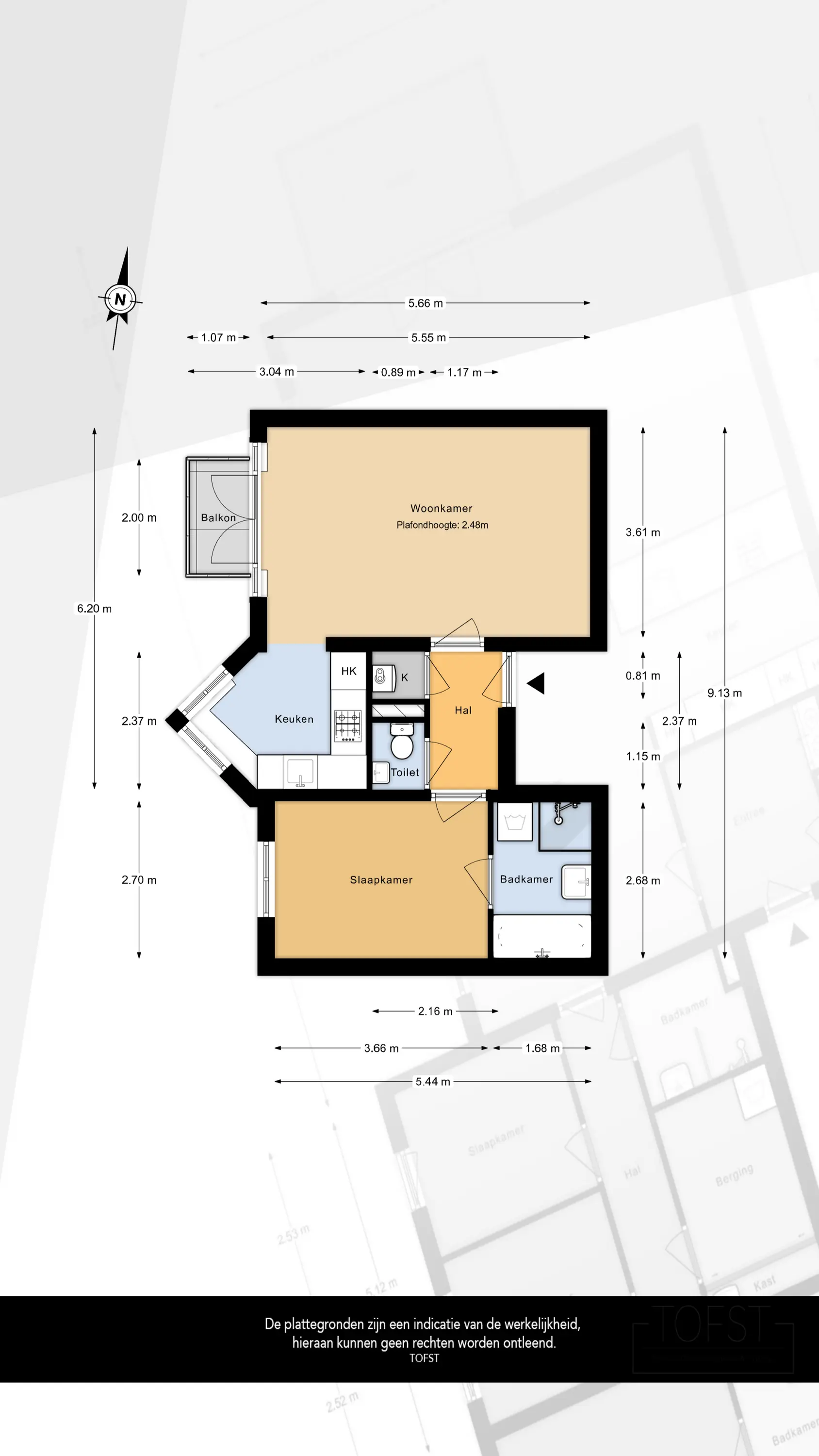 - Startersappartement van ca. 48 m²;