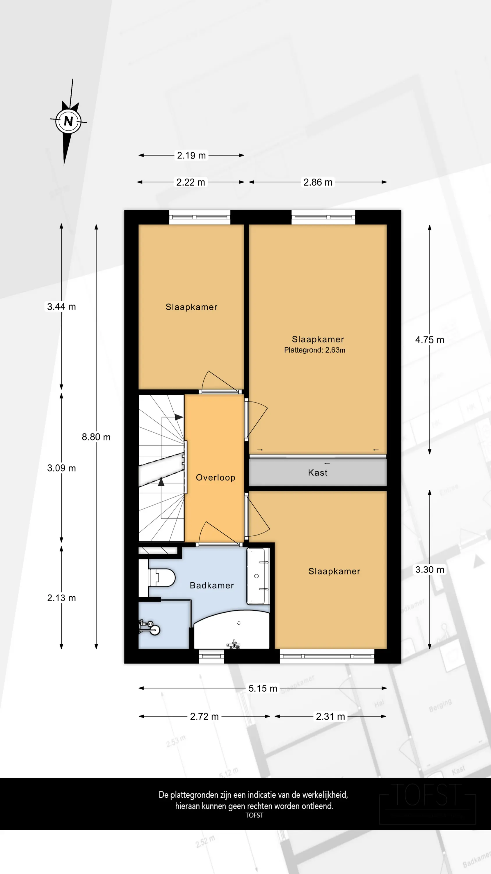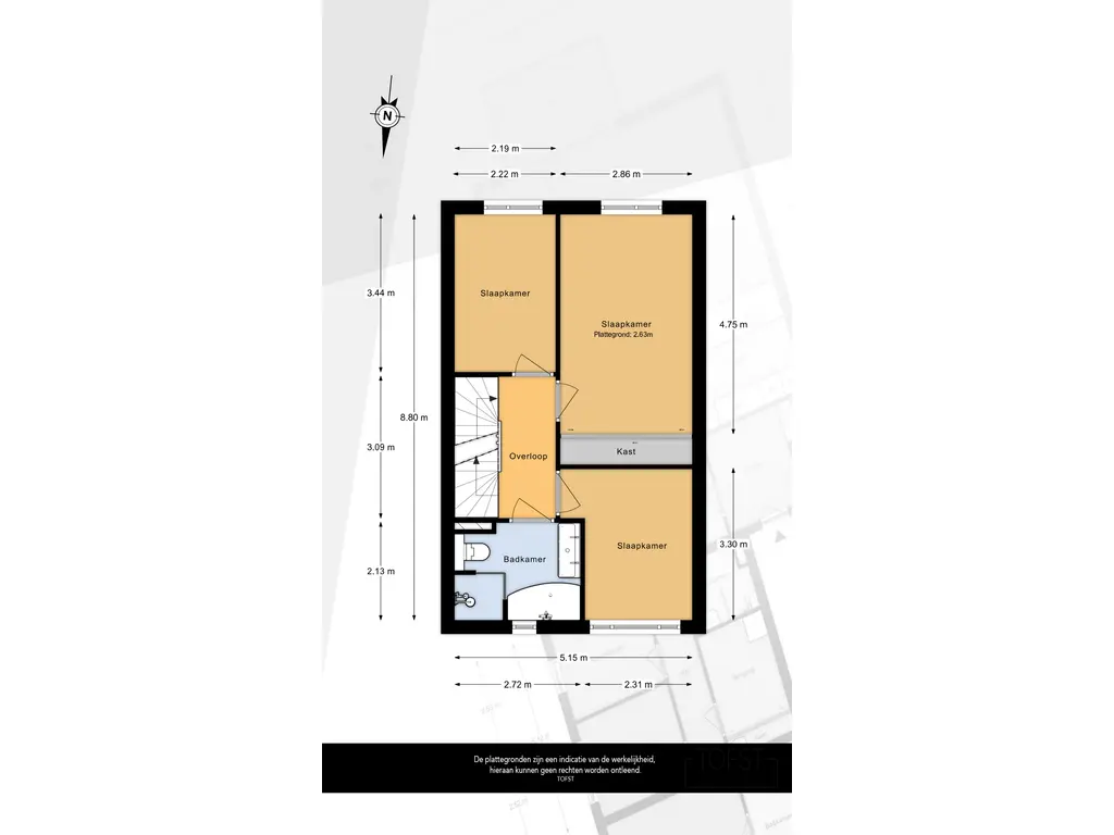- Hoofdslaapkamer aan de achterzijde met ingebouwde kastenwand;