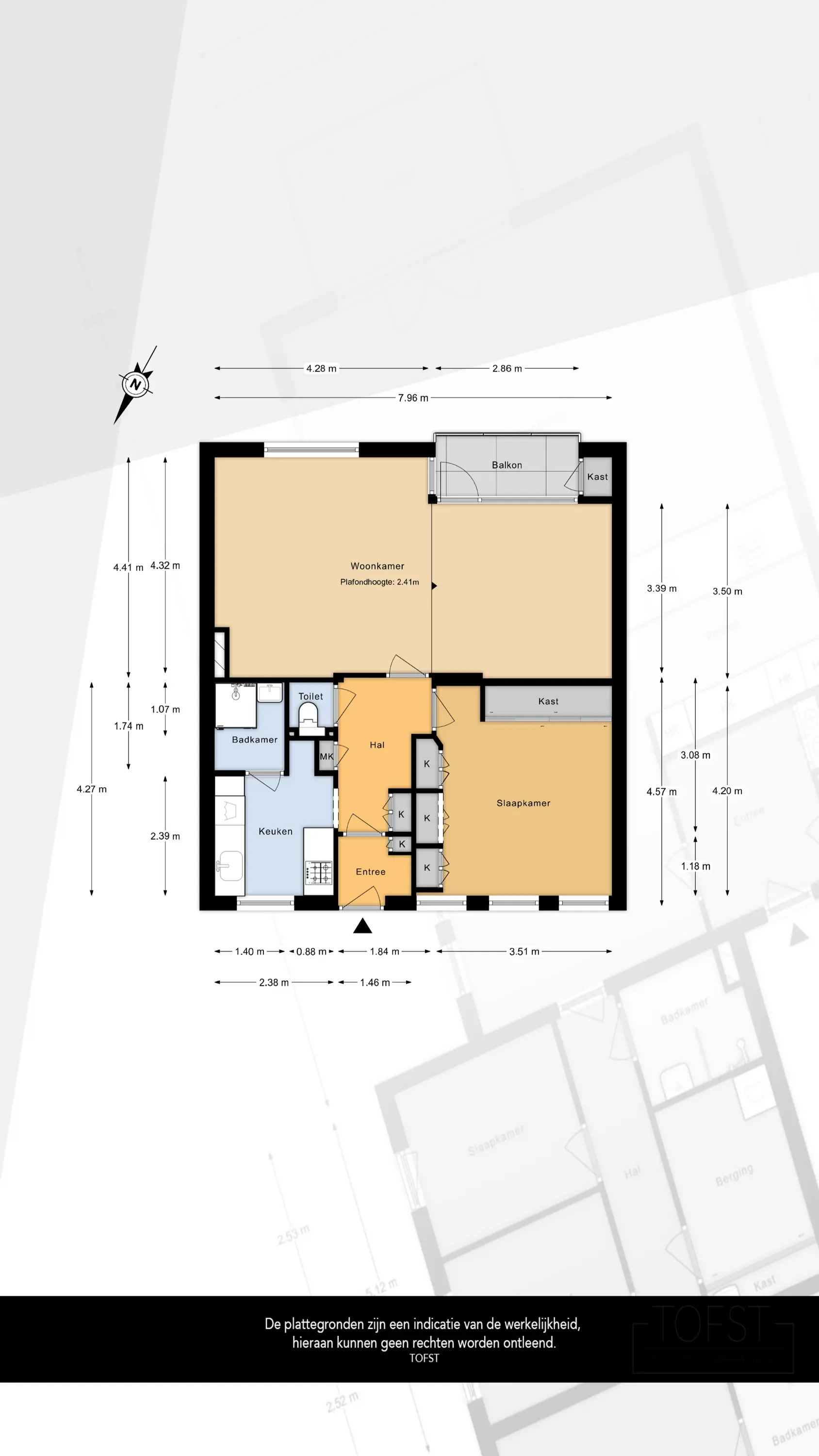 Via het gezamenlijke trappenhuis bereikt u het appartement op de eerste verdieping. U komt binnen in een tussenhal met plek voor een garderobe. Vanuit hier loopt u door naar de centrale hal/overloop, vanwaar alle vertrekken van het appartement bereikbaar zijn.