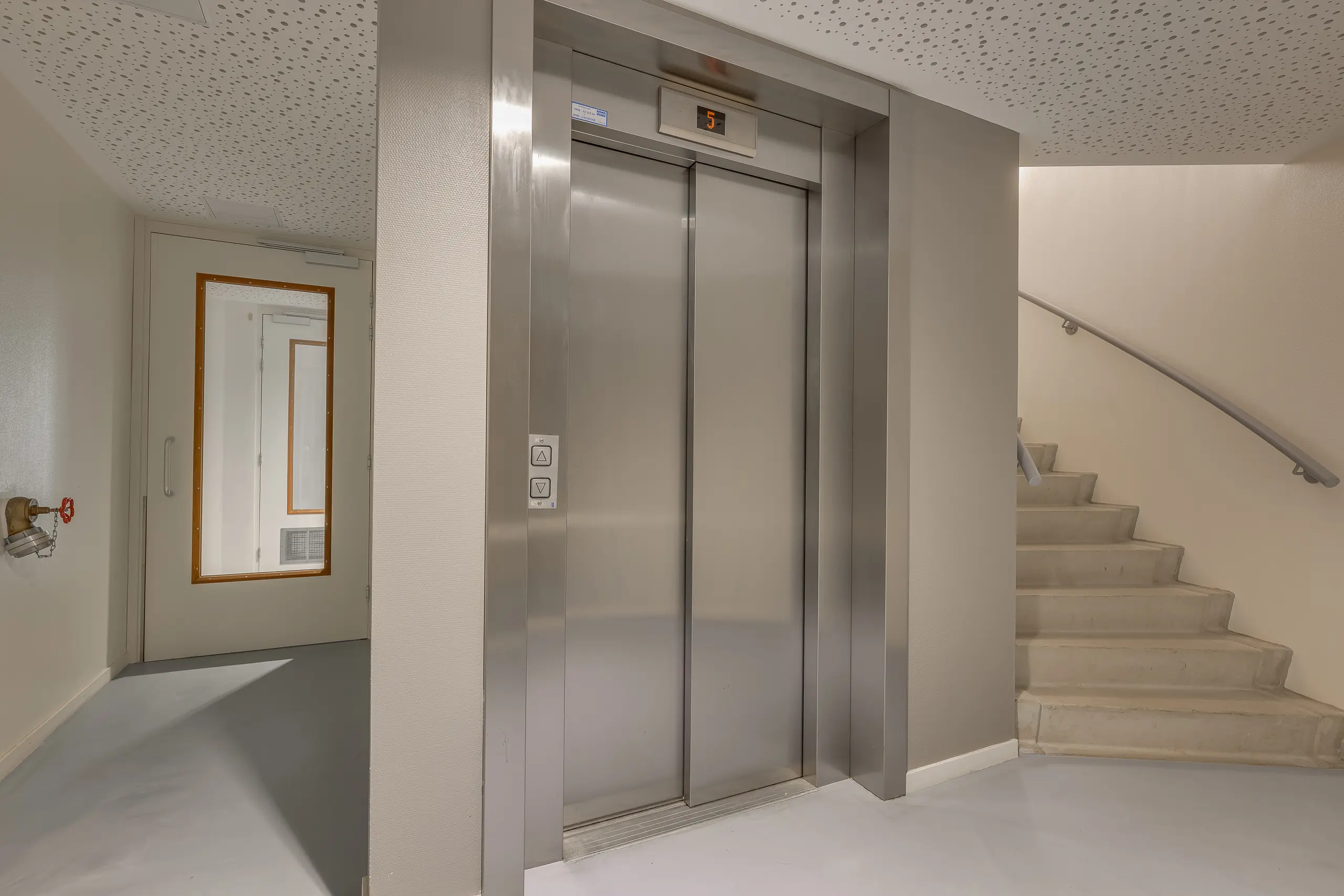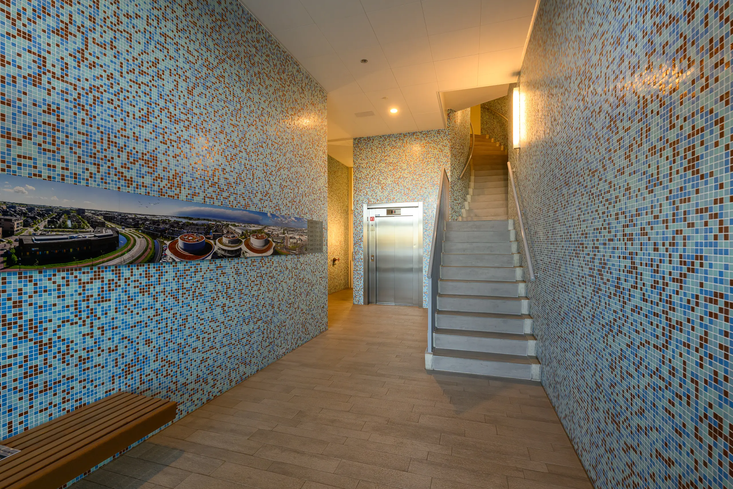 Afgesloten entree met bellentableau en brievenbussen. Via zowel de trap als met de lift zijn de diverse verdiepingen bereikbaar. Op de begane grond bevindt zich eveneens de toegangsdeur tot de inpandig gelegen bergingen.