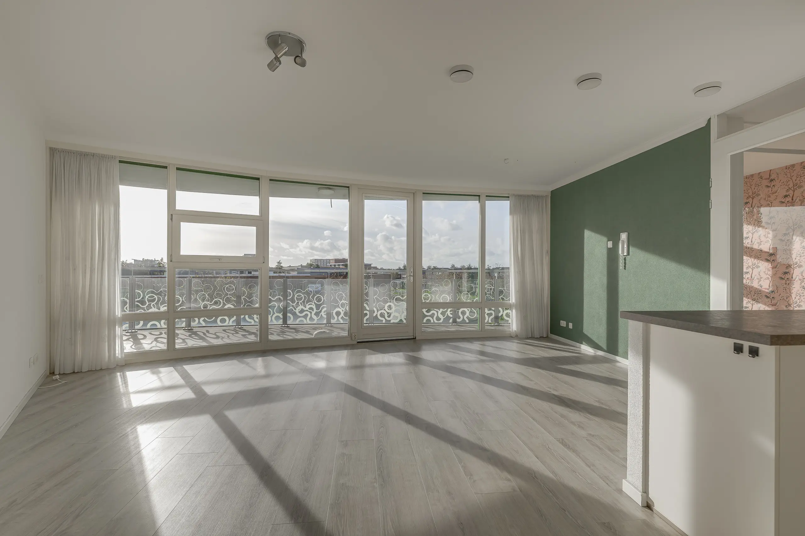 - Ruime woonkamer met grote raampartij over de volledige breedte van de woning;