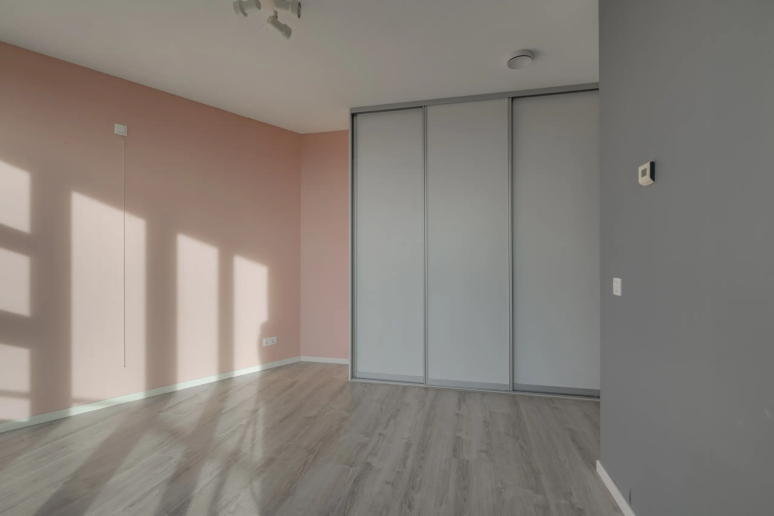 - Twee slaapkamers, waarvan één met ingebouwde kastenwand en toegang tot het terras;