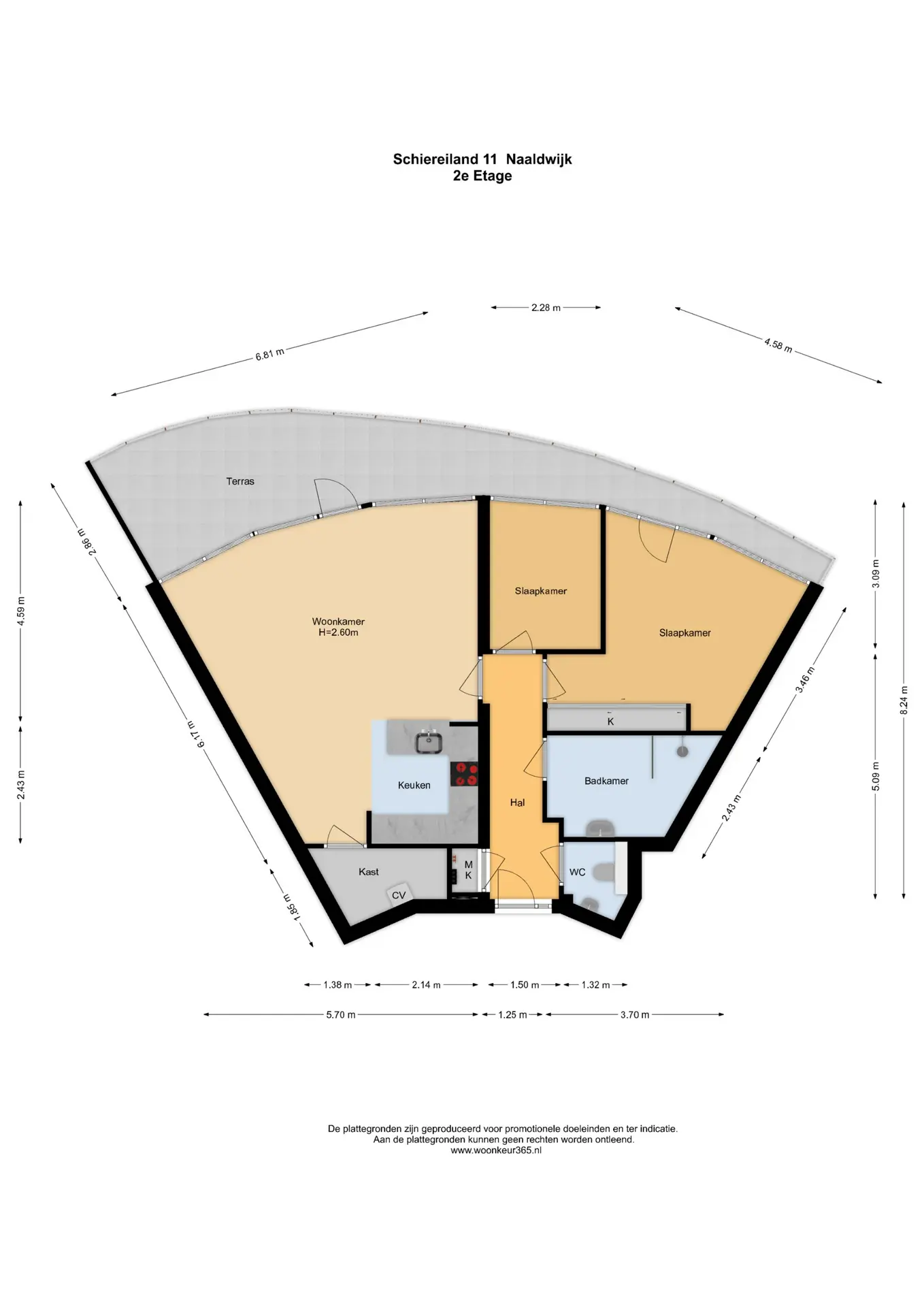 De woning beschikt over een lichte woonkamer met open keuken, twee slaapkamers, een nette badkamer, een separaat toilet en een praktische bergkast. Op de begane grond vindt u bovendien een eigen berging van circa 3 m².