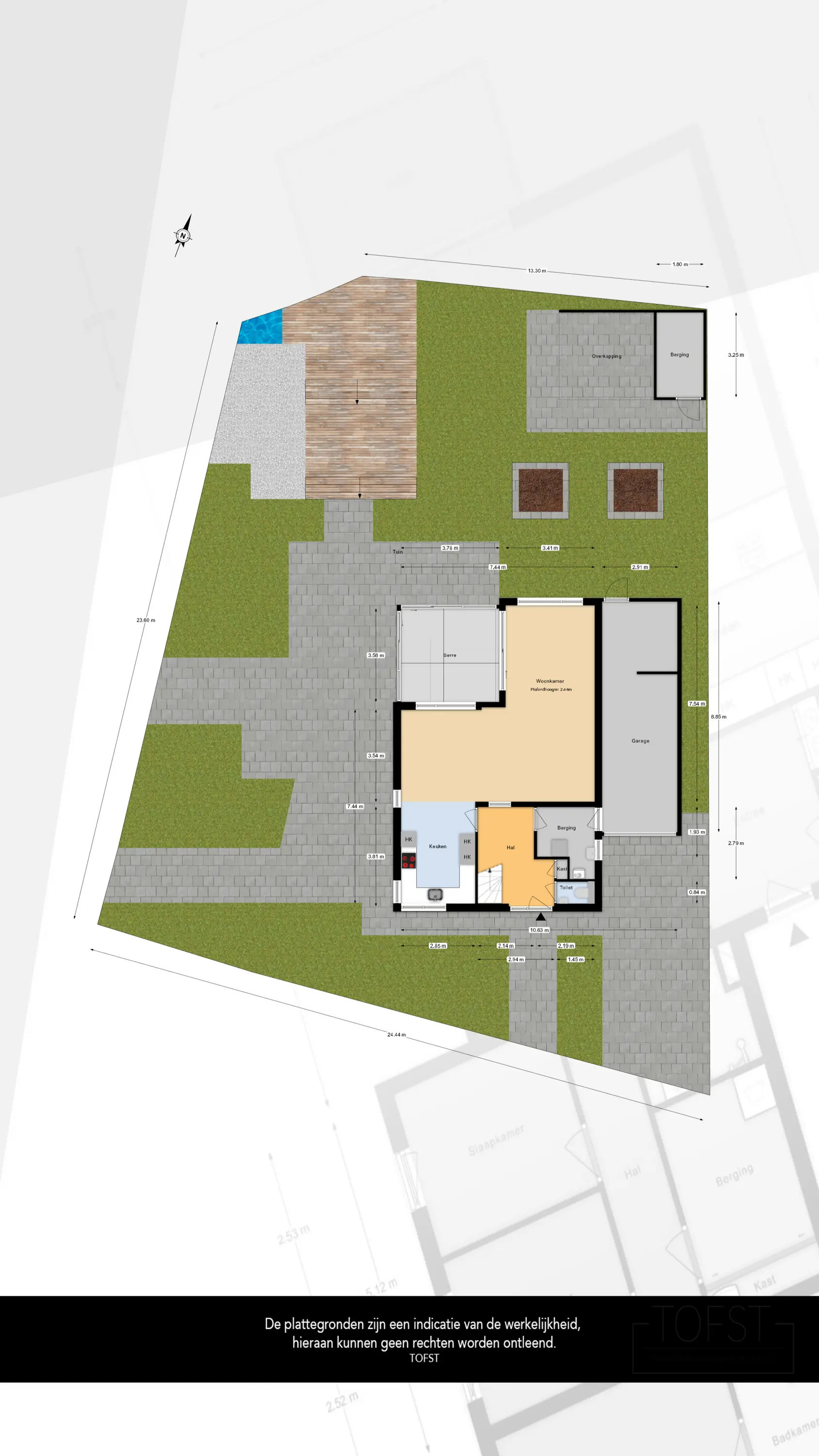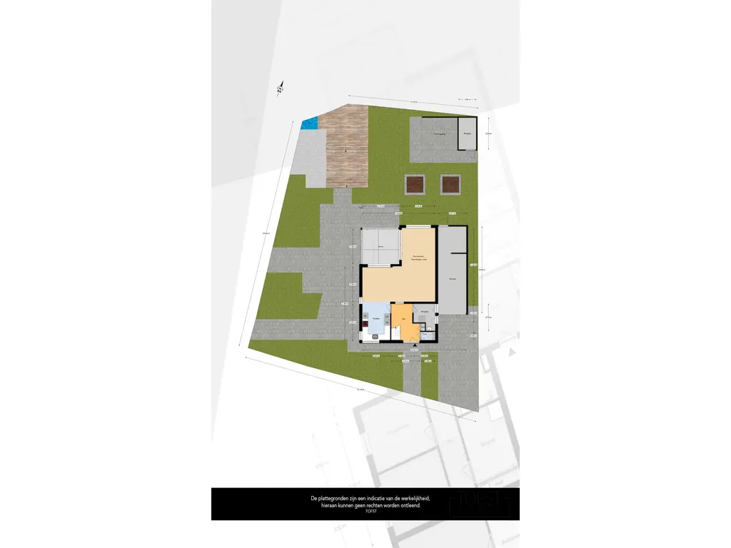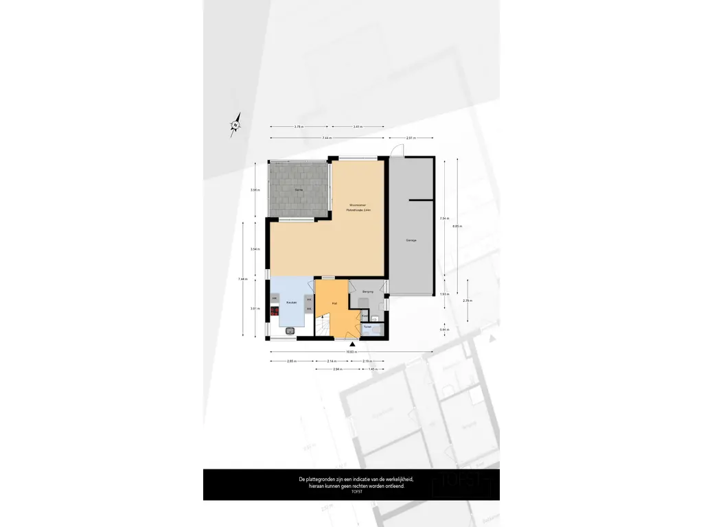- Aangebouwde stenen garage met roldeur;