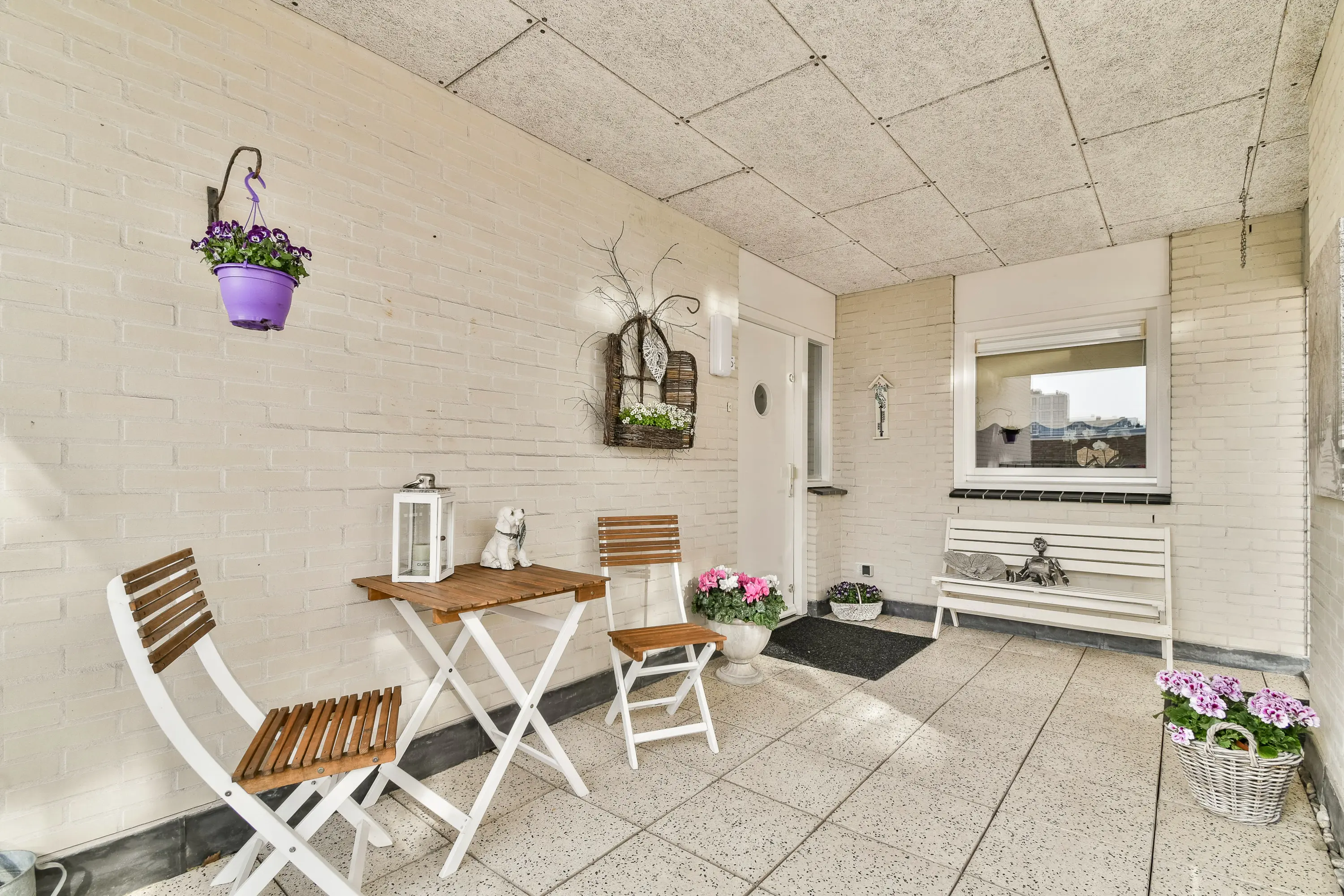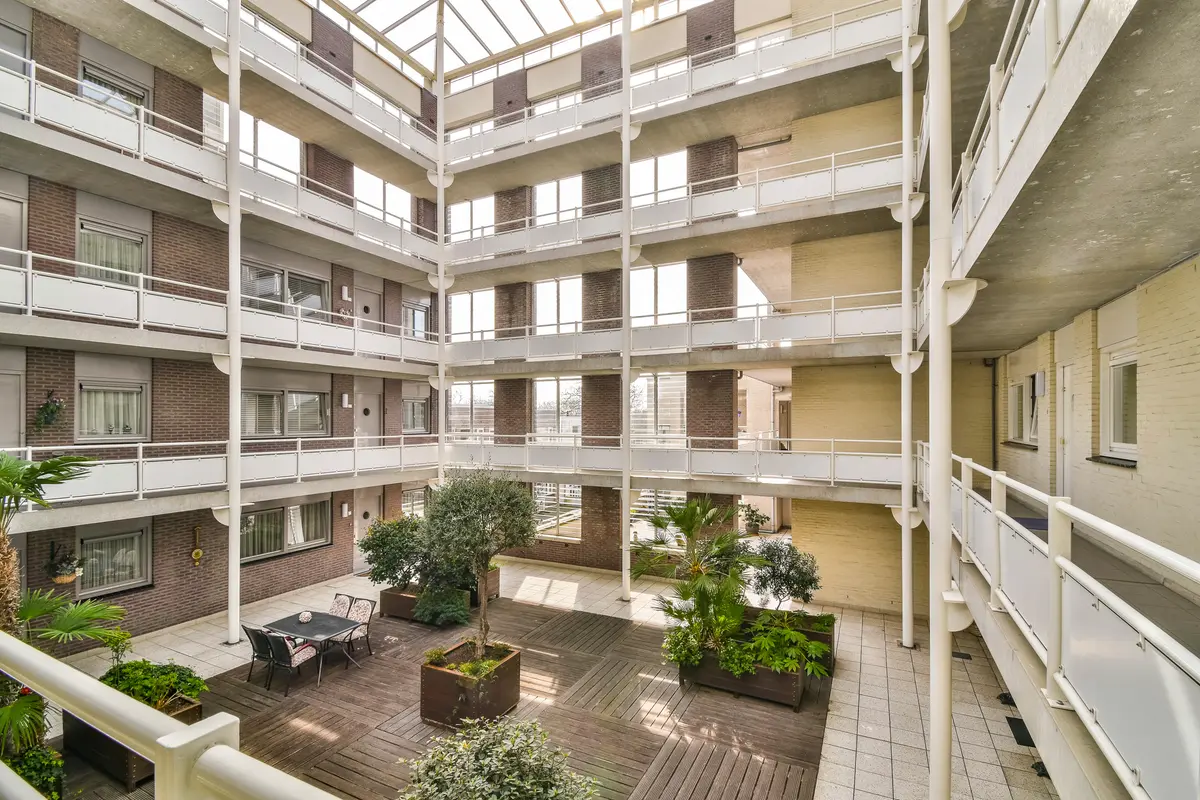 Aanvullend is het goed om te vermelden dat het terras aan de voorzijde van het complex formeel geen onderdeel uitmaakt van het privé-eigendom, maar behoort tot de gemeenschappelijke ruimtes van de VvE en onder andere dient als uitkomst voor de brandtrap. Hierdoor beschikt het appartement officieel over één privébalkon.