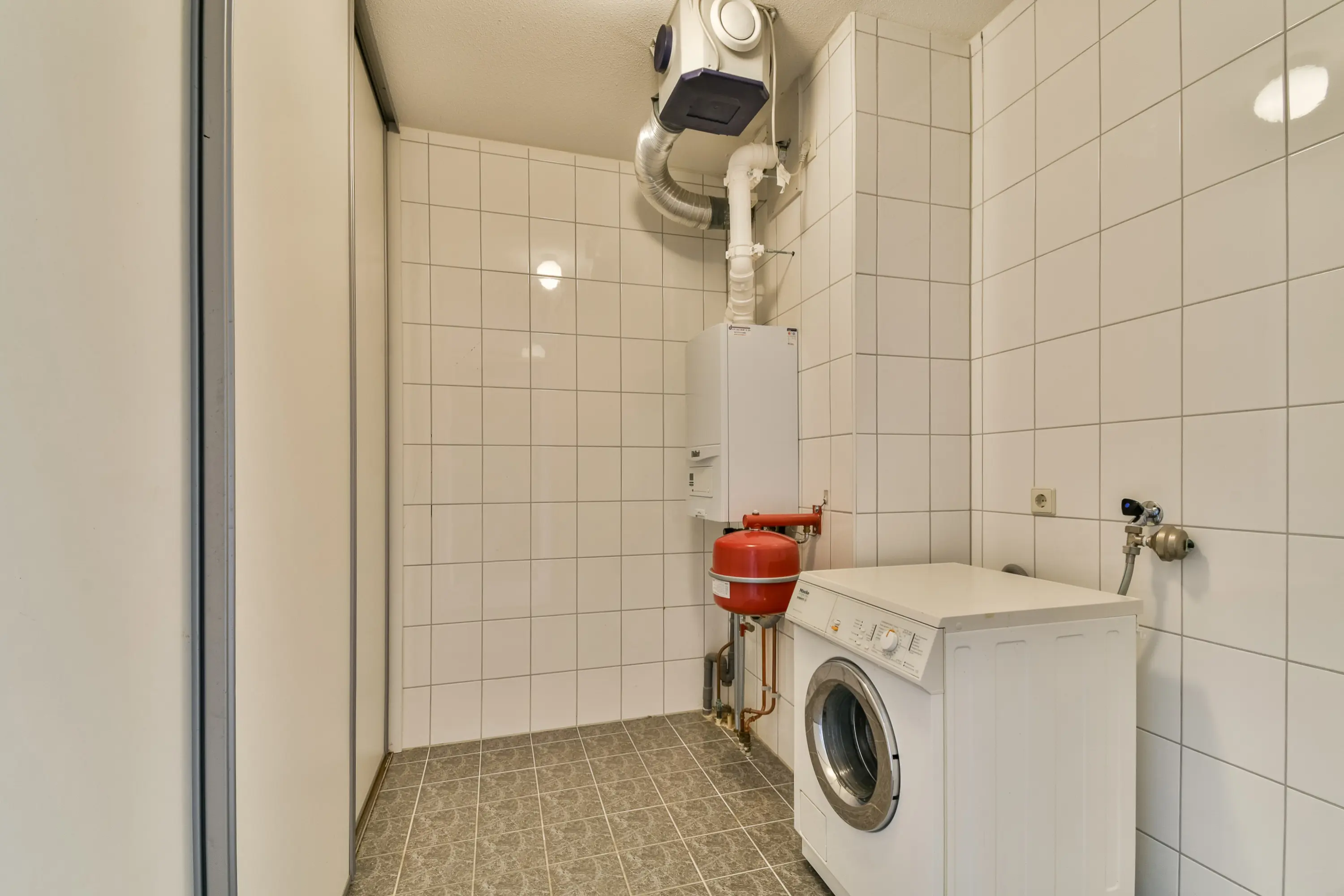 Tot slot beschikt het appartement over een praktische aparte ruimte. Hier bevinden zich de opstelplaatsen voor de wasmachine en-/of droger, evenals de CV-ketel. Daarnaast is deze ruimte voorzien van handige inbouwkasten, waardoor u beschikt over verrassend veel extra bergruimte.