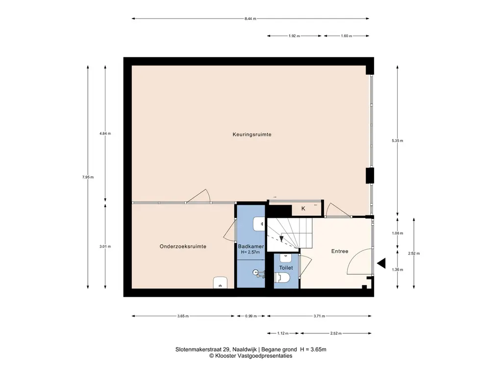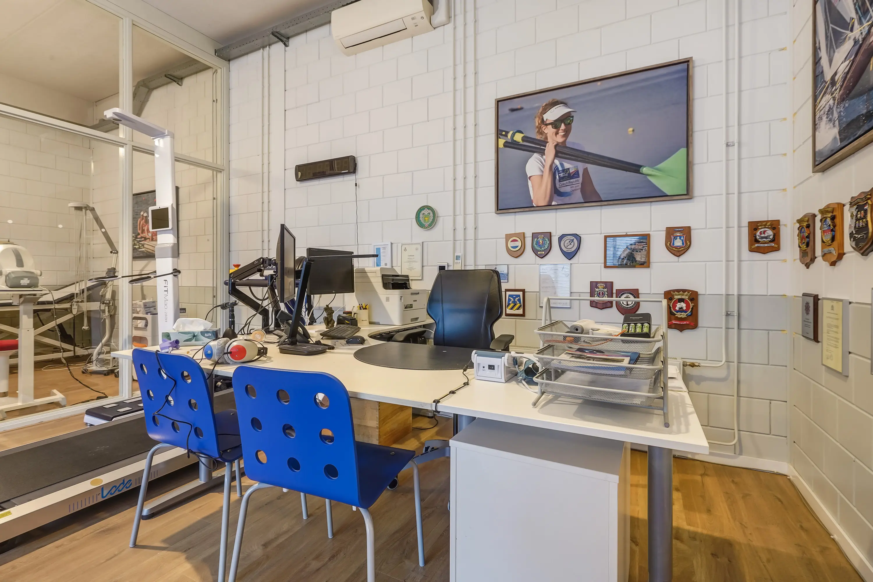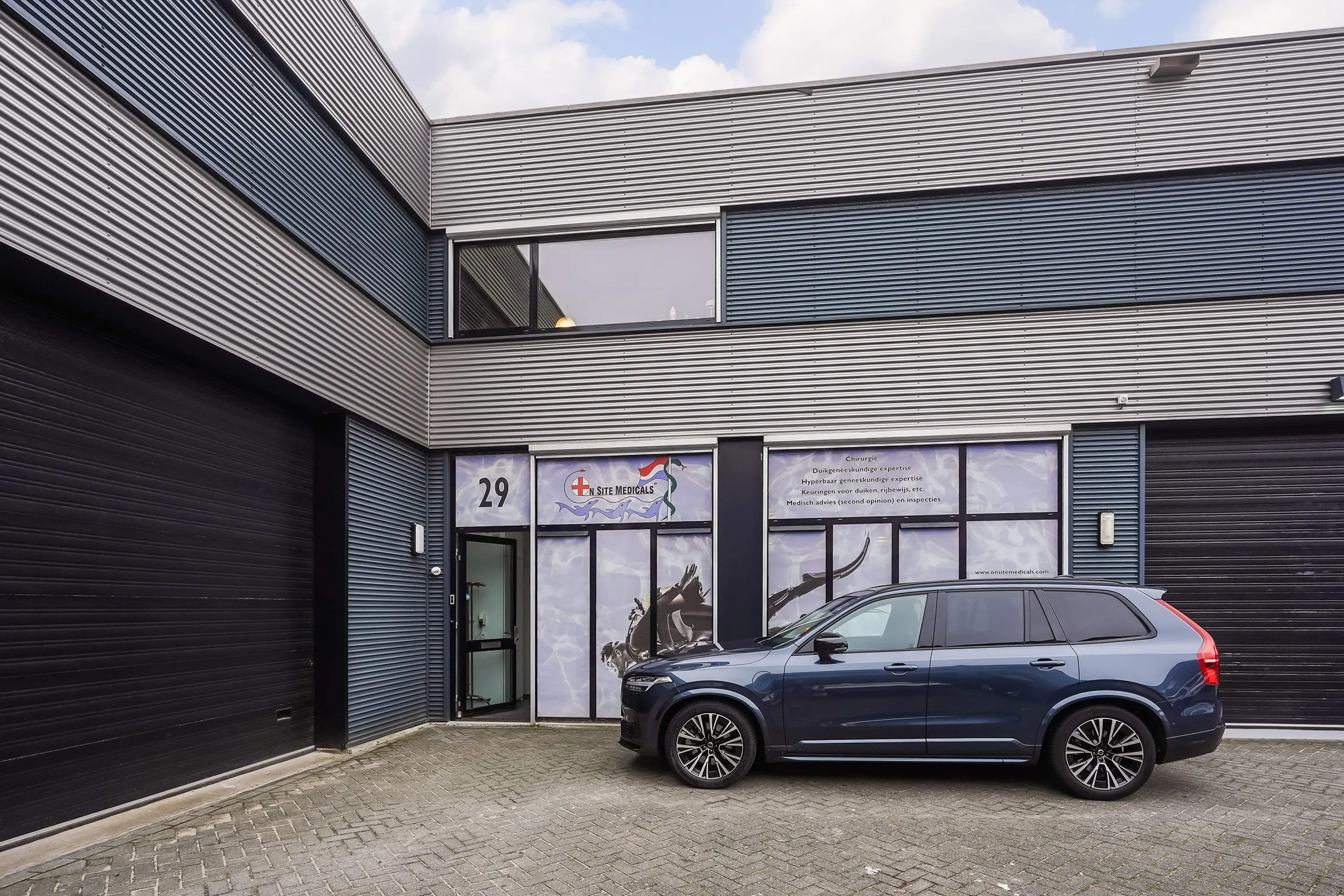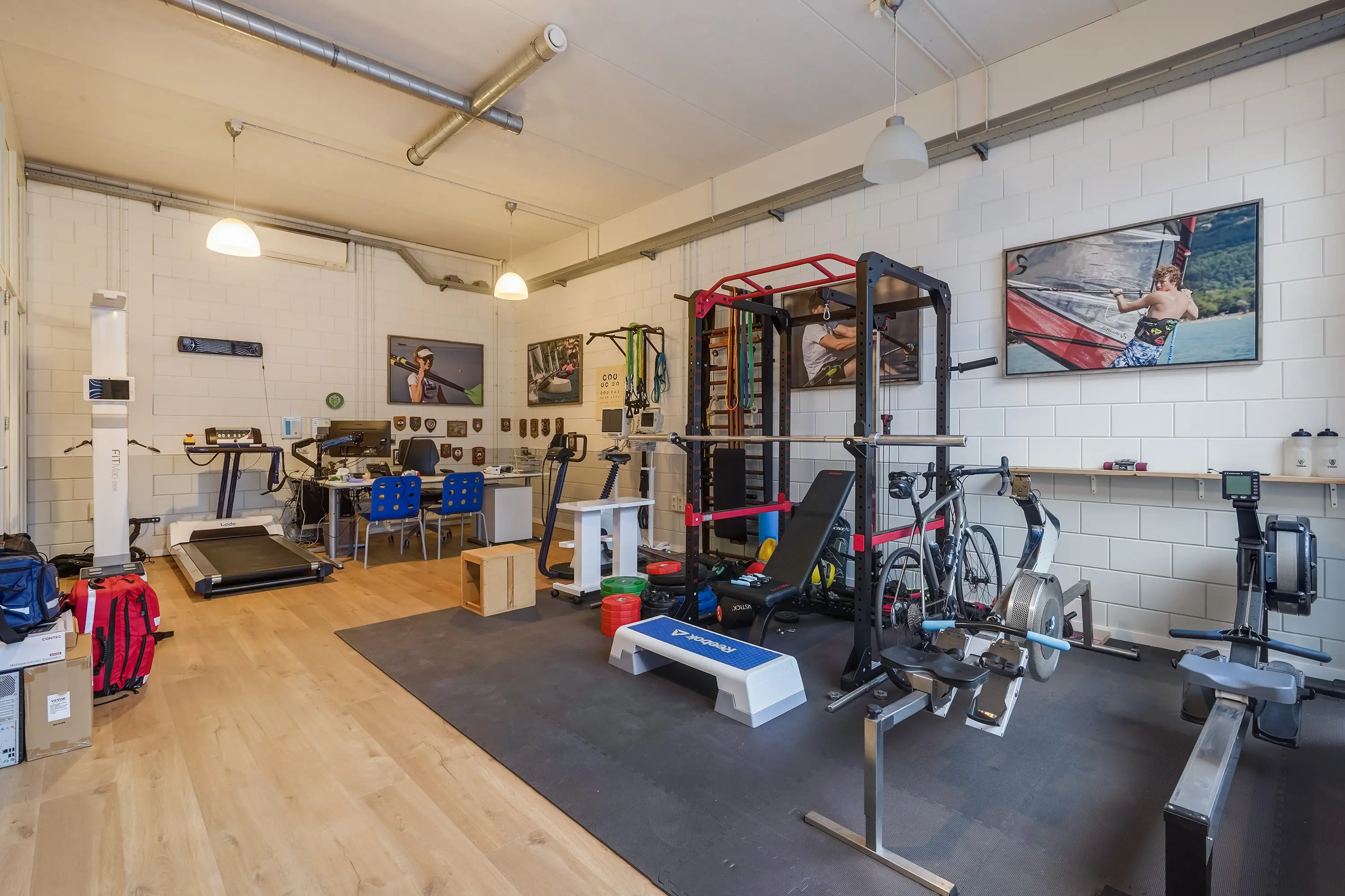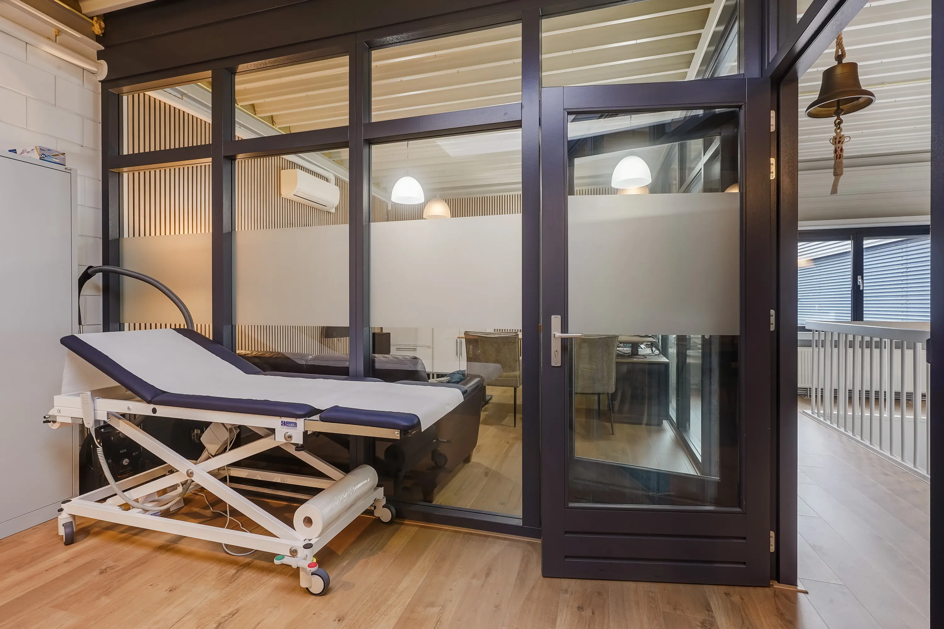 Open ruimte, thans ingericht als keuringsruimte. Achterin een onderzoeksruimte met wastafel van ca. 11 m2 met aangrenzende ruimte, geschikt als omkleedruimte, waar zich een douche en wastafel bevinden. Zowel de open ruimte als onderzoeksruimte zijn voorzien van airconditioning.