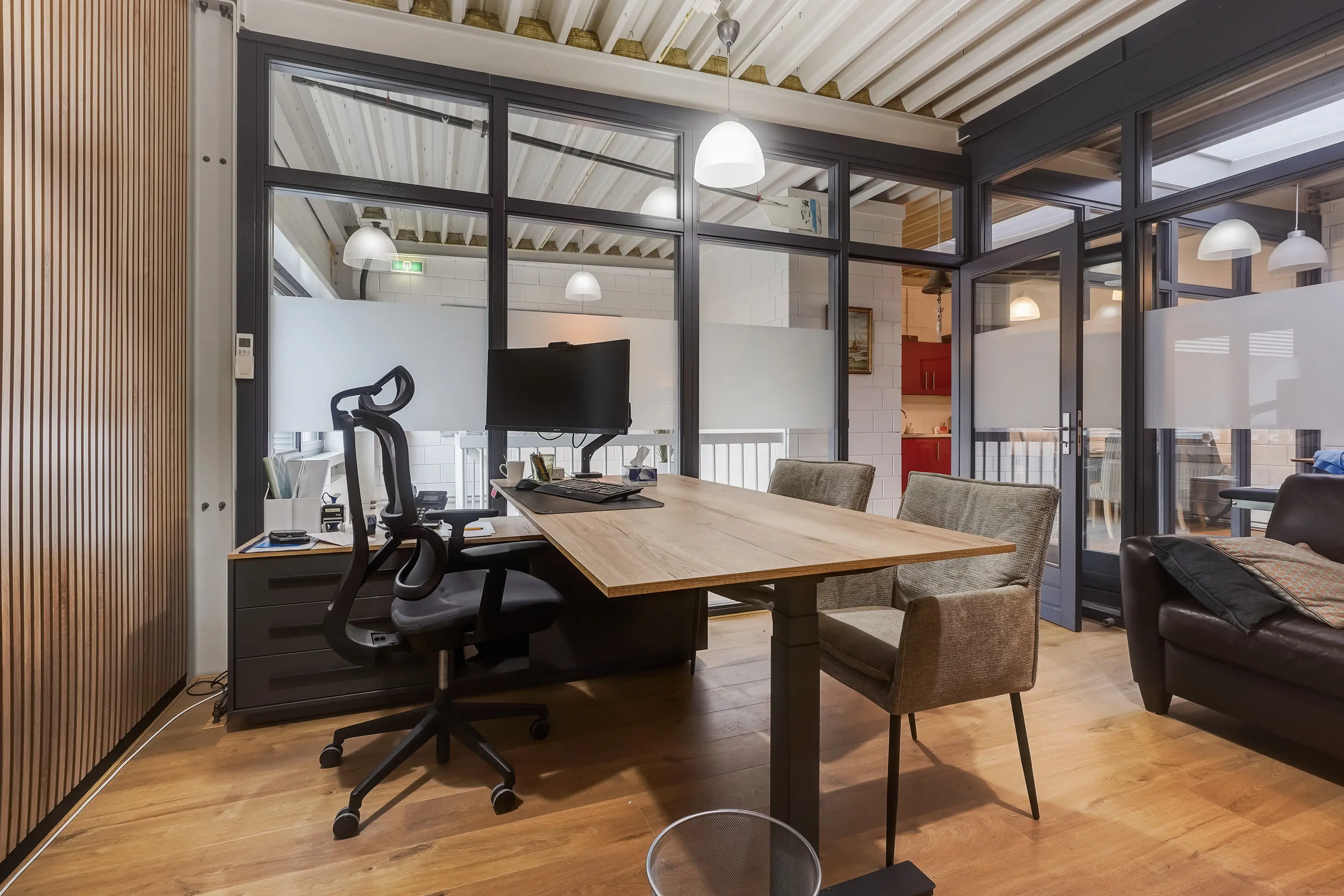 - Douche in kantoorruimte op de begane grond;