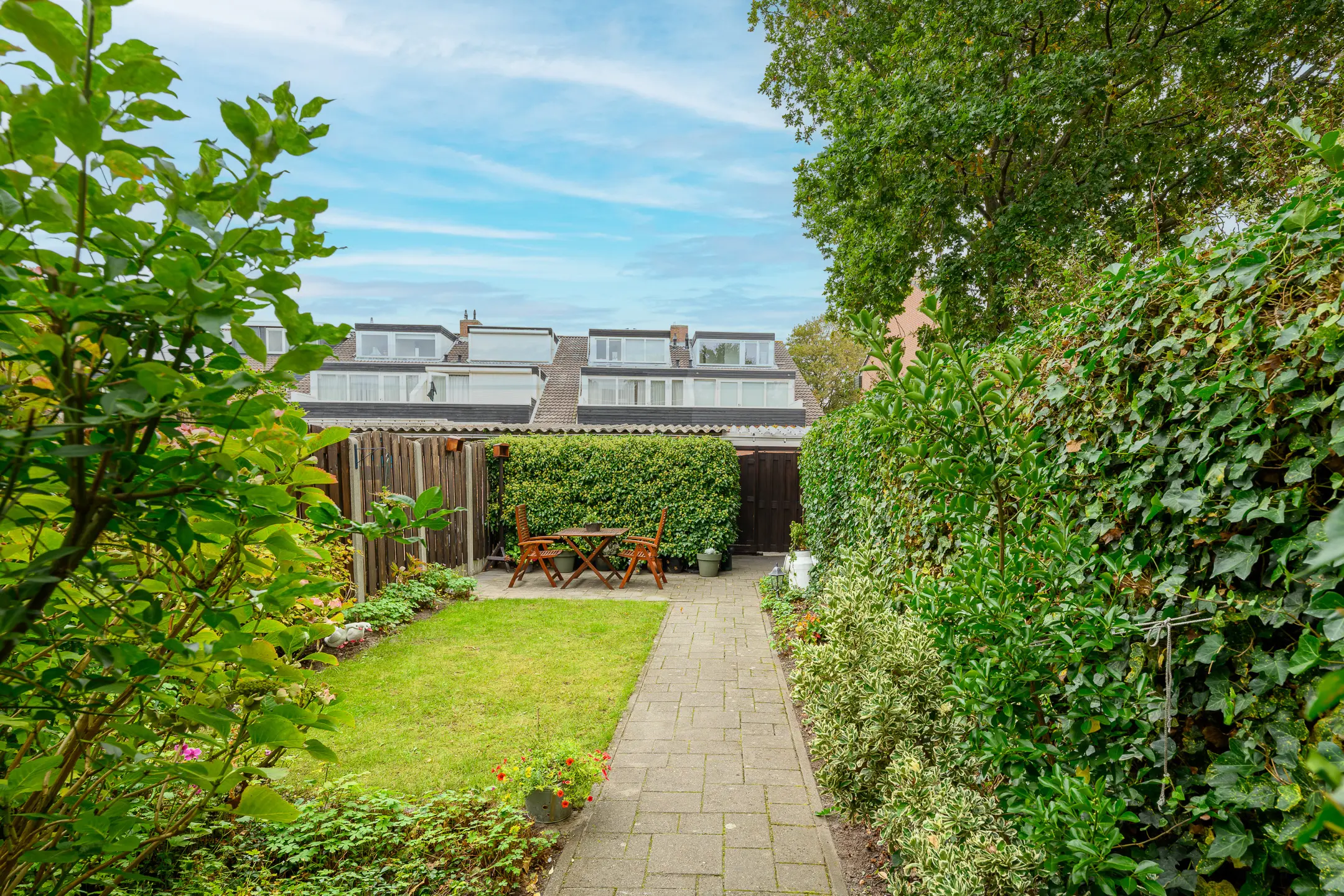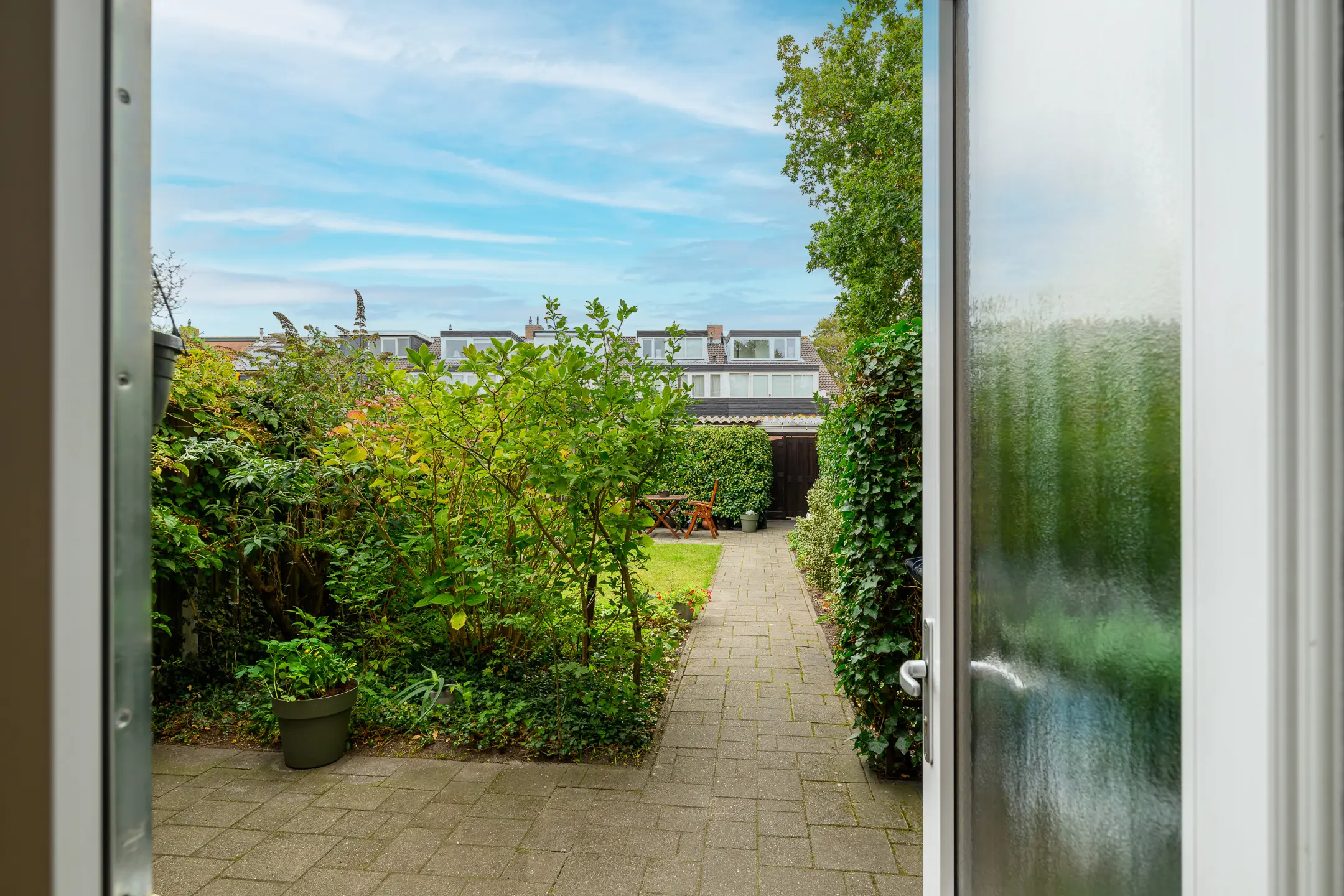 De achtertuin is gesitueerd op het oosten, waardoor u hier heerlijk de ochtendzon heeft. Dankzij een diepte van ca. 17 meter heeft u de hele dag de zon in de tuin, ideaal voor ontspanning, tuinieren of buiten eten.