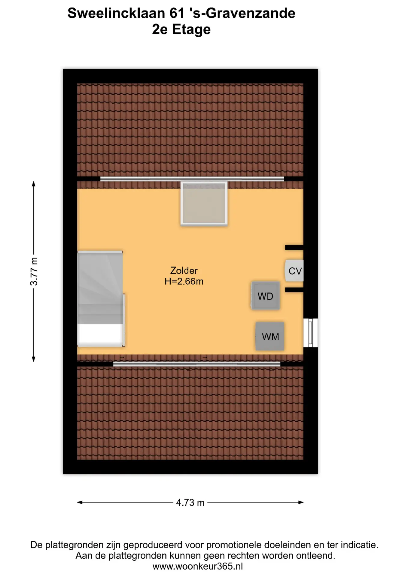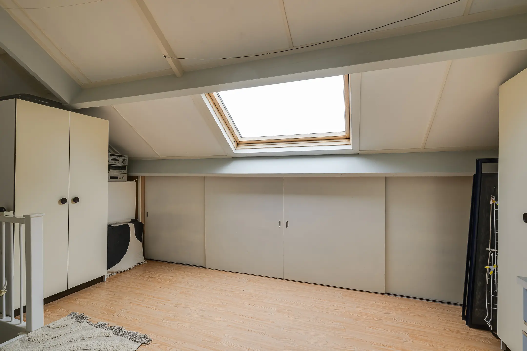De zolder betreft een open ruimte met Velux dakraam en vinyl vloer en biedt volop mogelijkheden. Hier kan bijvoorbeeld eenvoudig een vierde (slaap-)kamer, werkruimte of hobbykamer worden gerealiseerd.