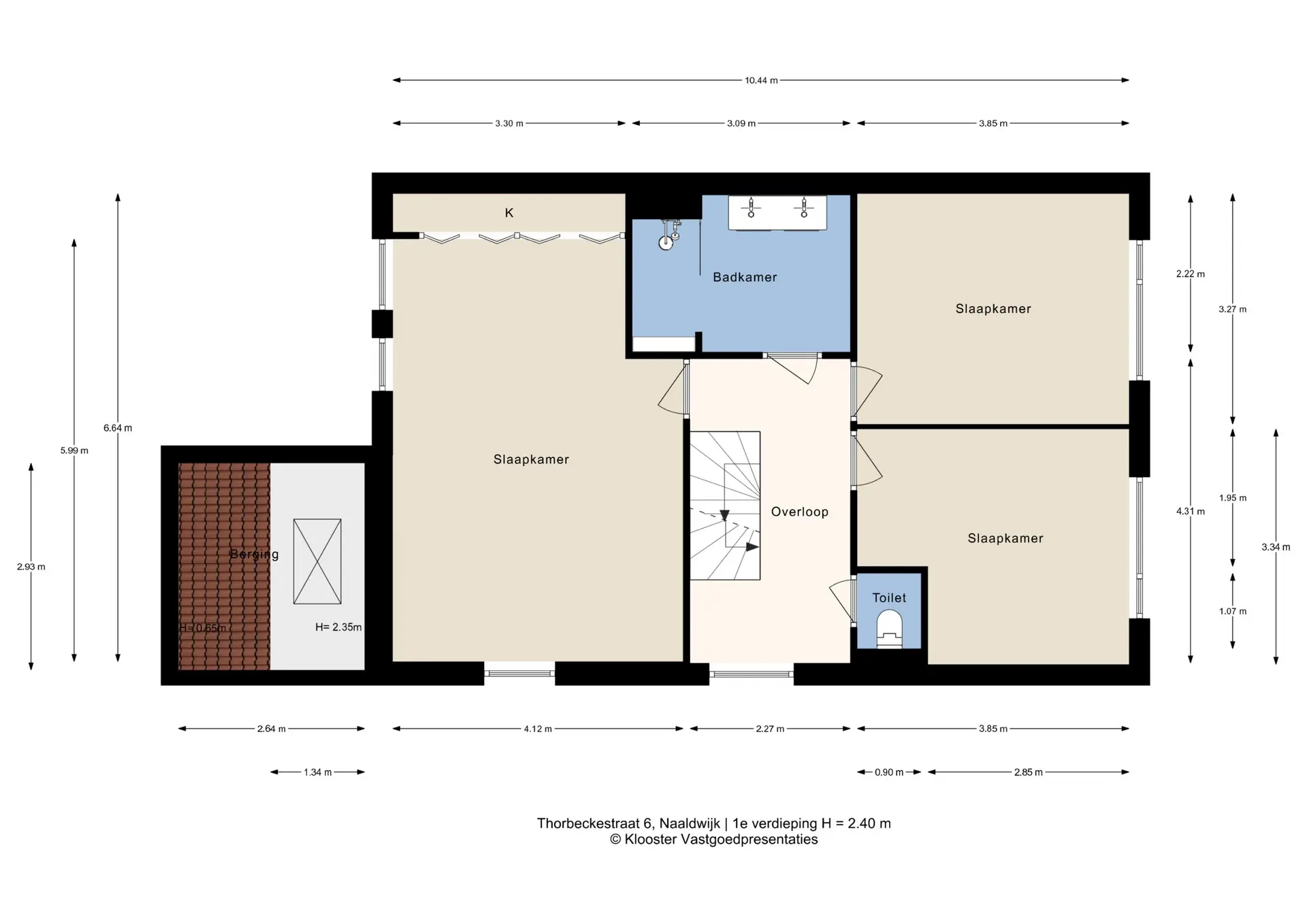 Overloop met toegang tot 3 goed bemeten slaapkamers en inpandige badkamer.