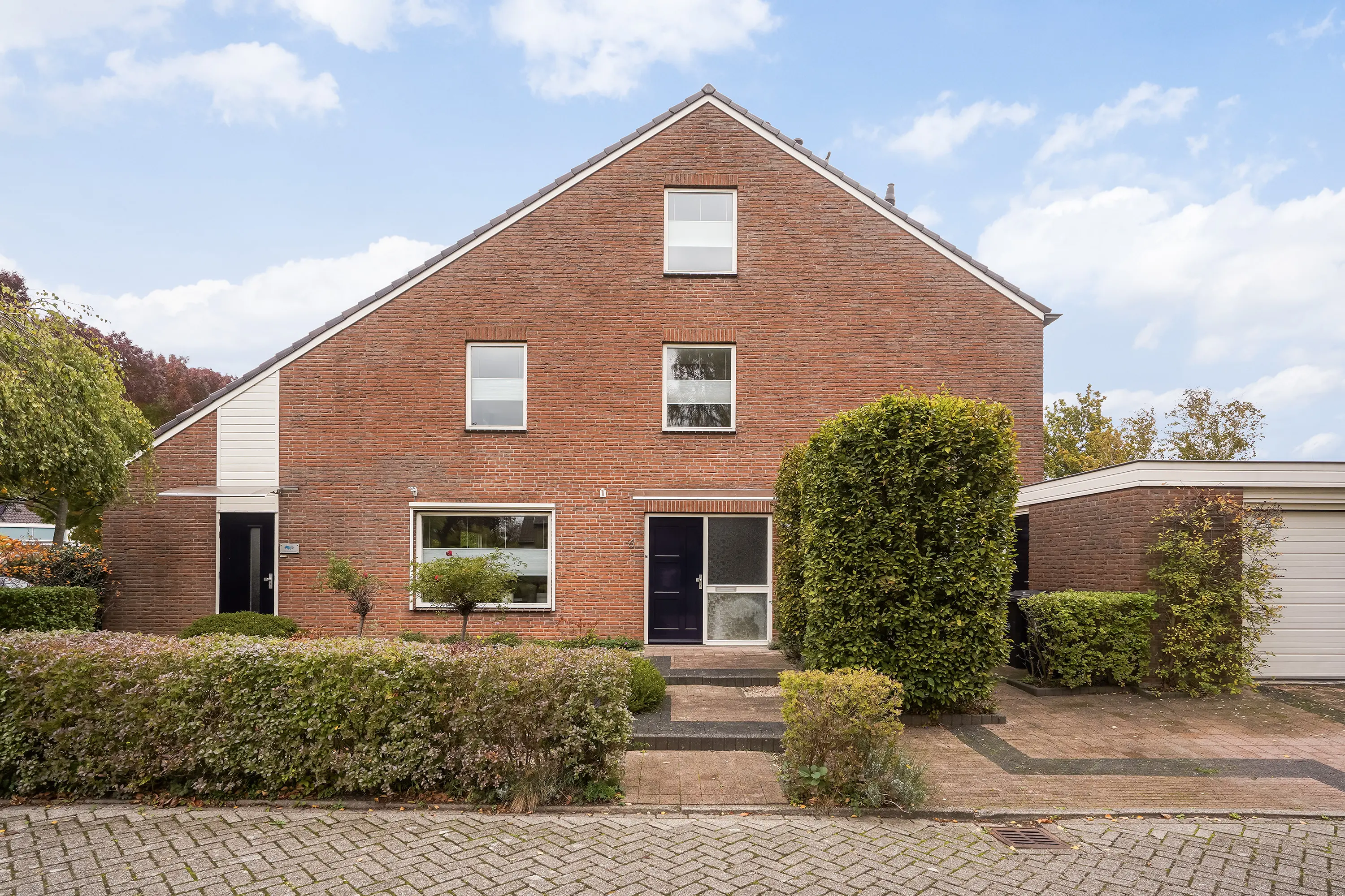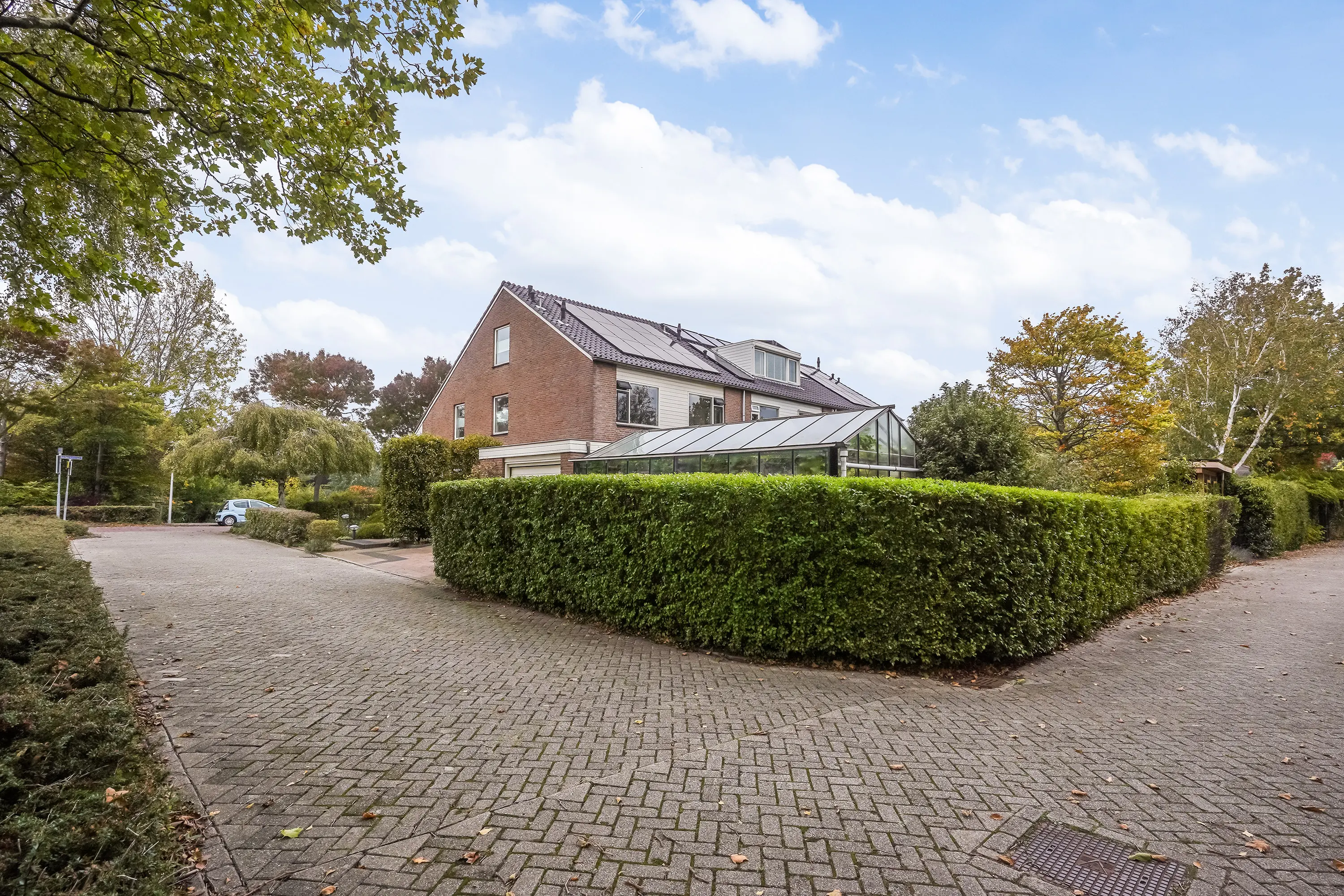 Voor-, zij- en achtertuin omringd door een groene heg, waardoor weinig inkijk en veel privacy. Entree aan de zijzijde van de woning naar enerzijds de kantoorruimte in de aanbouw en anderzijds de hal centraal in de woning.