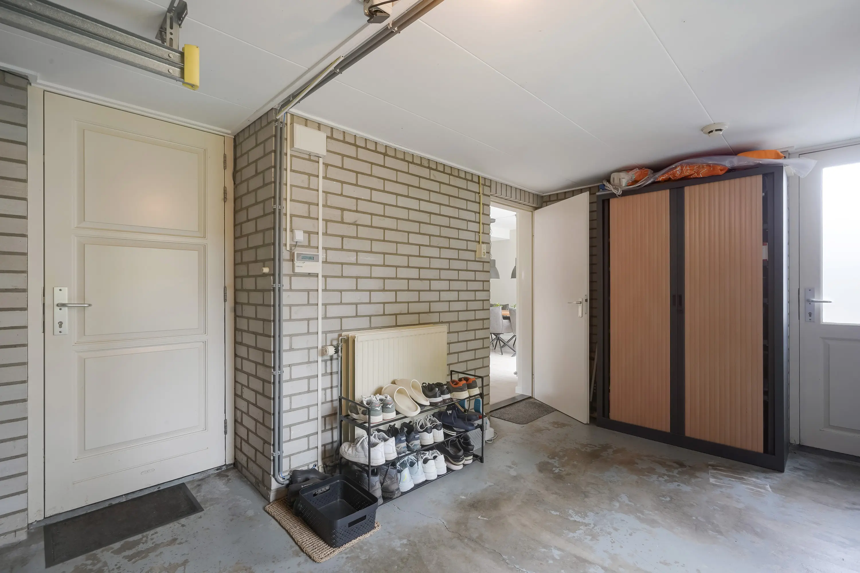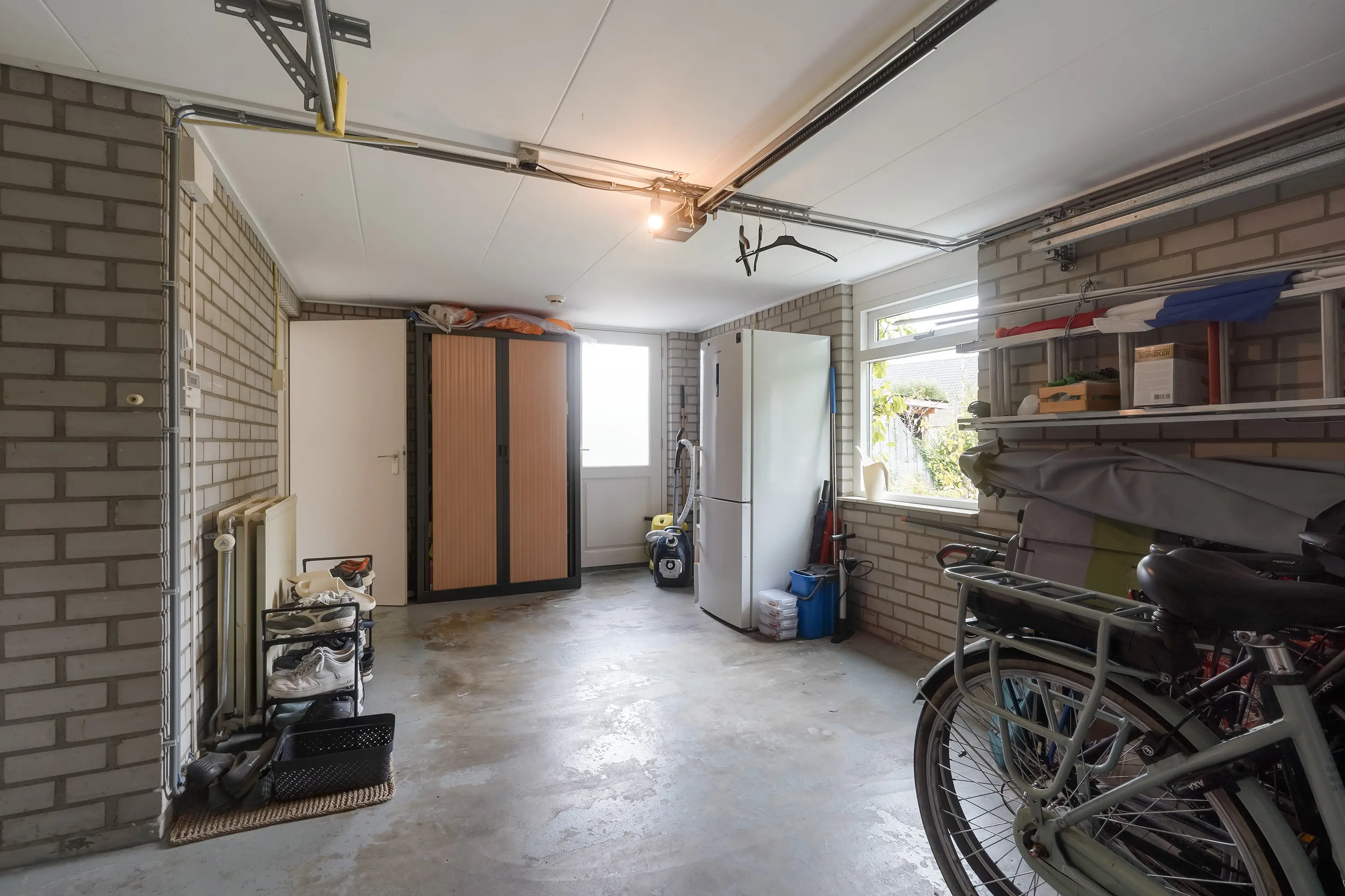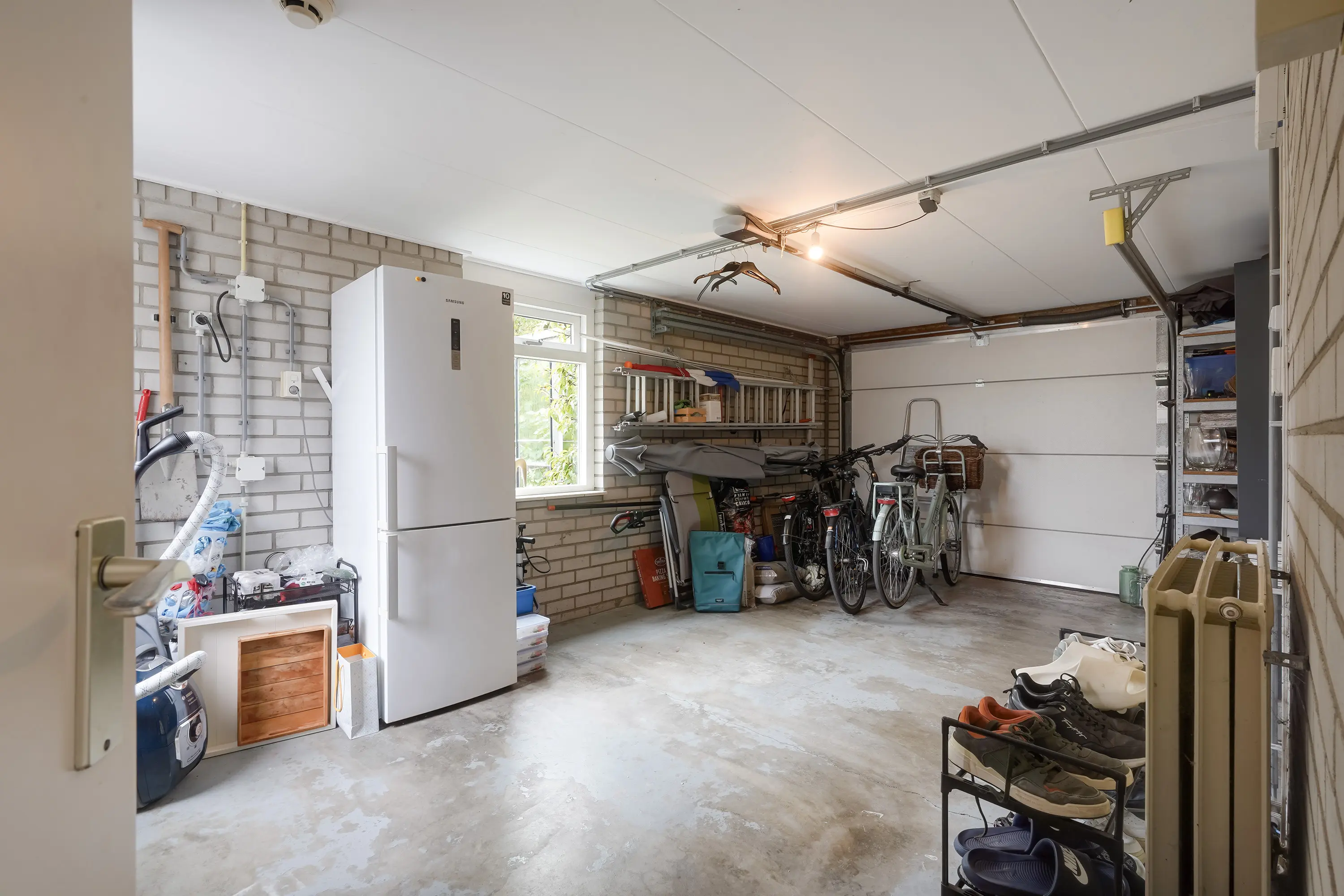 Vanuit de keuken, tuin en via de voorzijde is de aangebouwd, stenen garage toegankelijk. Niet alleen is deze ruimte ideaal voor uw fietsen en tuingereedschap, de garage is groot genoeg voor mogelijk uw auto.