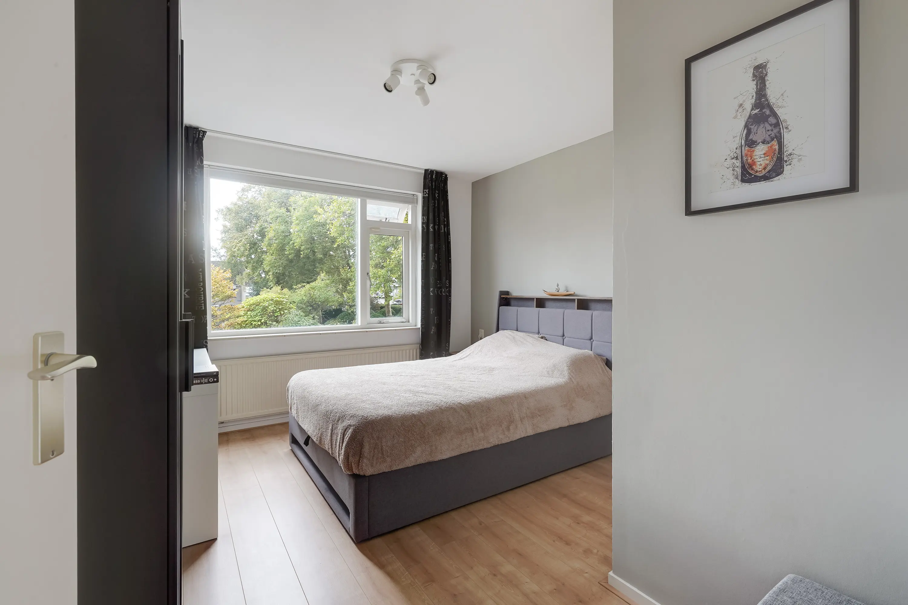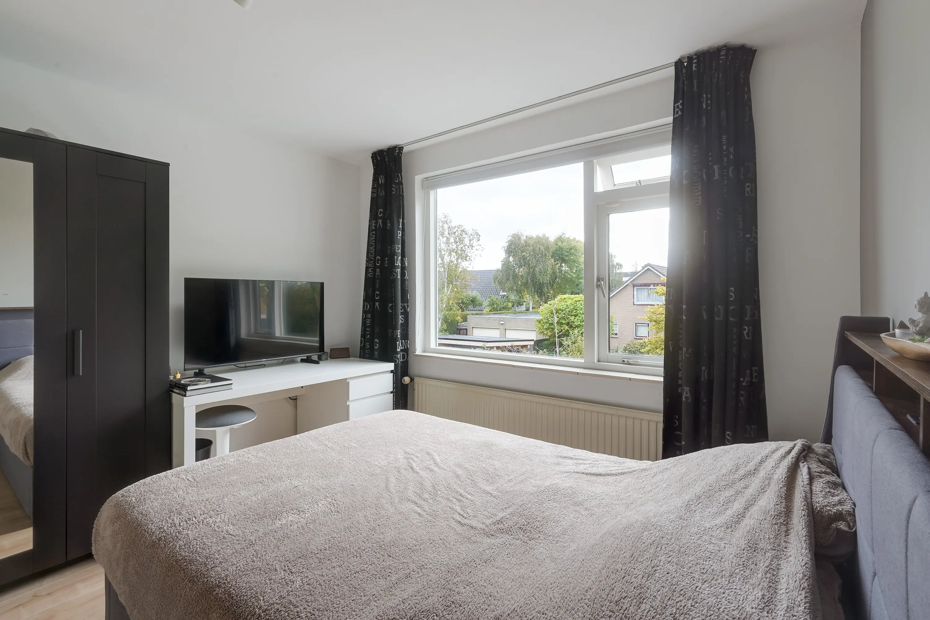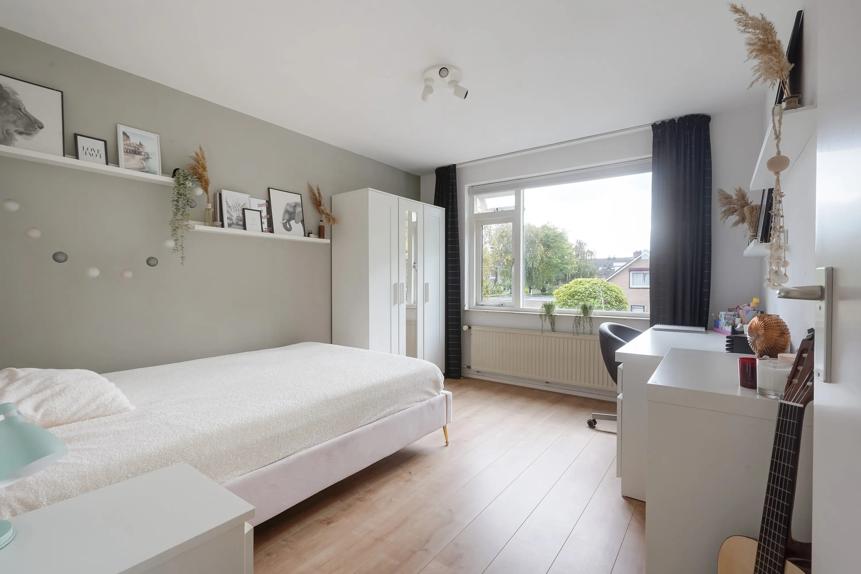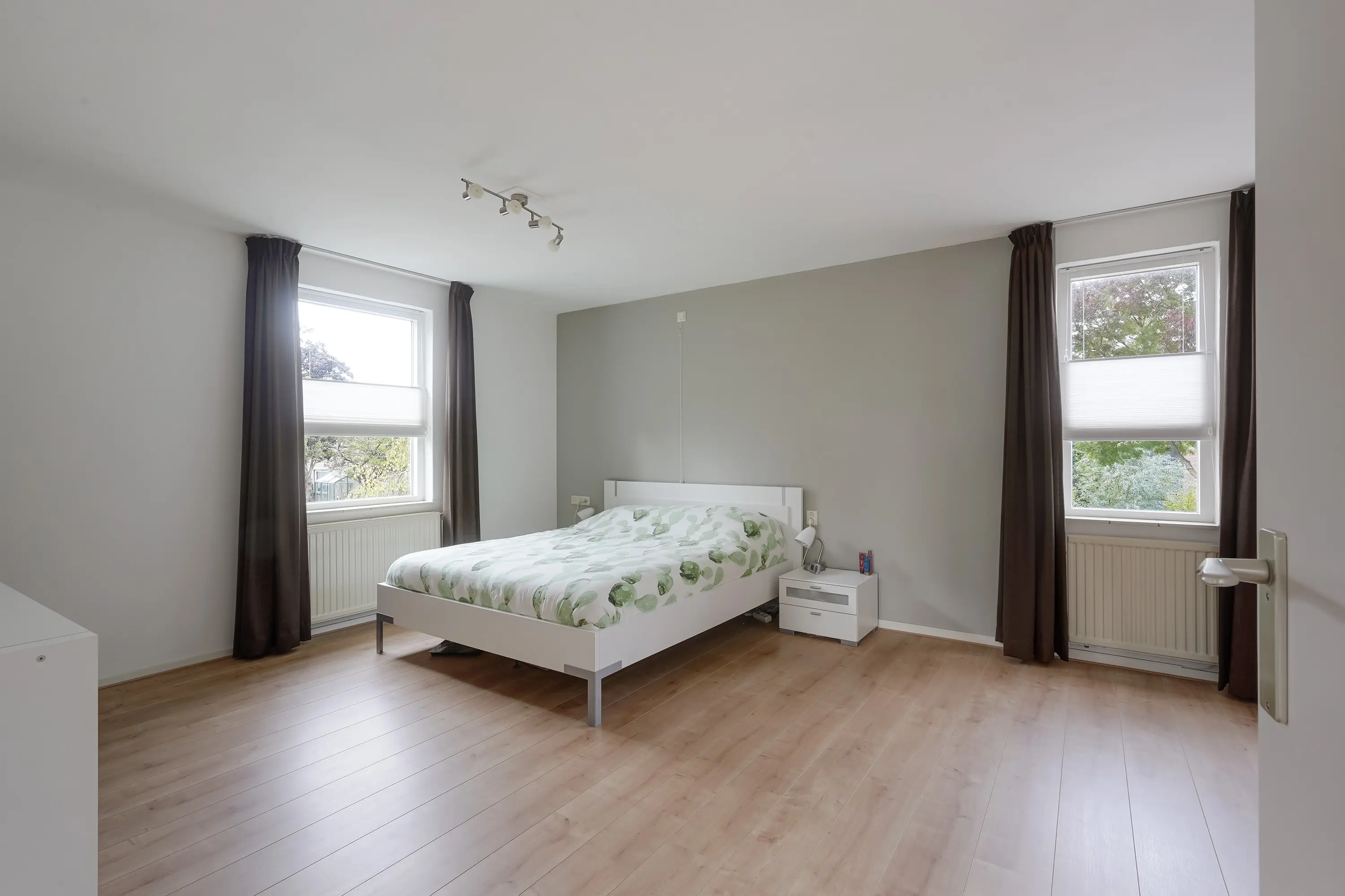 Twee slaapkamers zijn aan de achterzijde van de woning gevestigd, beide zijn ca. 13 m2 en beschikken over een grote raampartij met te openen ramen, verwarming en een onderhoudsvriendelijke laminaatvloer.