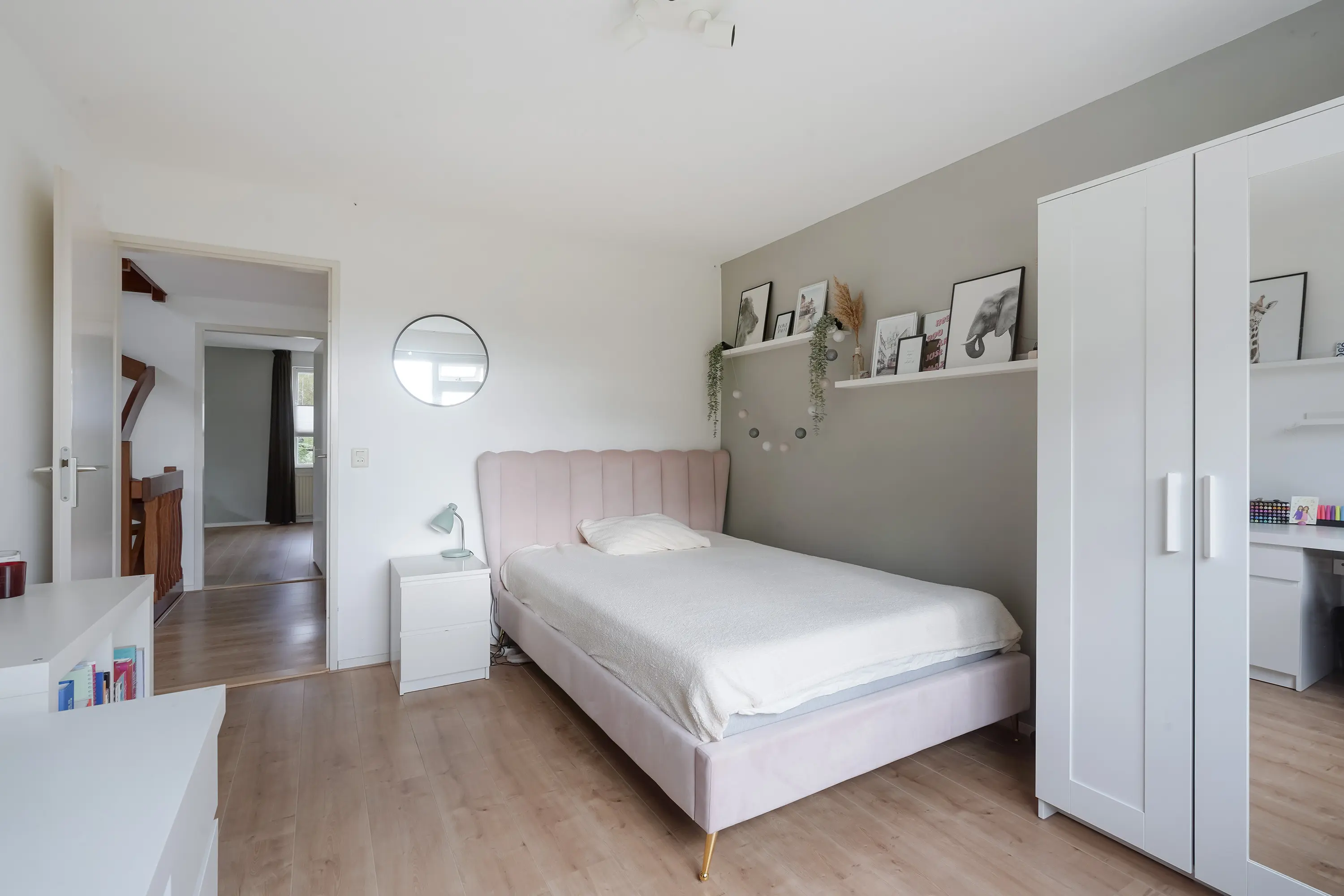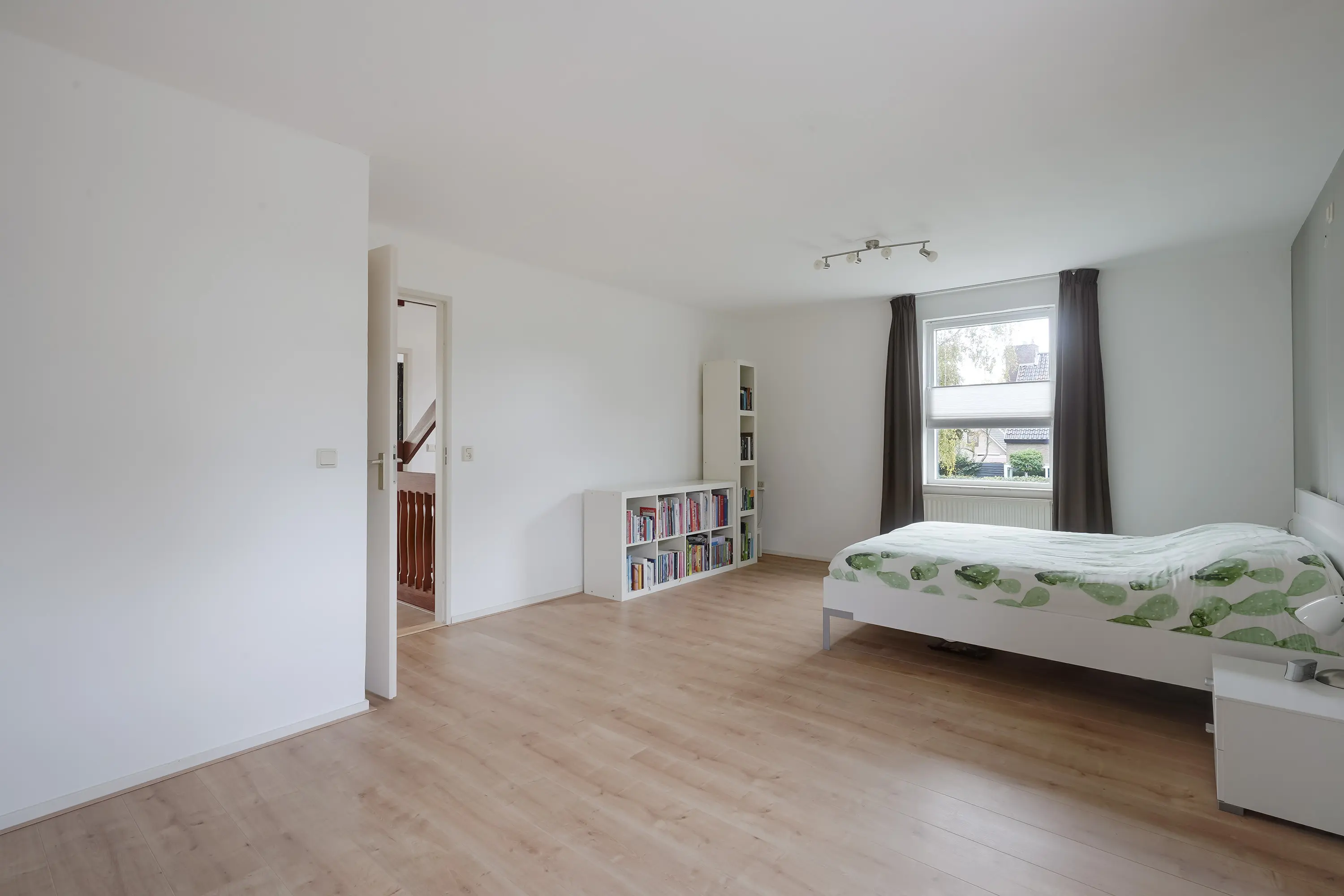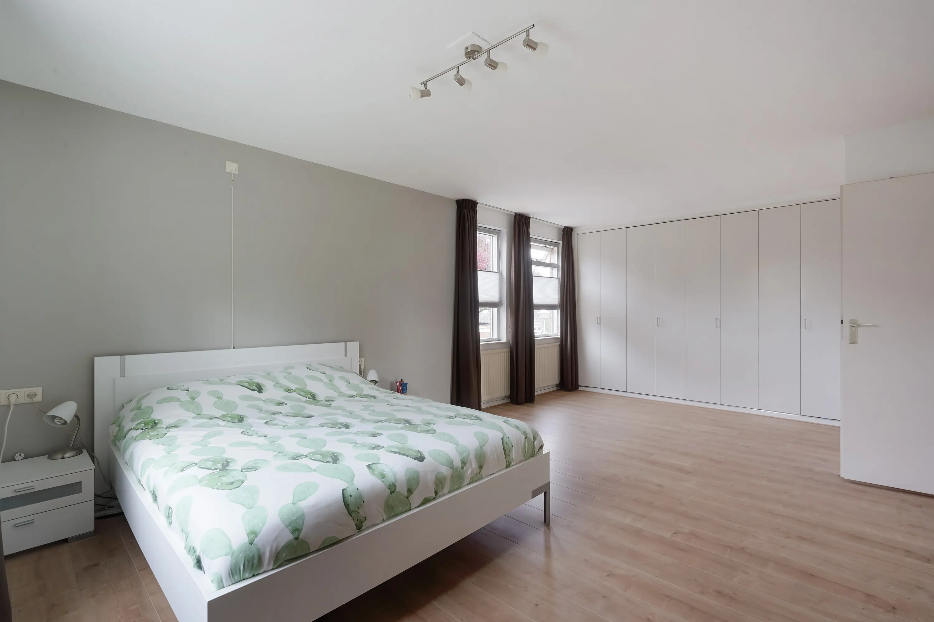 De hoofdslaapkamer bevindt zich aan de voorzijde van de woning en omvat de gehele breedte van de woning. Plafondhoge vaste kastruimte biedt voldoende ruimte voor uw kleding.