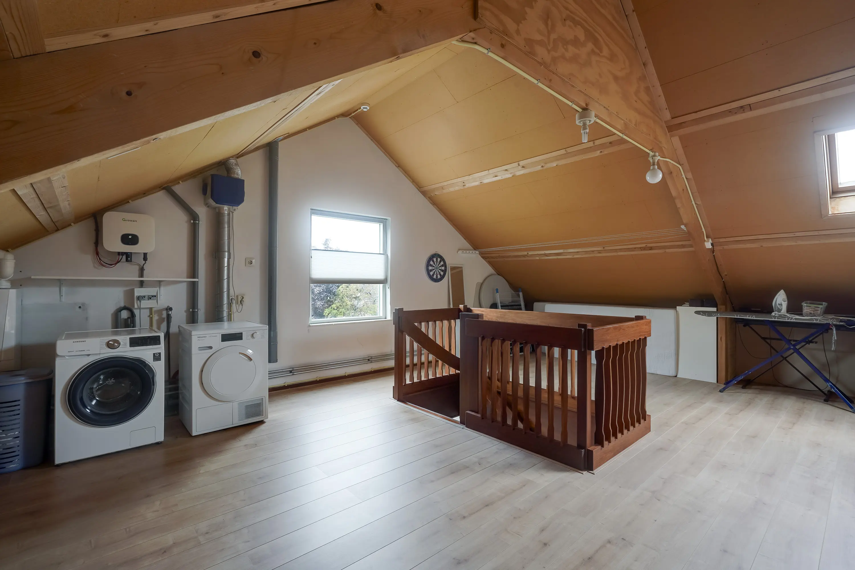 Zowel de aansluiting voor de wasmachine en droger als de cv-ketel en mechanische ventilatie unit zijn op deze verdieping gevestigd.