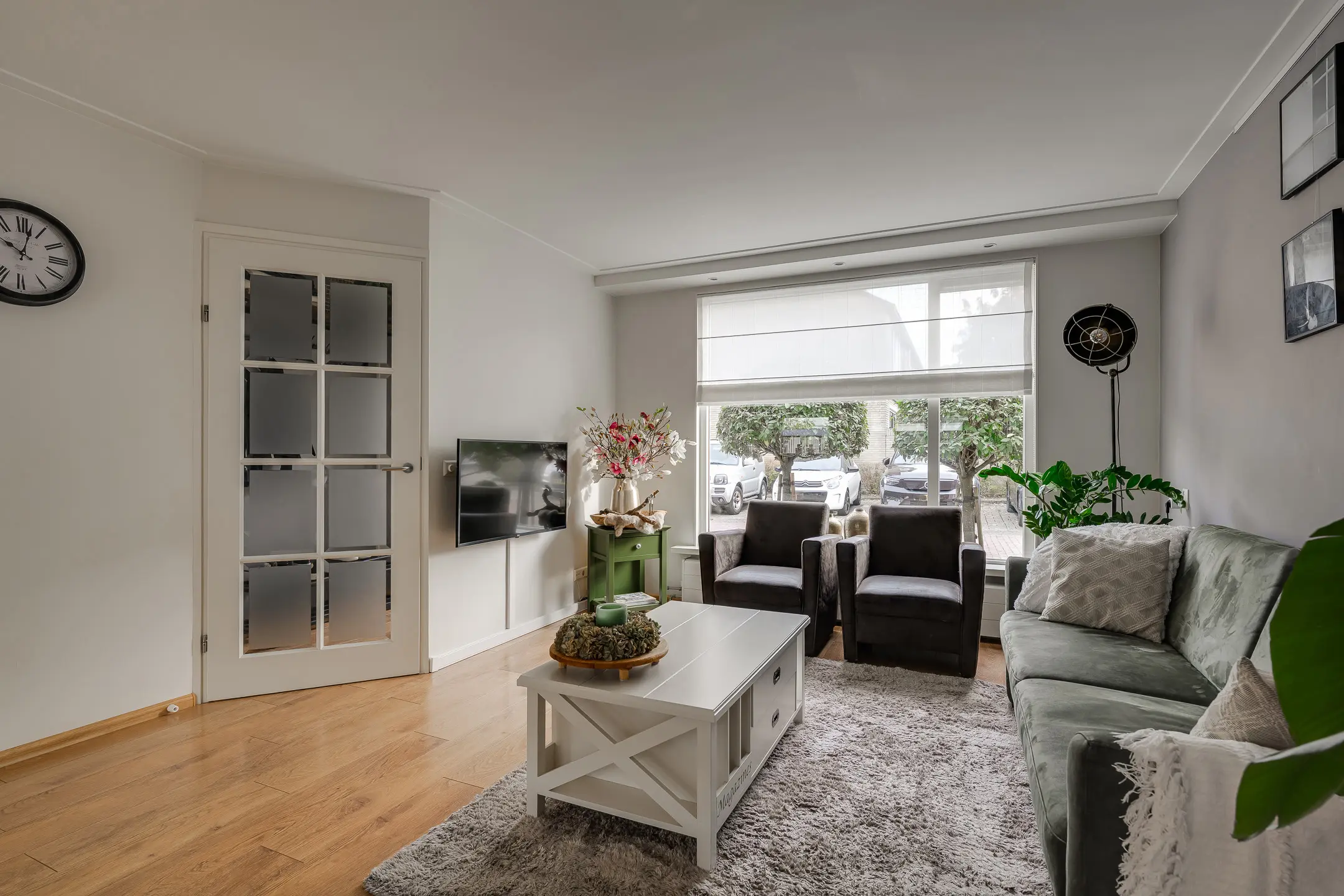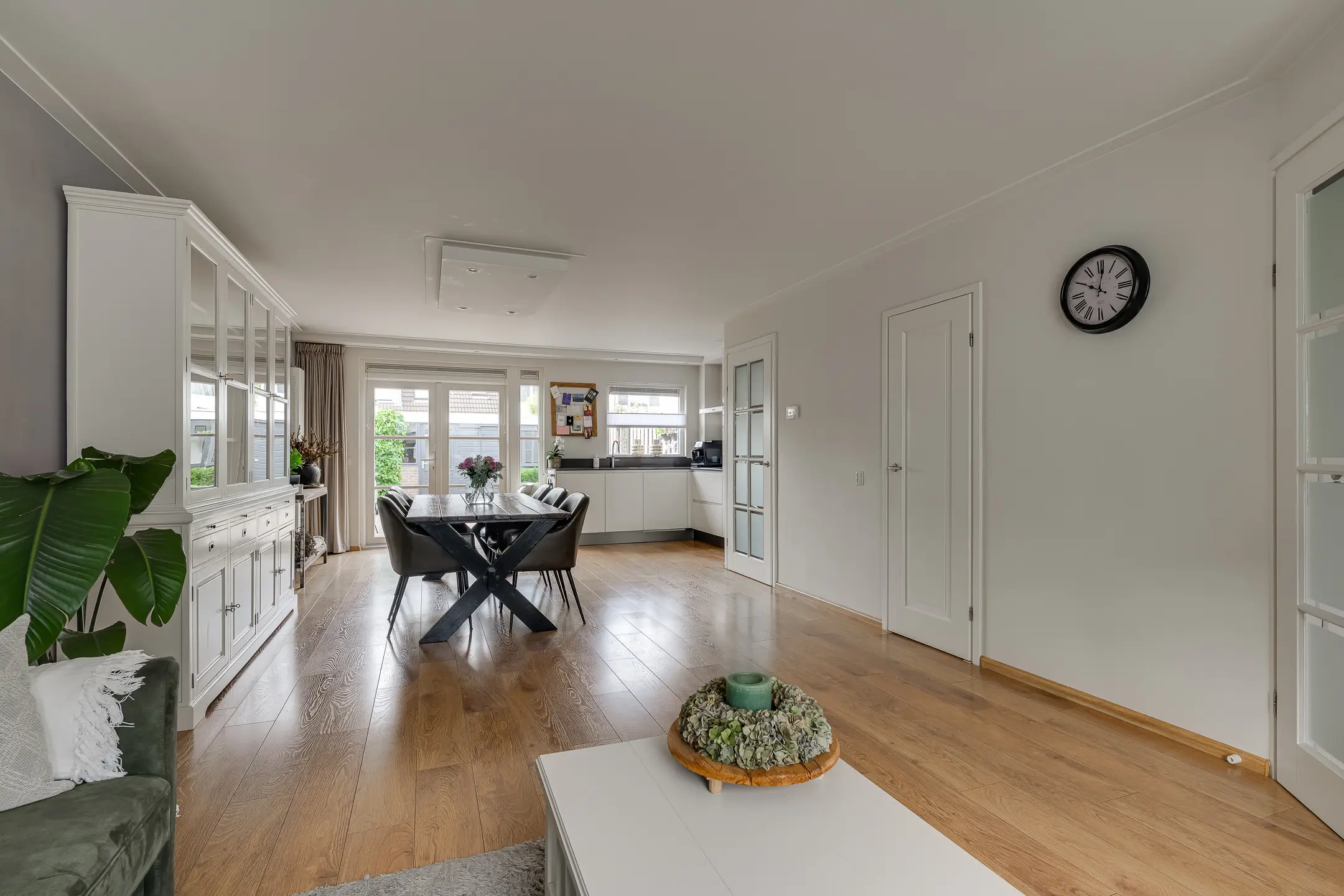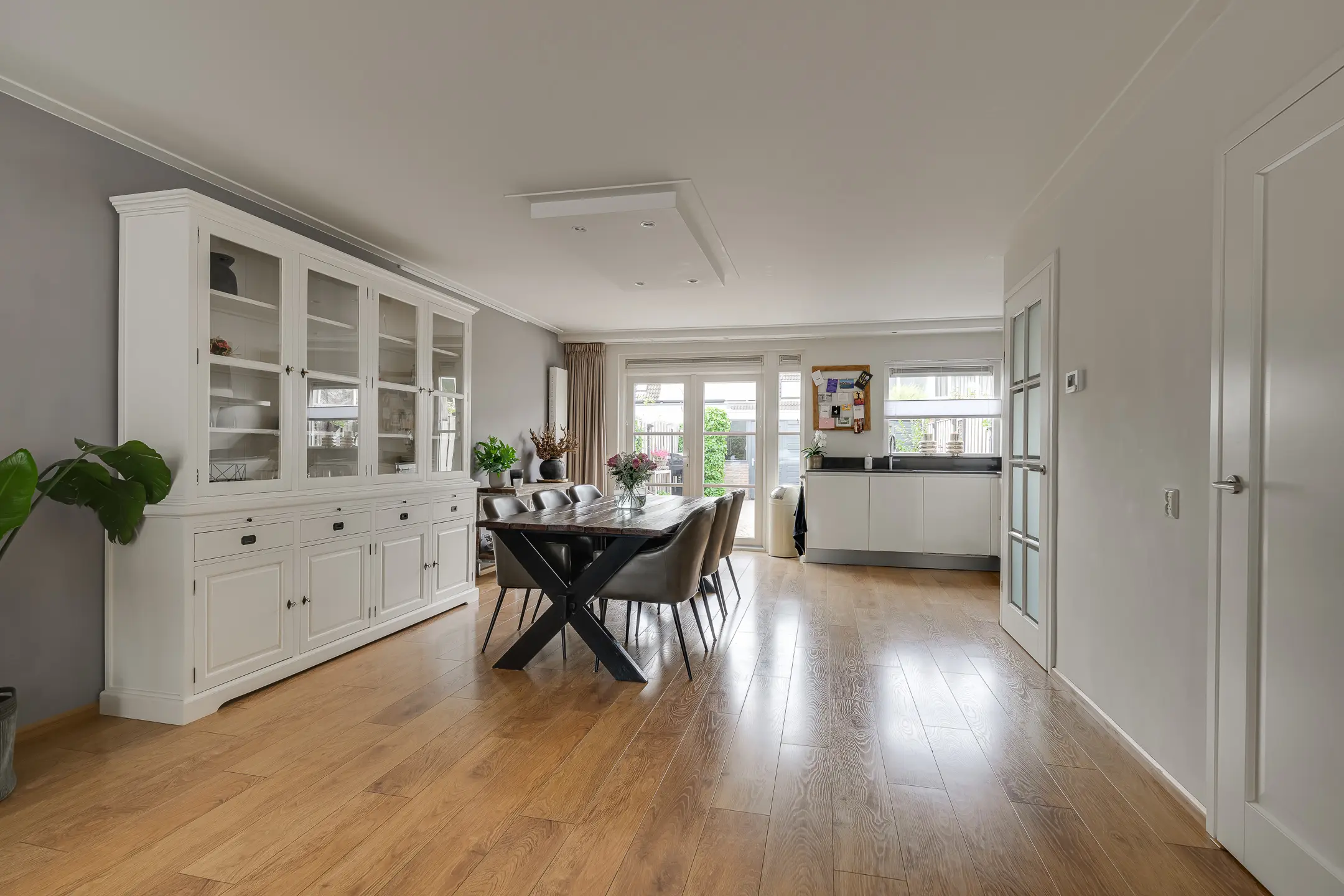 Aan de voorzijde van de woning is de zithoek gesitueerd, aan de achterzijde een praktische open keuken met ruimte voor een gezellige eethoek met uitzicht op de tuin. Een heerlijke plek om met het gezin samen te komen.