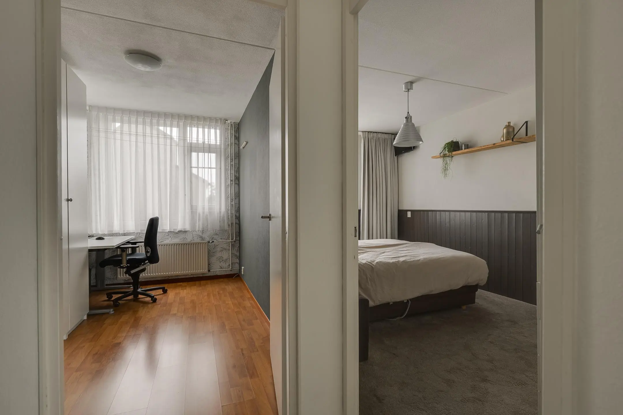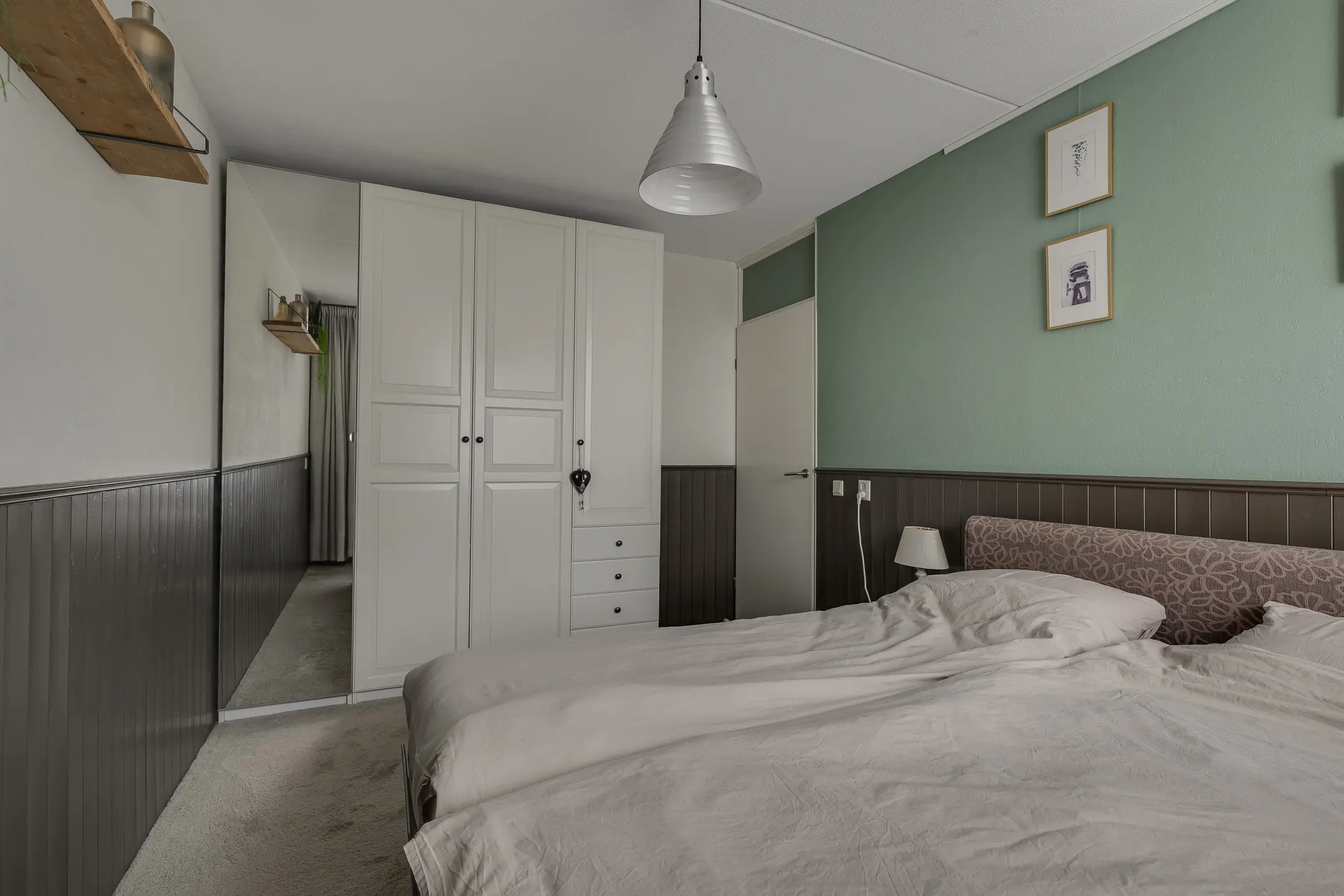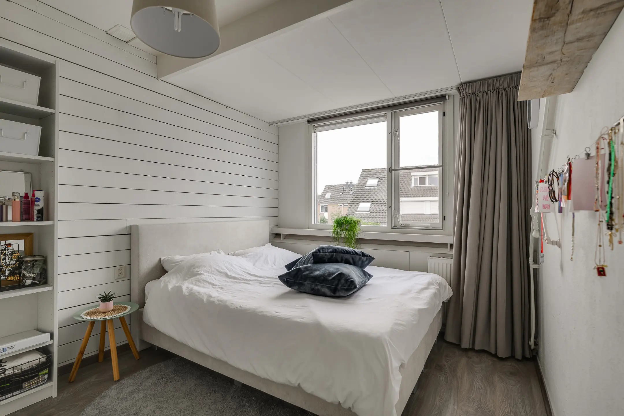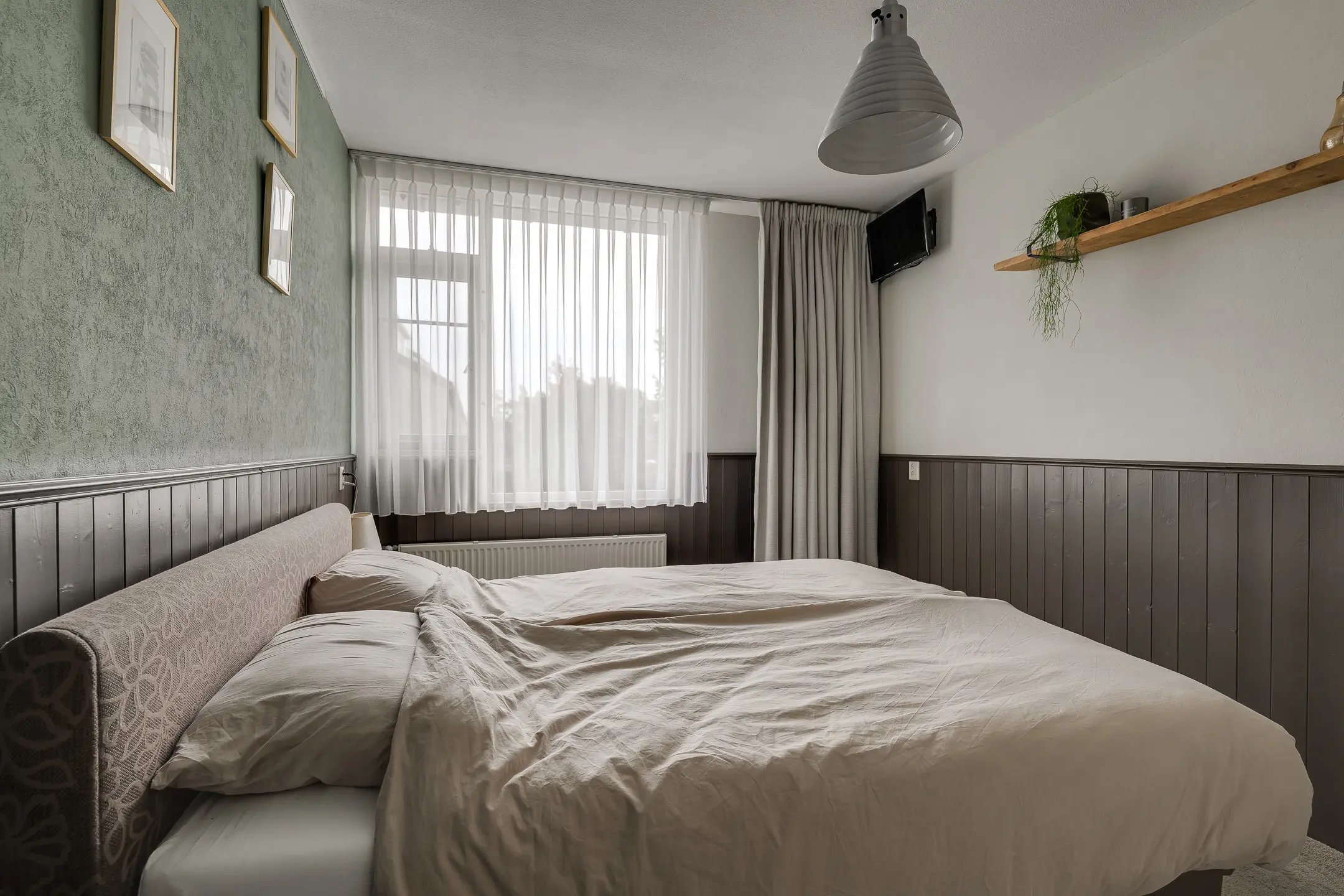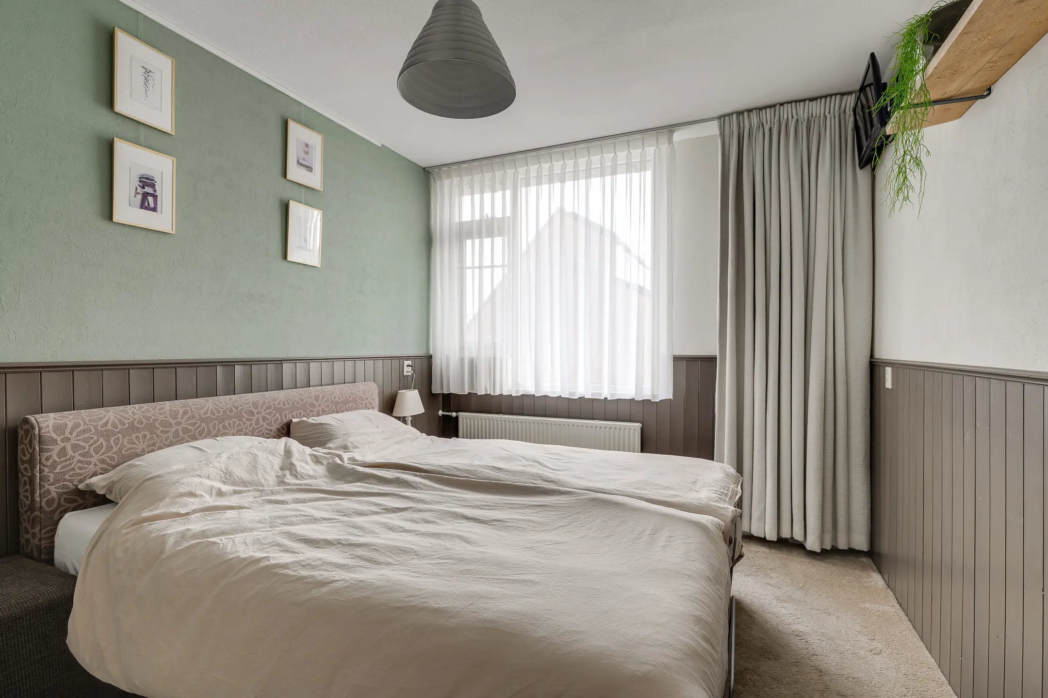 De slaapkamer aan de achterzijde (ca. 11,5 m2) biedt uitzicht op de tuin en kenmerkt zich door veel lichtinval.