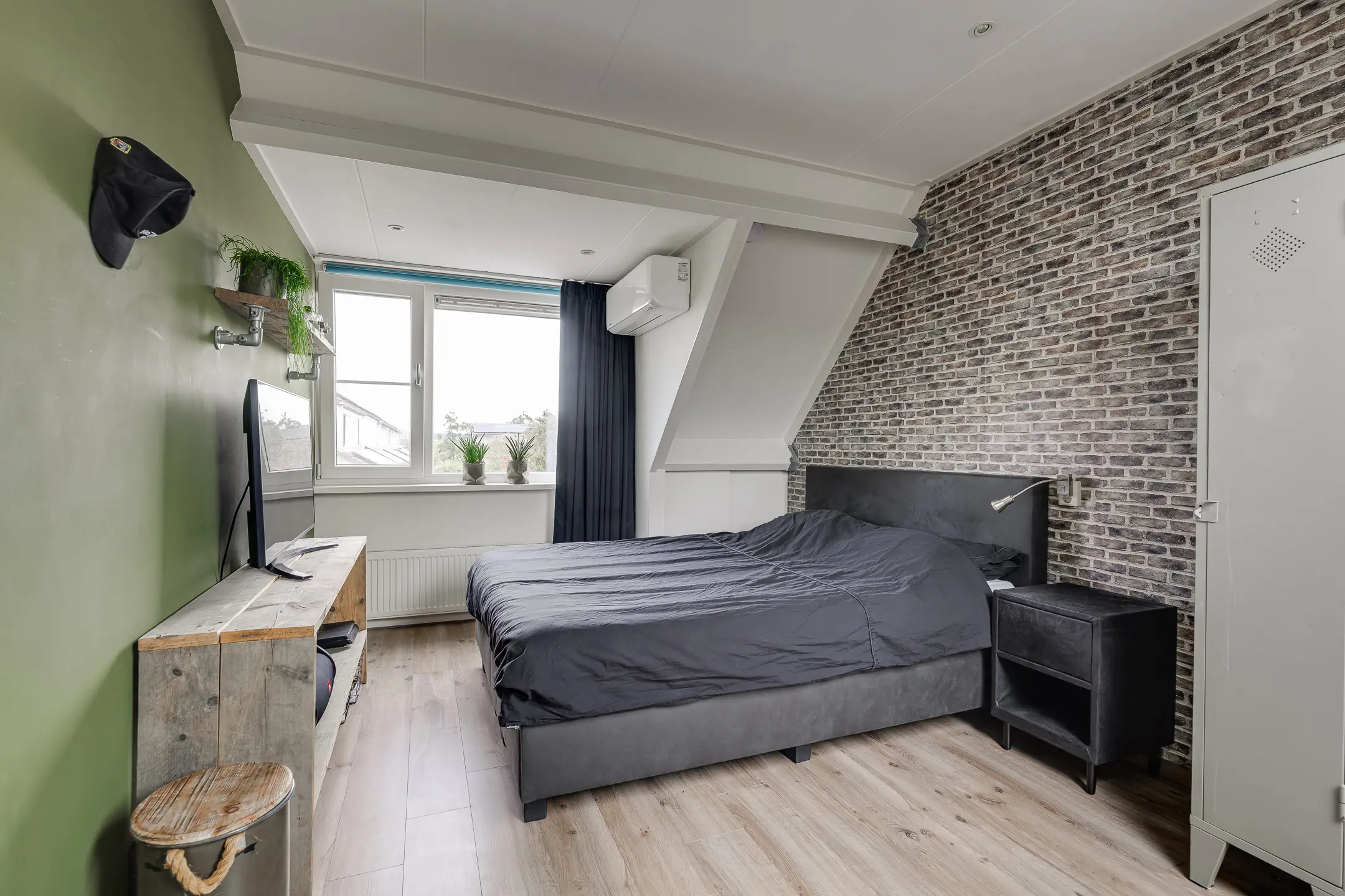 Op zolder is een riante vierde (slaap-)kamer gerealiseerd, compleet met dakkapel aan de voorzijde, dakraam aan de achterzijde en luxe airconditioning (2023) voor de warme zomermaanden en als extra verwarming in de winter.
