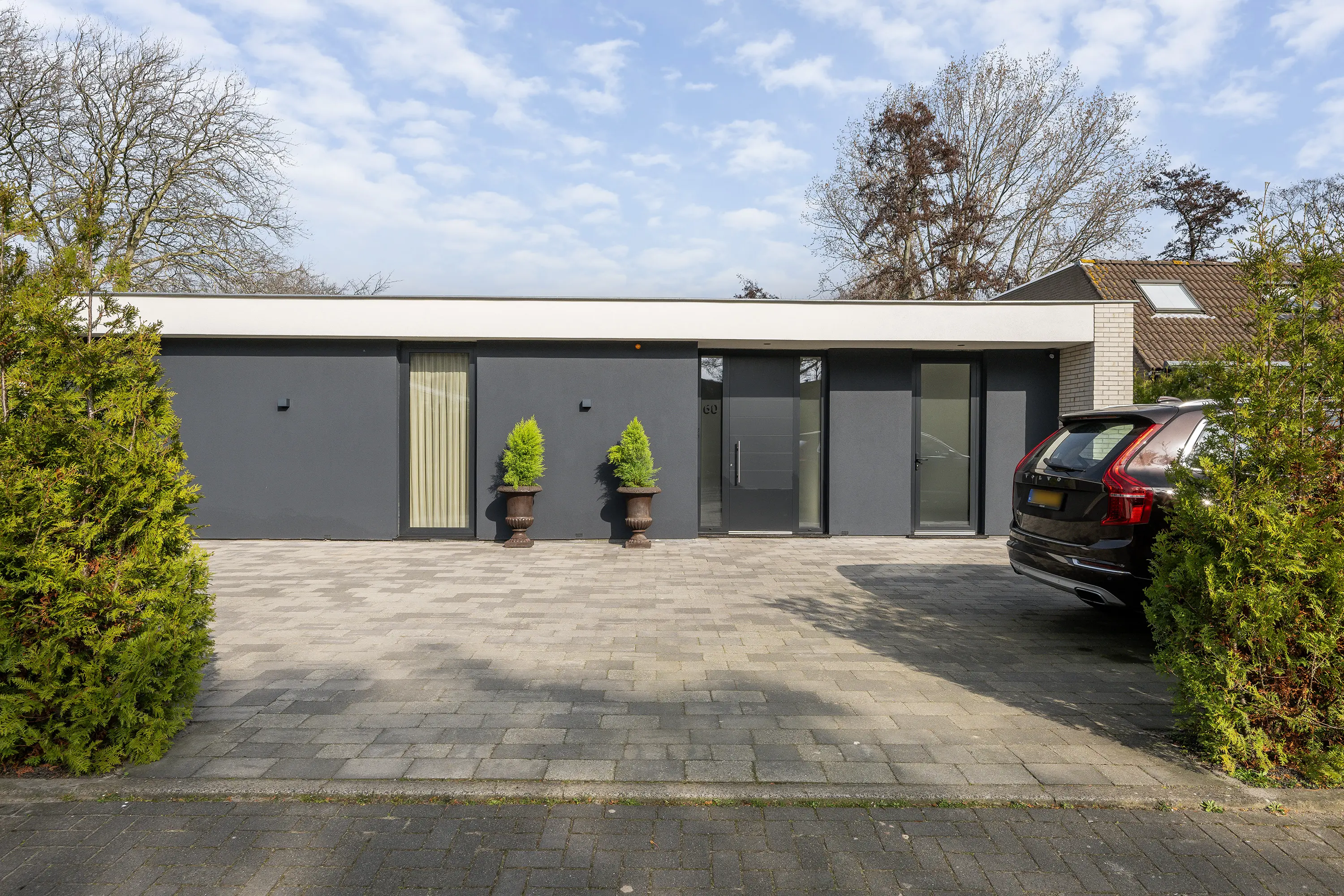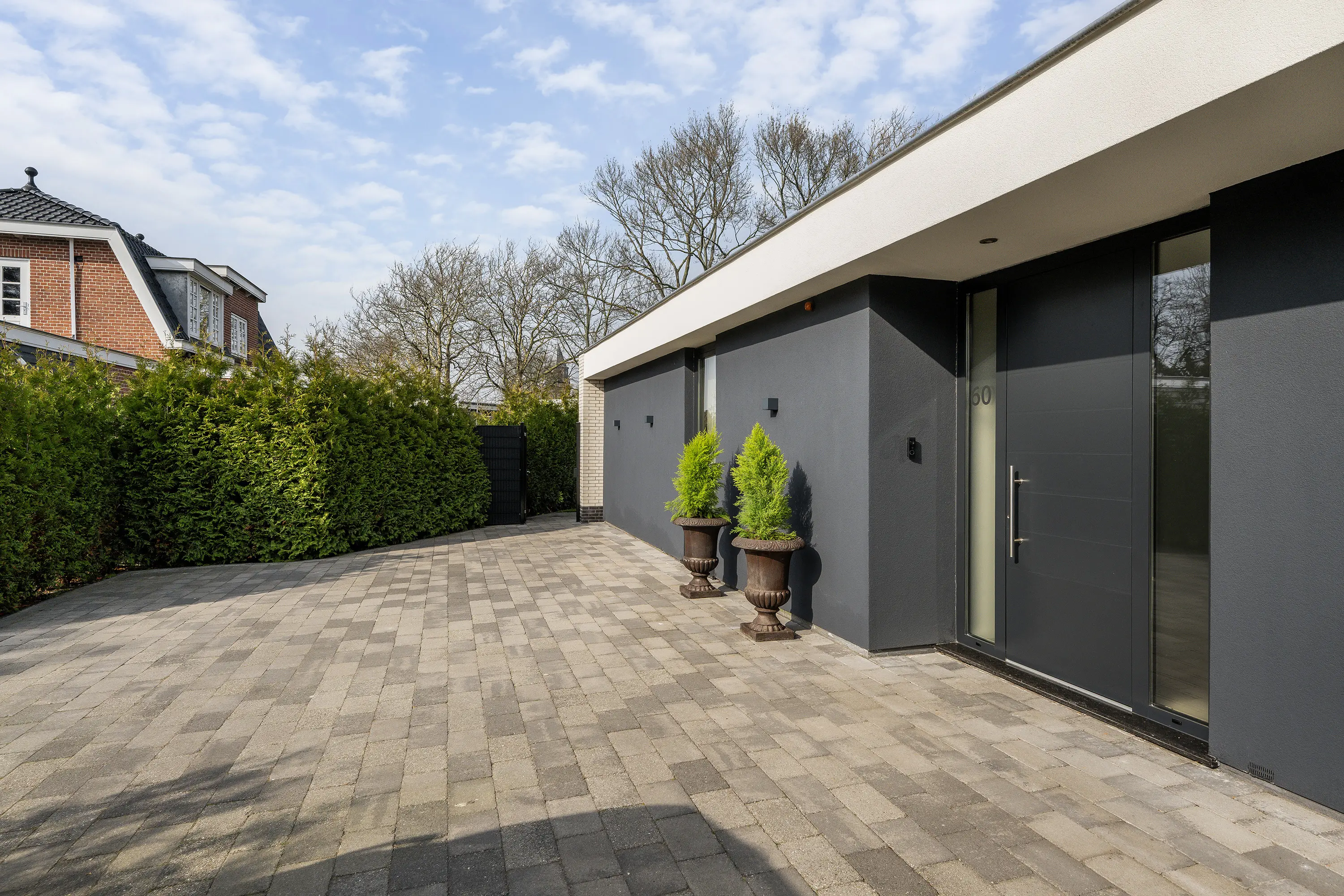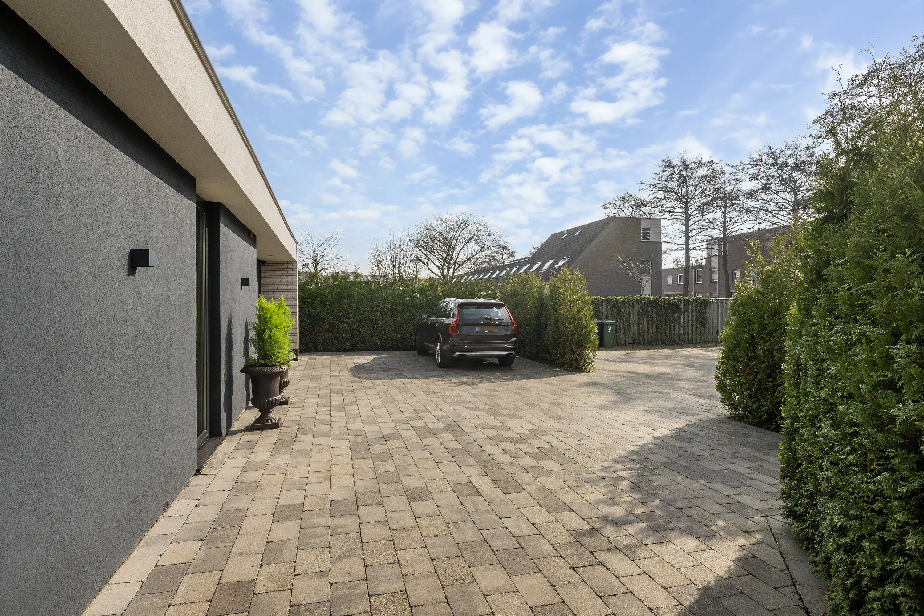 De voortuin en oprit zijn verzorgd en netjes bestraat. Hier beschikt u over meerdere parkeerplaatsen op eigen terrein, wat zorgt voor optimaal gemak voor uzelf en uw gasten.