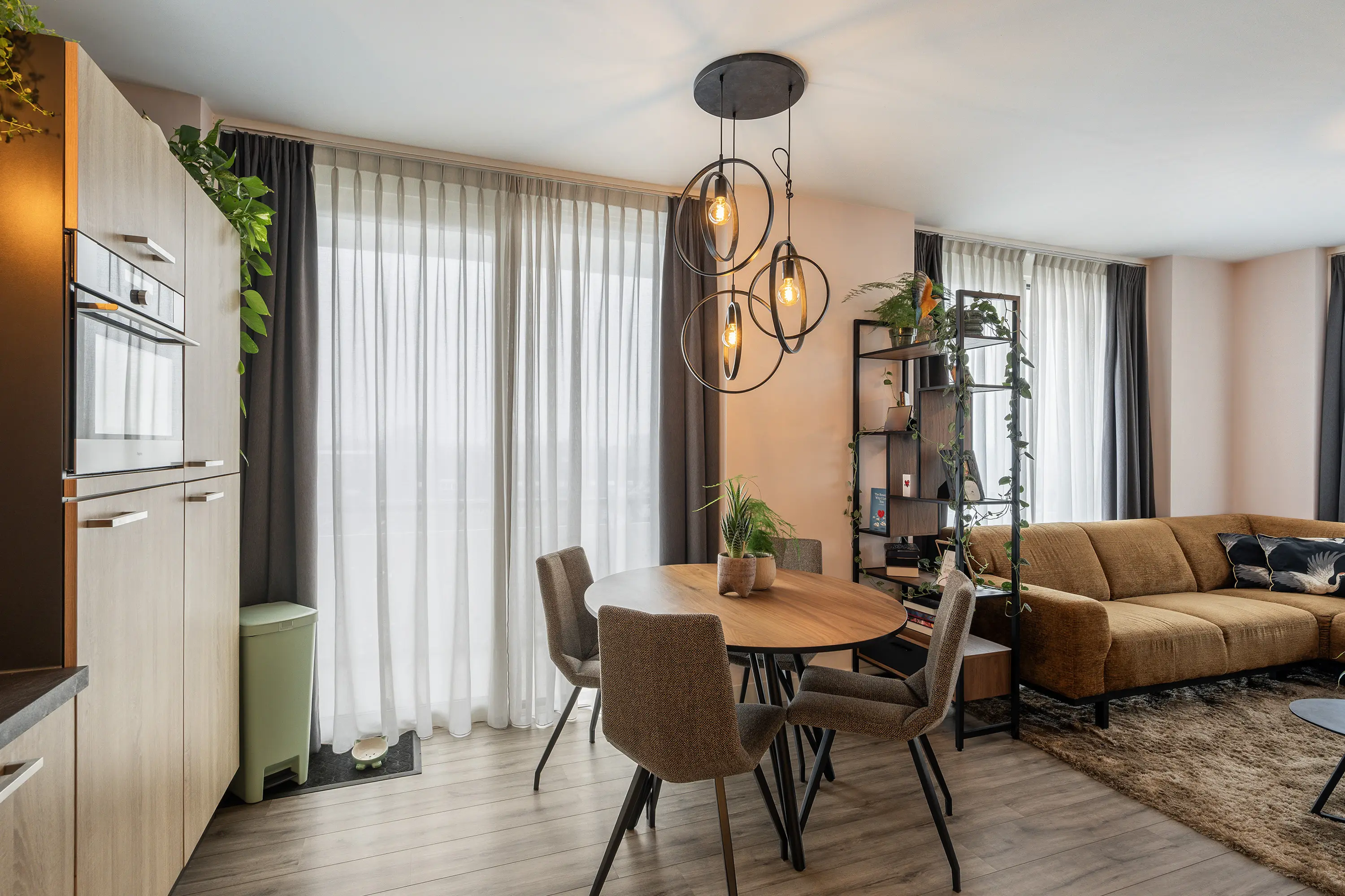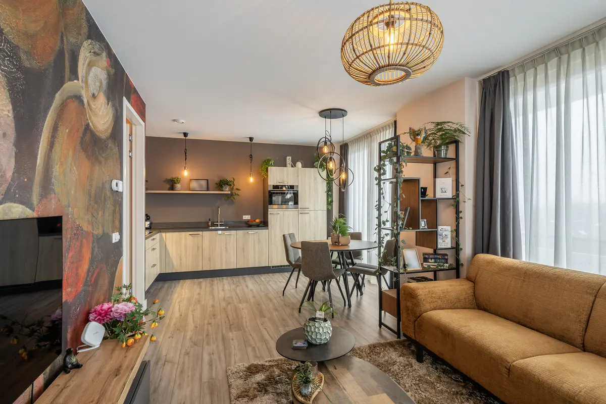 Met een woonoppervlakte van ca. 63 m², een woningbrede woonkamer en een luxe open keuken biedt dit appartement een verrassend ruimtelijk gevoel. De grote raampartijen en schuifpuien zorgen voor een zee aan licht en een fijne verbinding met buiten. Dankzij energielabel A en de moderne installaties woont u hier bovendien duurzaam en comfortabel.