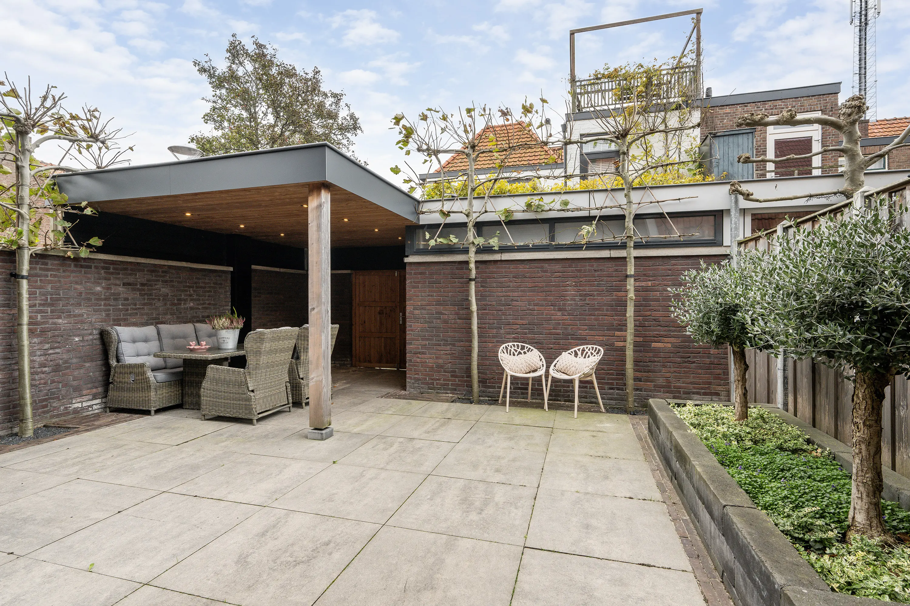 De zonnige achtertuin is royaal opgezet en heeft een oppervlakte van circa 73 m². De tuin is gelegen op het zuiden, waardoor u de hele dag van de zon kunt genieten. Zit u liever in de schaduw? Dat is mogelijk middels het elektrisch bedienbare uitval zonnescherm.