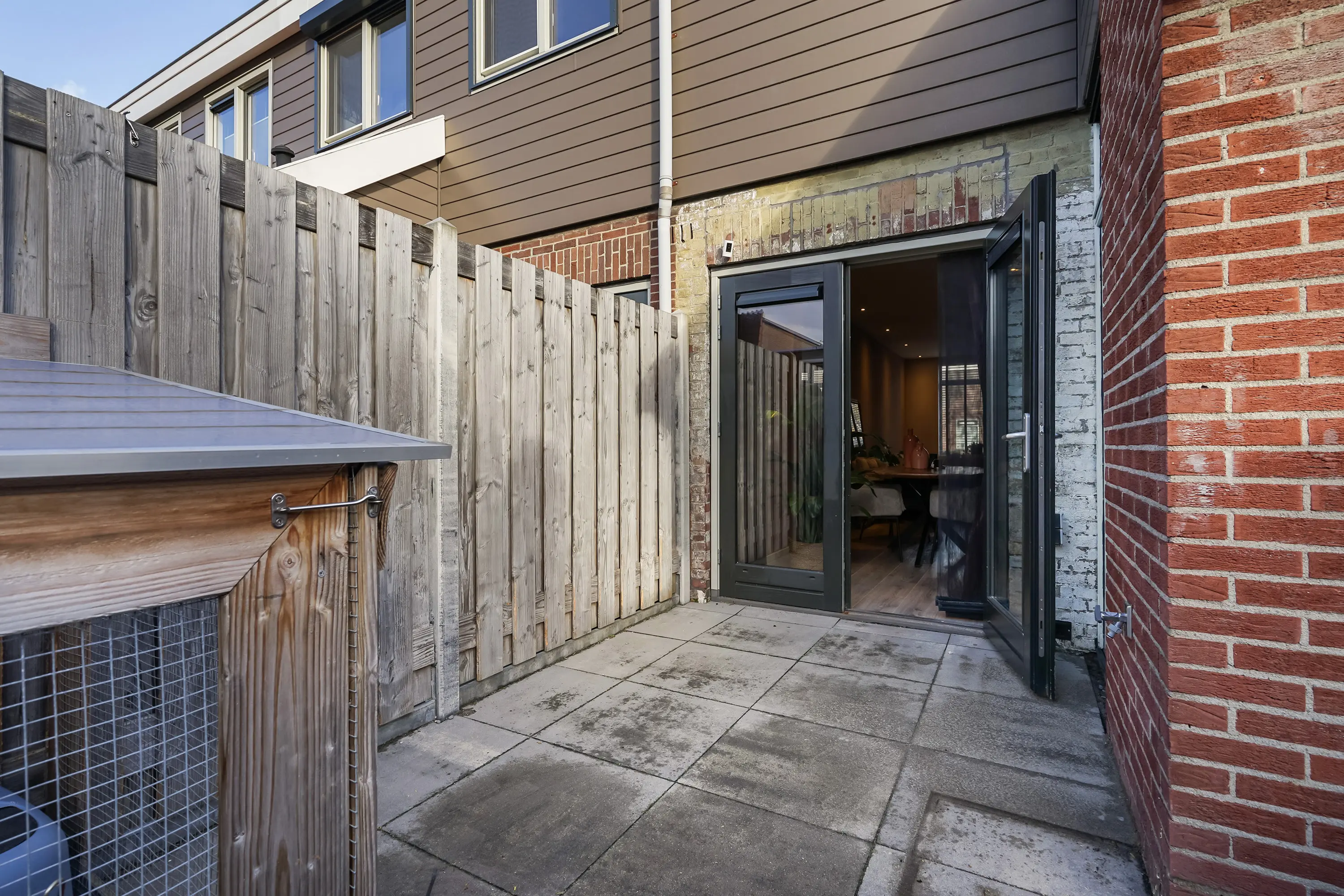 De tuin, gelegen op het zuiden, biedt veel zonuren en diverse mogelijkheden voor het creëren van zitgedeeltes. In de tuin bevindt zich tevens een berging en een achterom. Ondanks de ligging dicht bij het centrum, biedt de tuin veel privacy.
